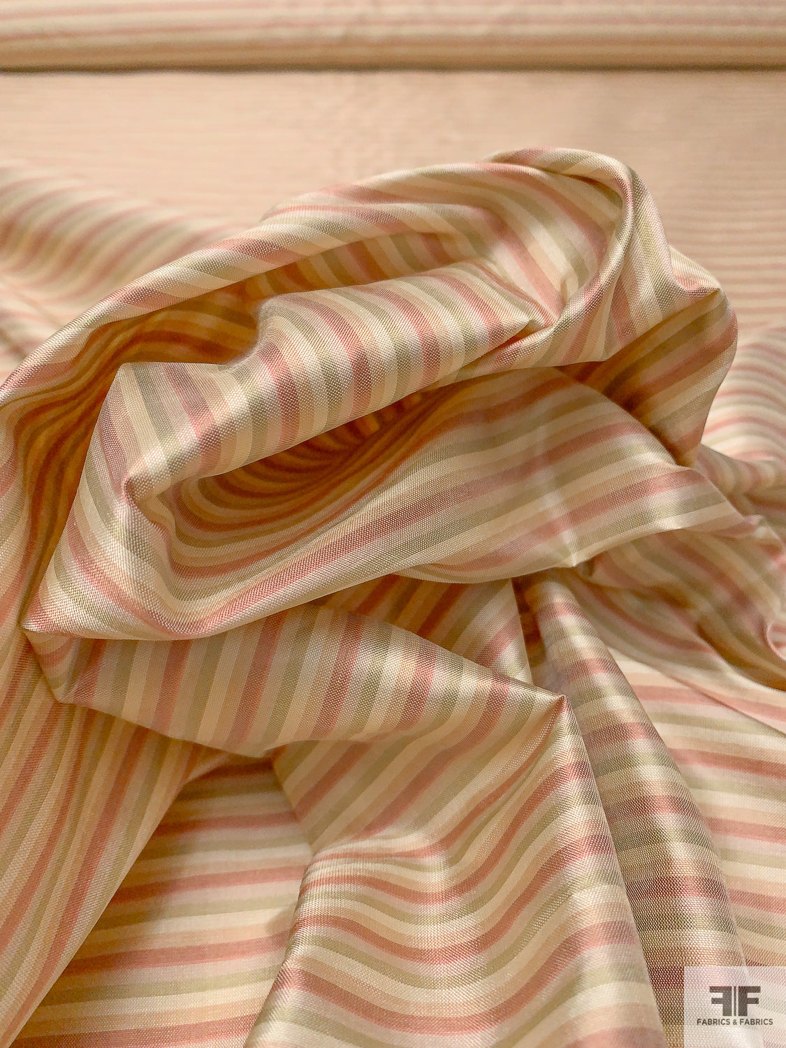 Striped Yarn-Dyed Silk Taffeta - Pale Olive / Pale Maroon / Creams