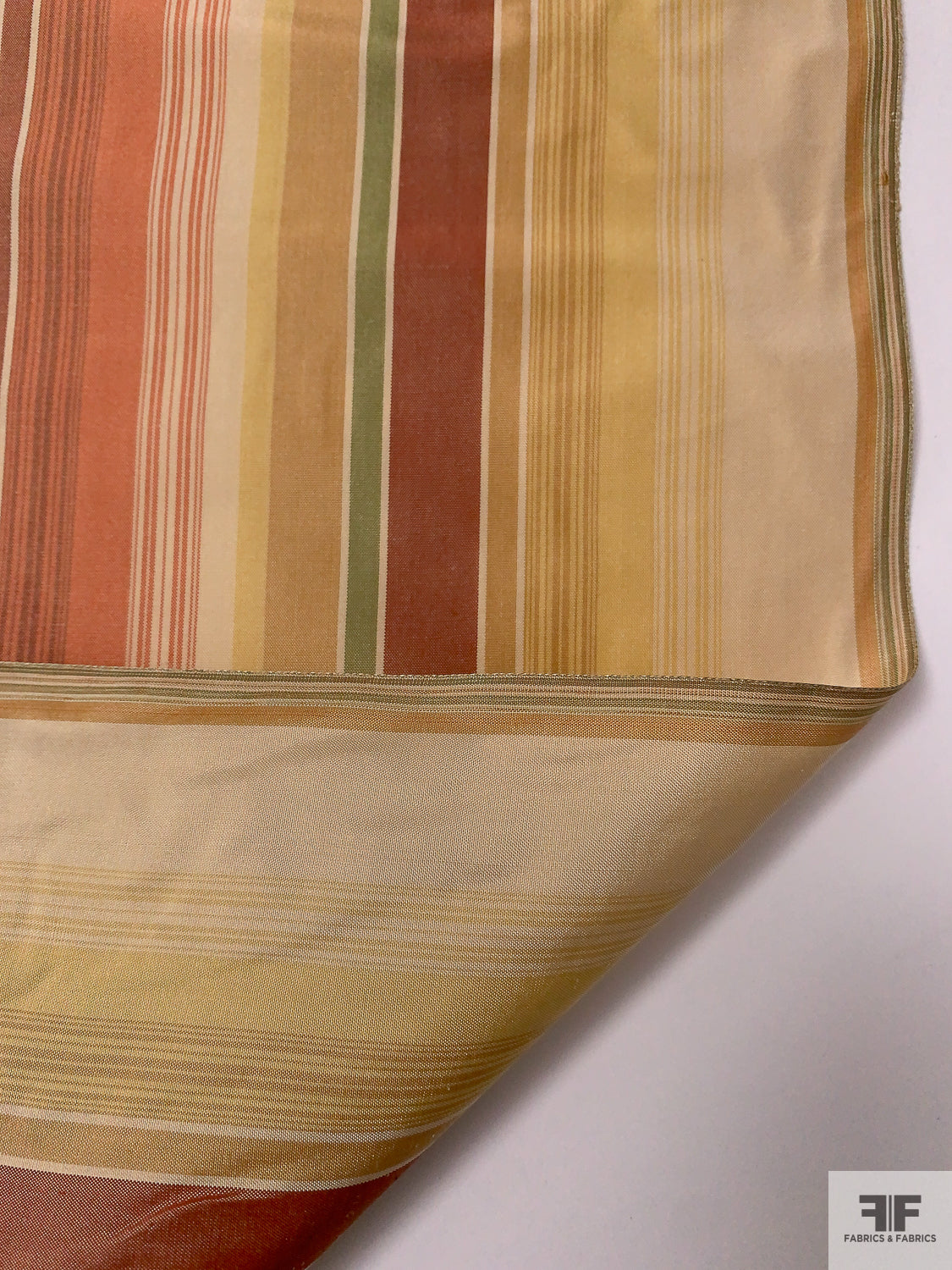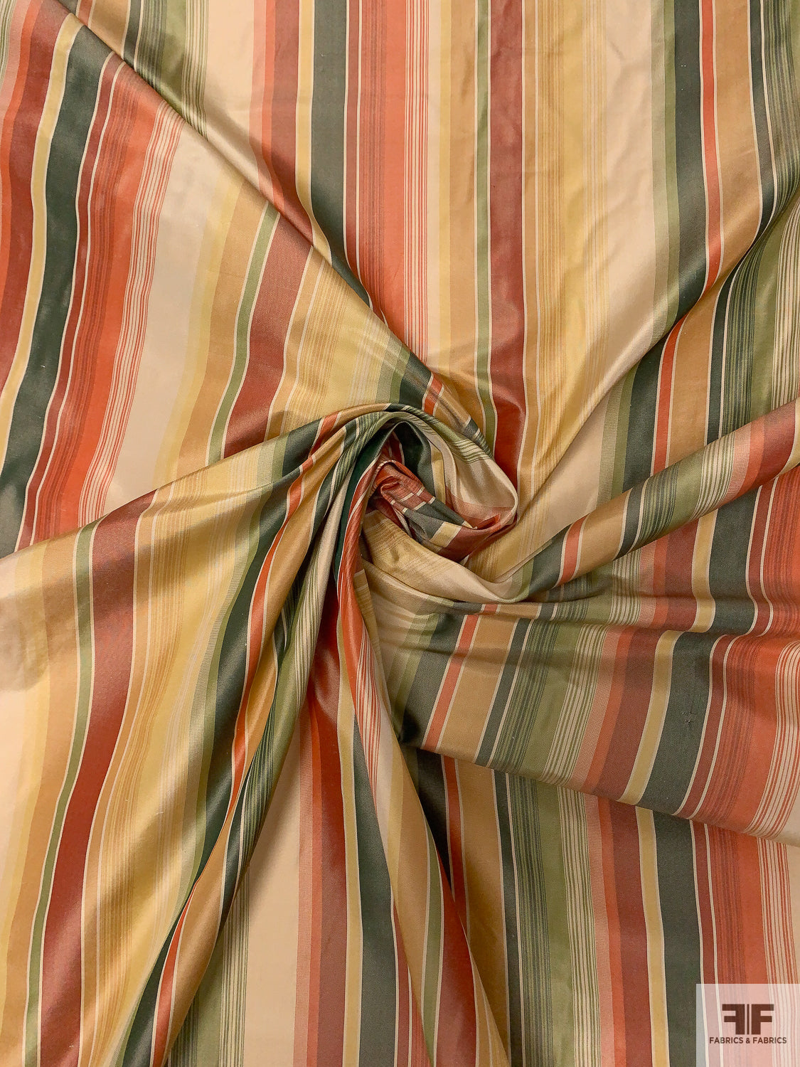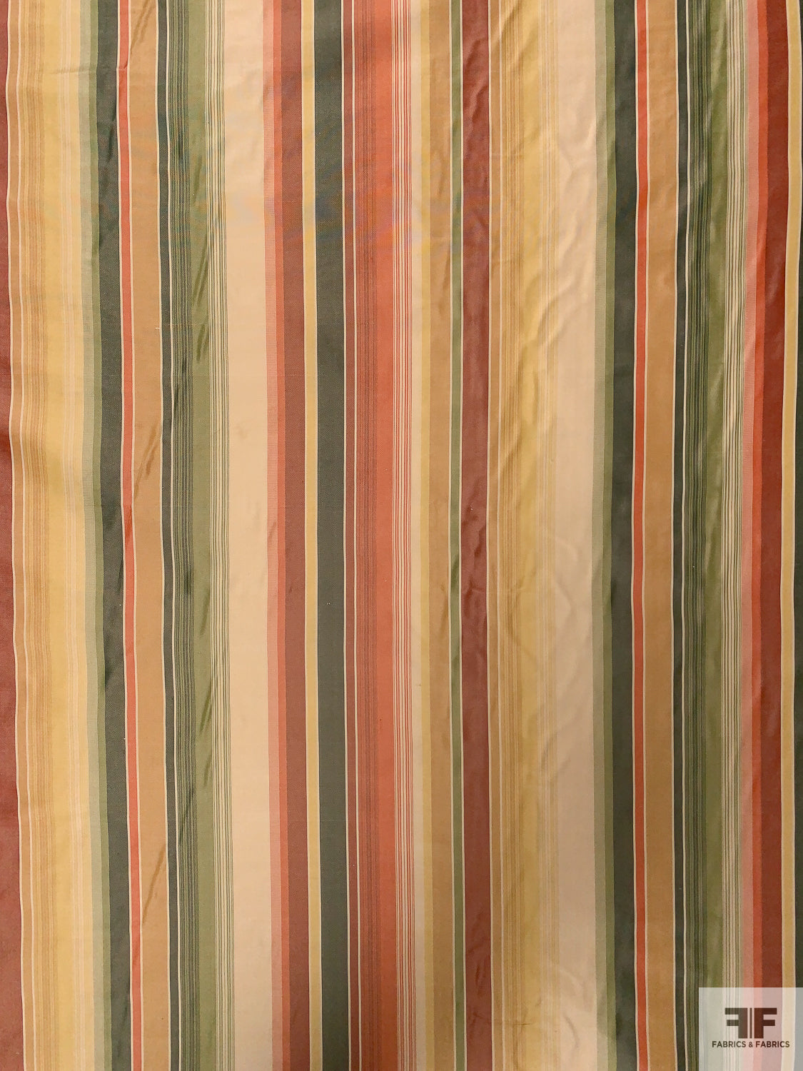 Striped Yarn-Dyed Silk Taffeta - Vintage Greens / Olive Golds / Reds