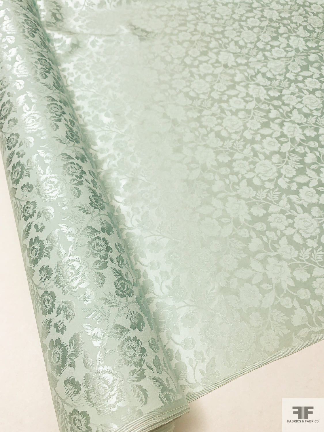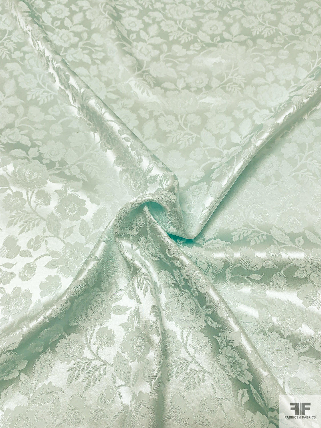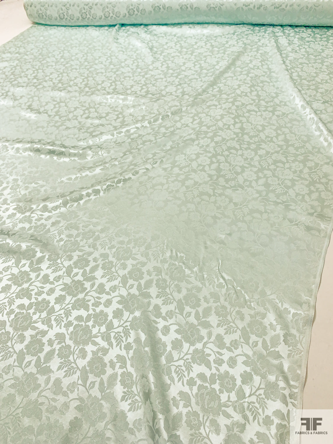 Floral Jacquard Silk Charmeuse - Icy Seafoam