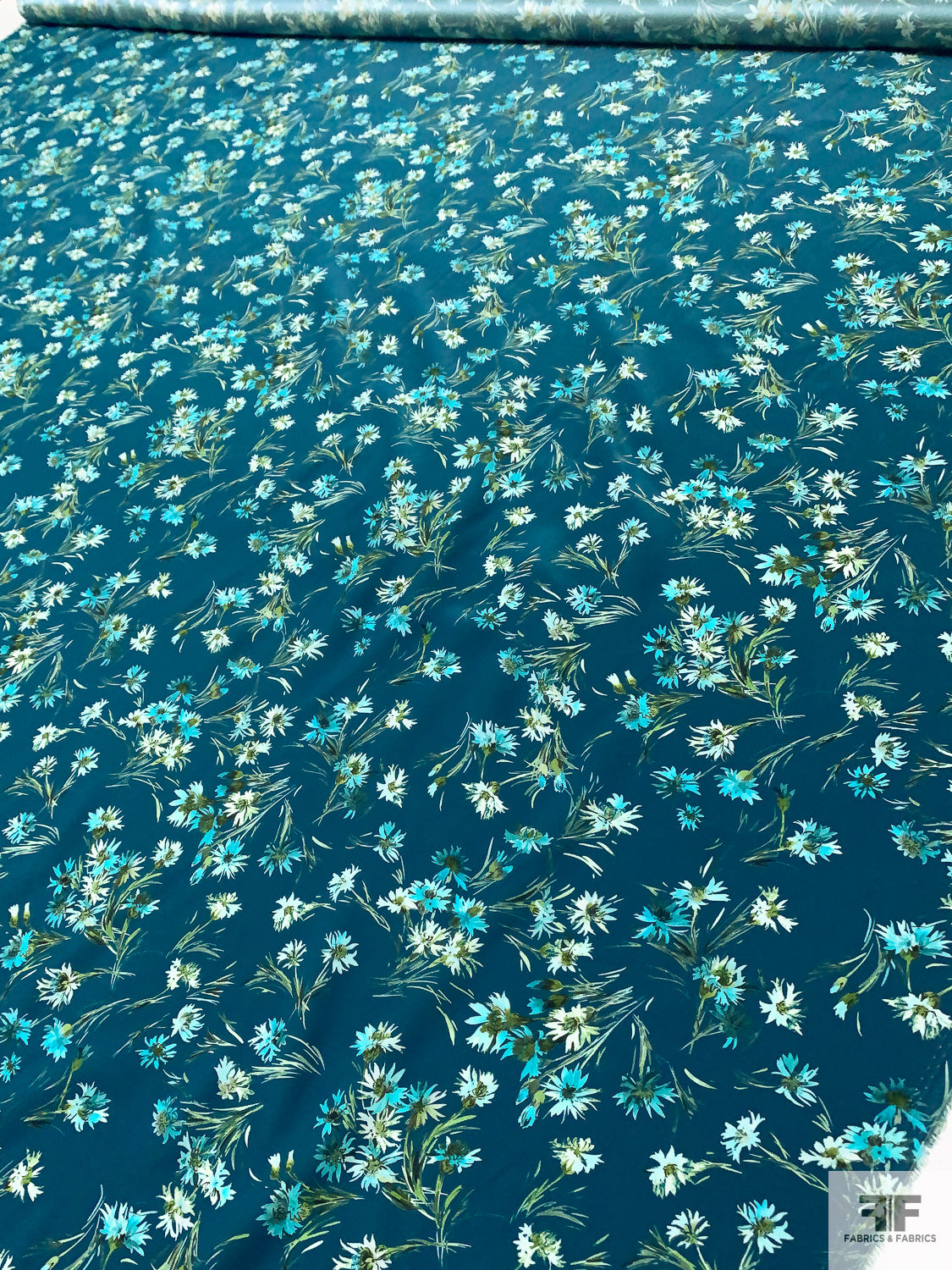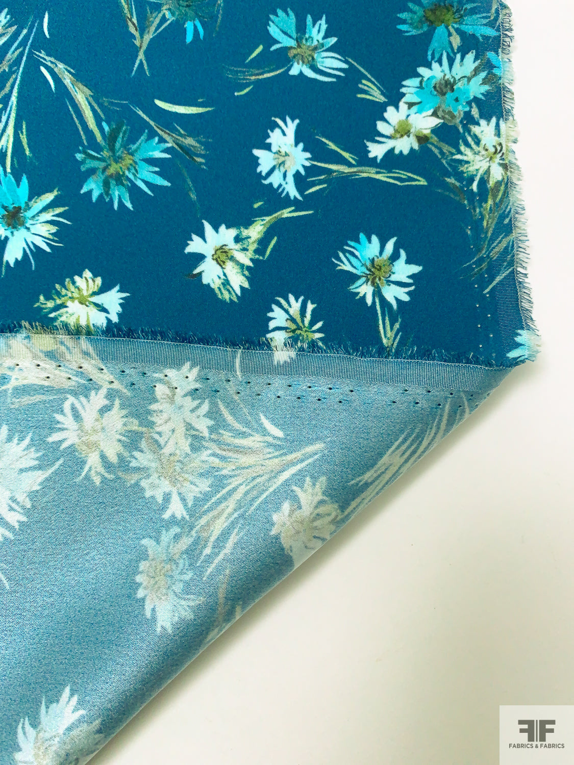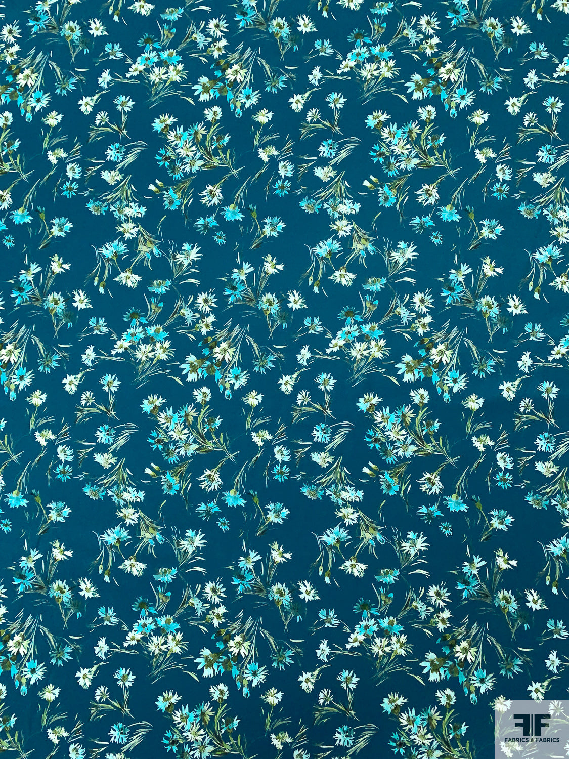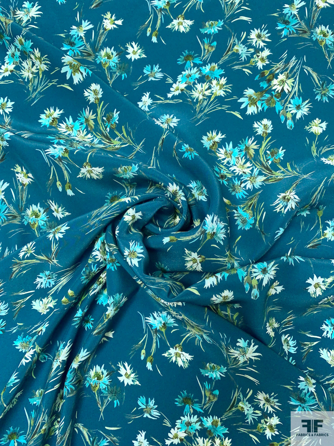 Floral Matte-Side Printed Silk Charmeuse - Teal Blue / Green / Off-White