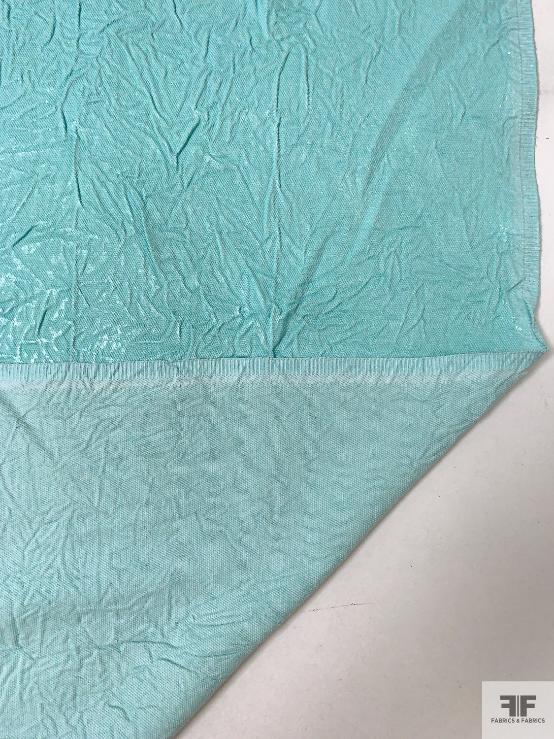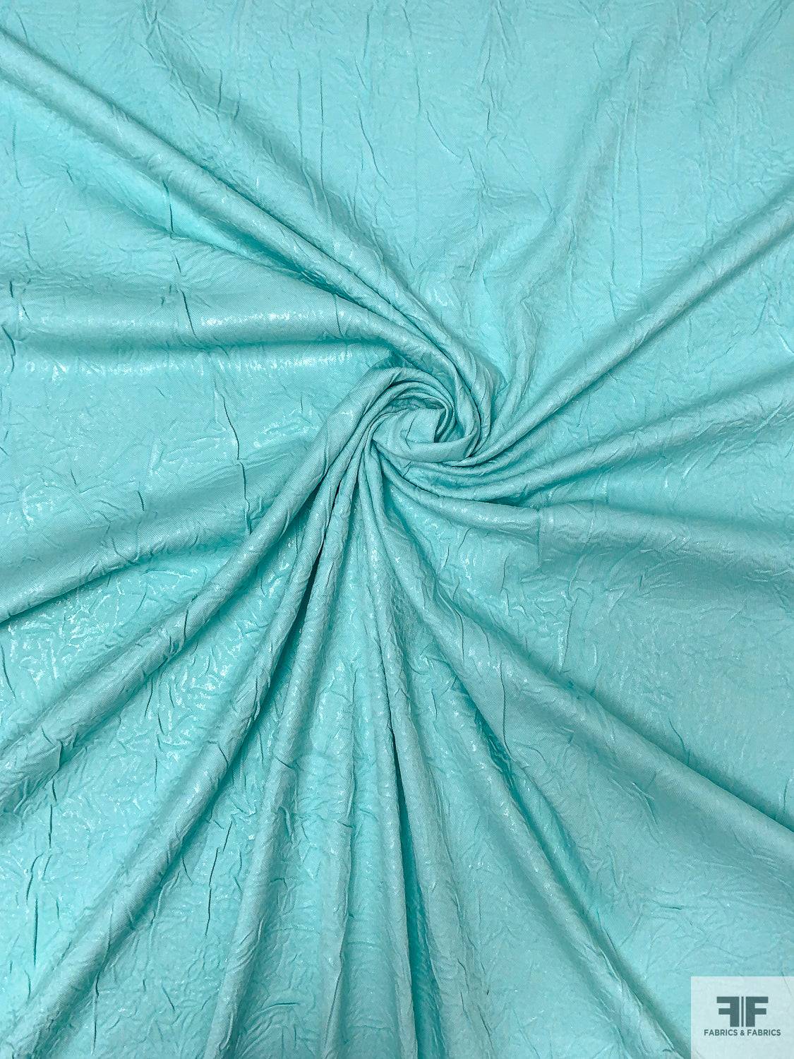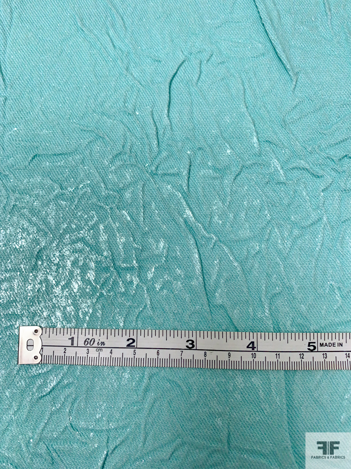 Italian Crinkled Gloss-Stamped Denim with Stretch - Aqua