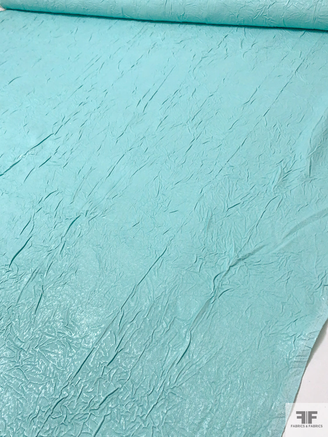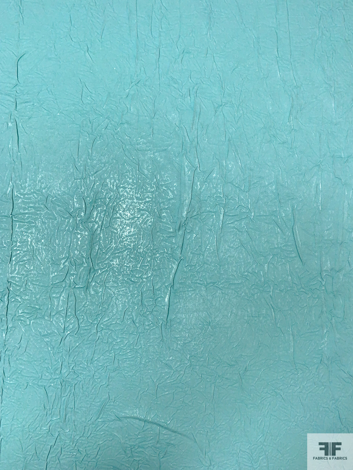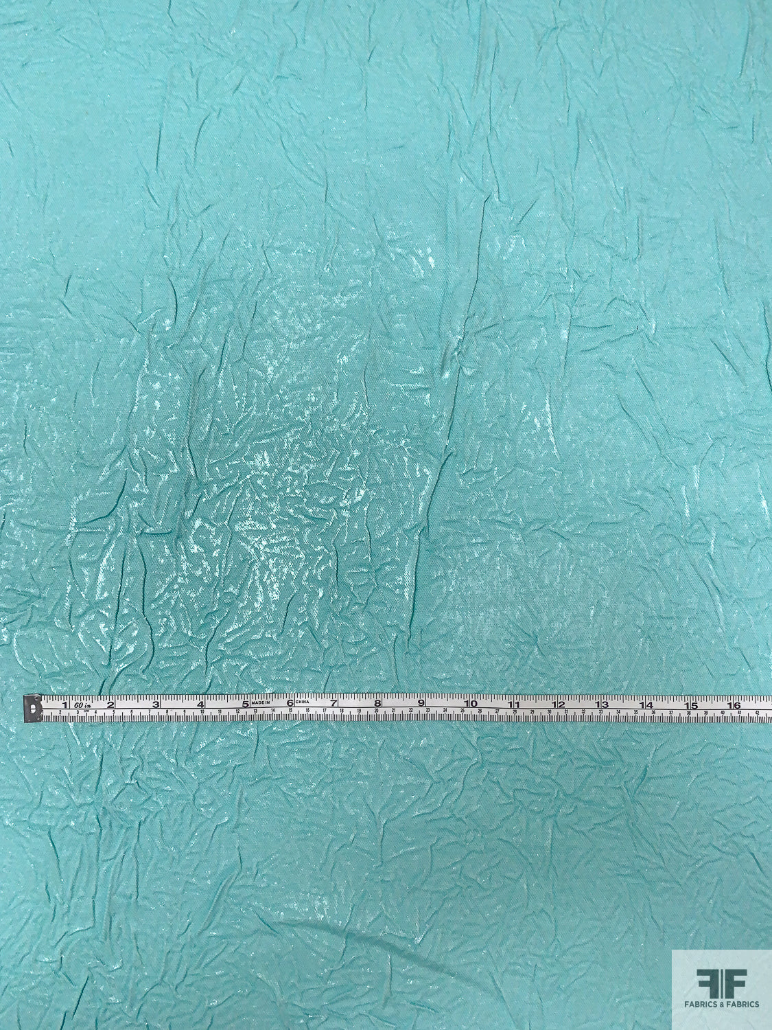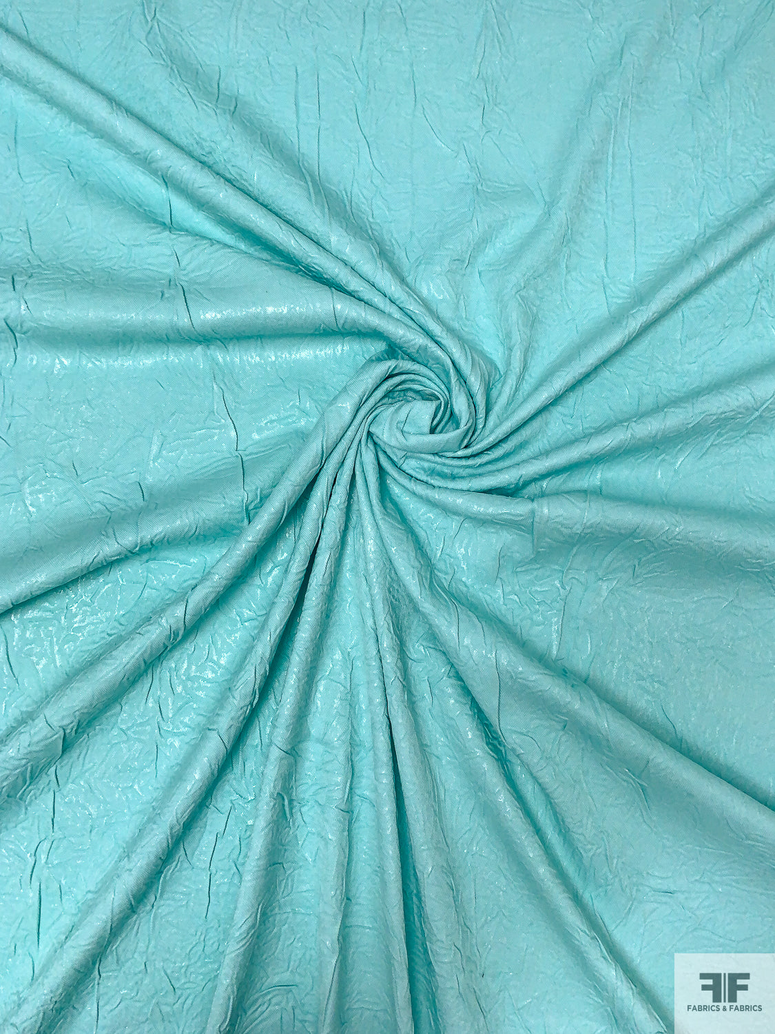 Italian Crinkled Gloss-Stamped Denim with Stretch - Aqua