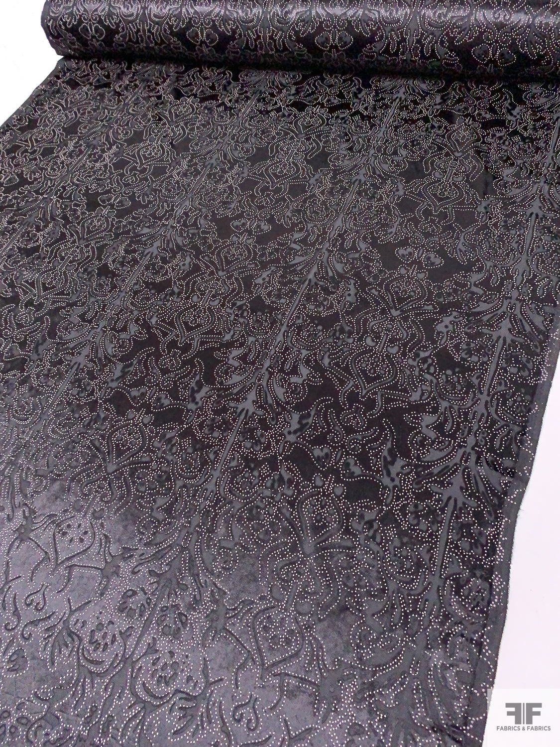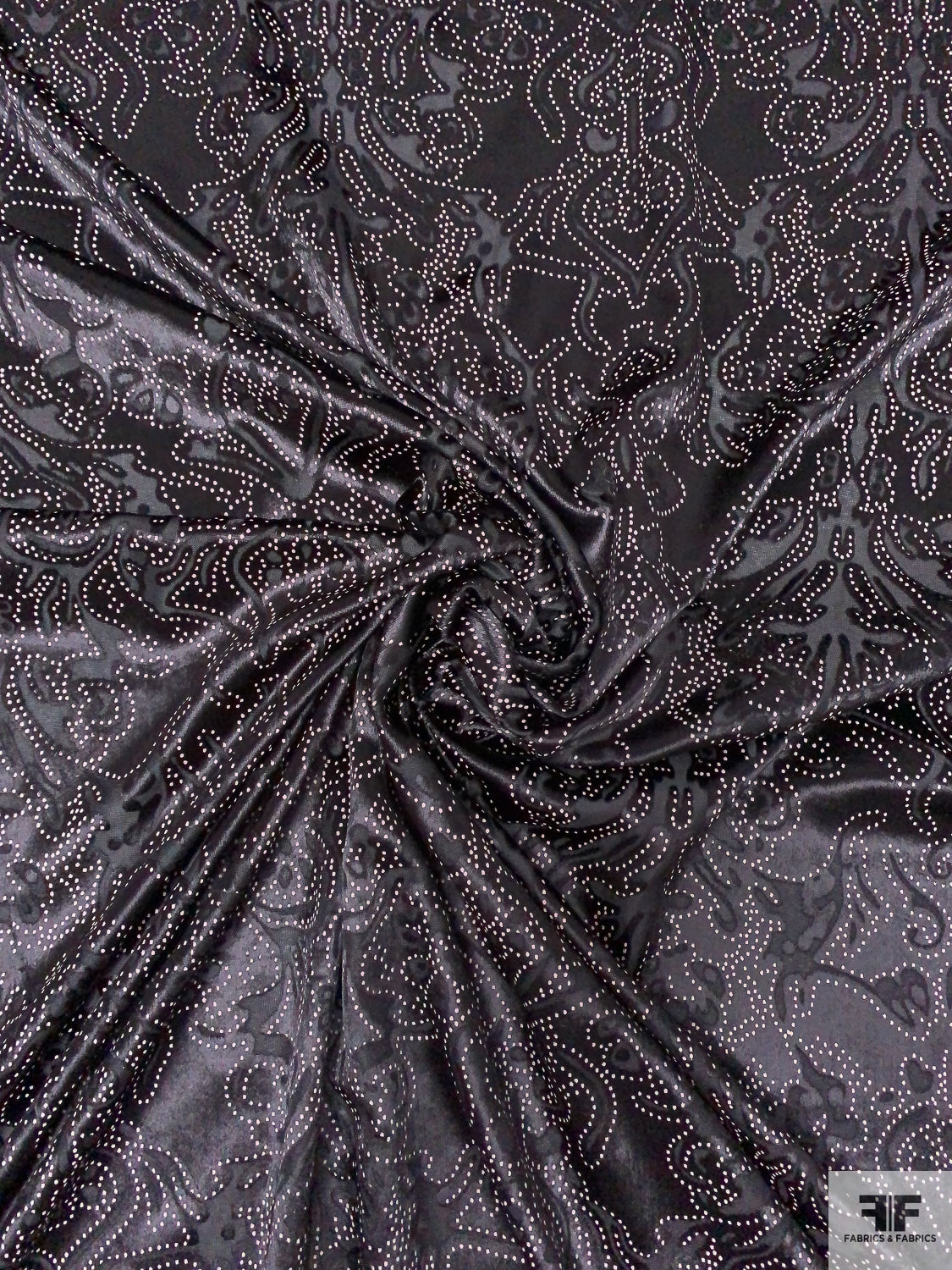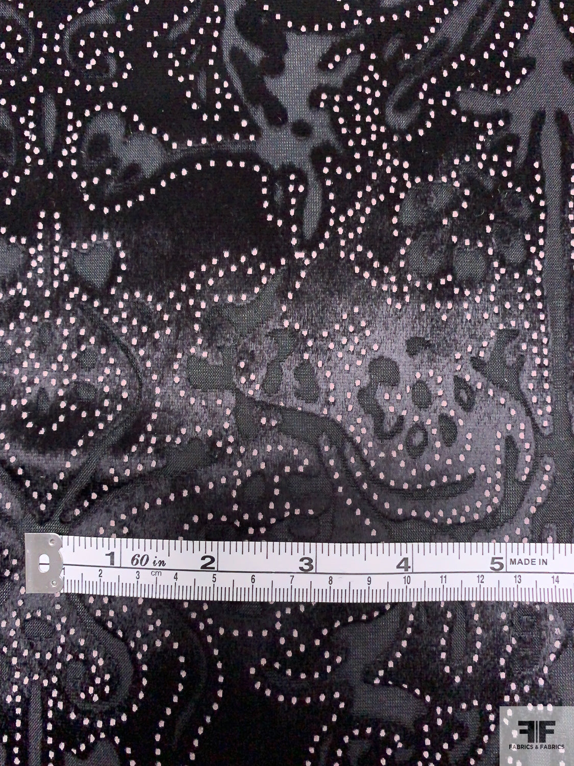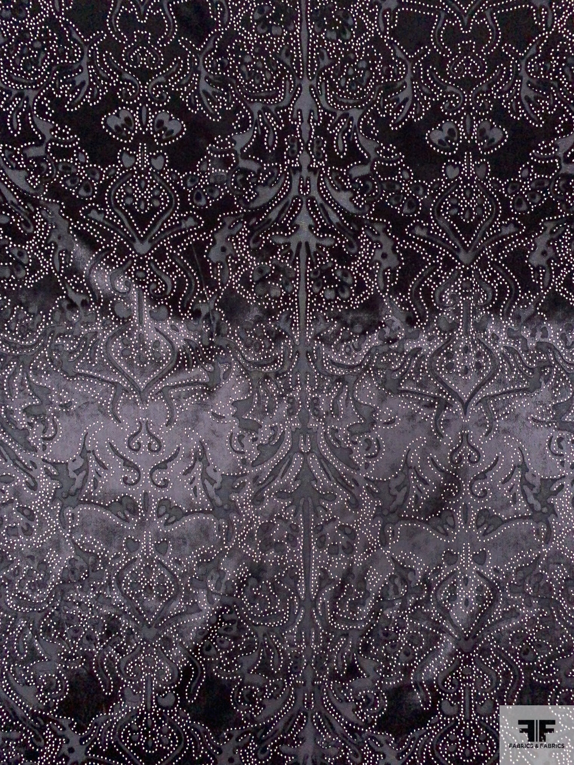 Damask Burnout Panné Velvet with Printed Dots - Black / Blush White