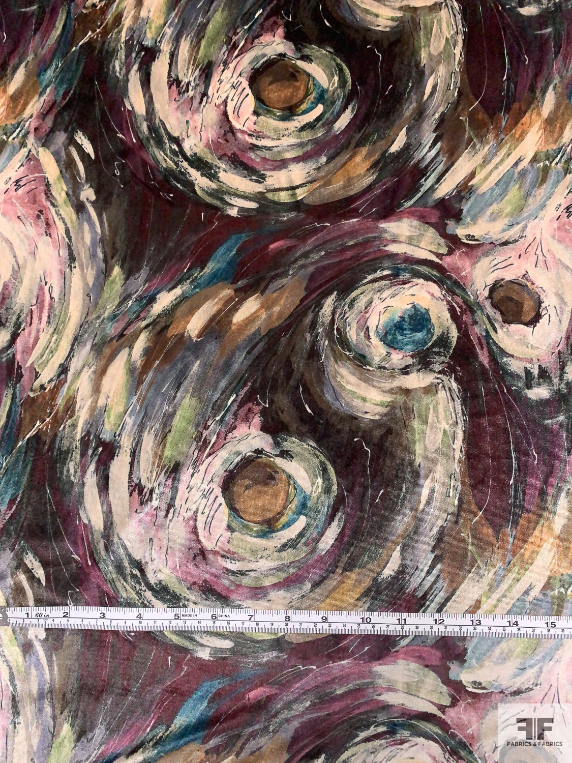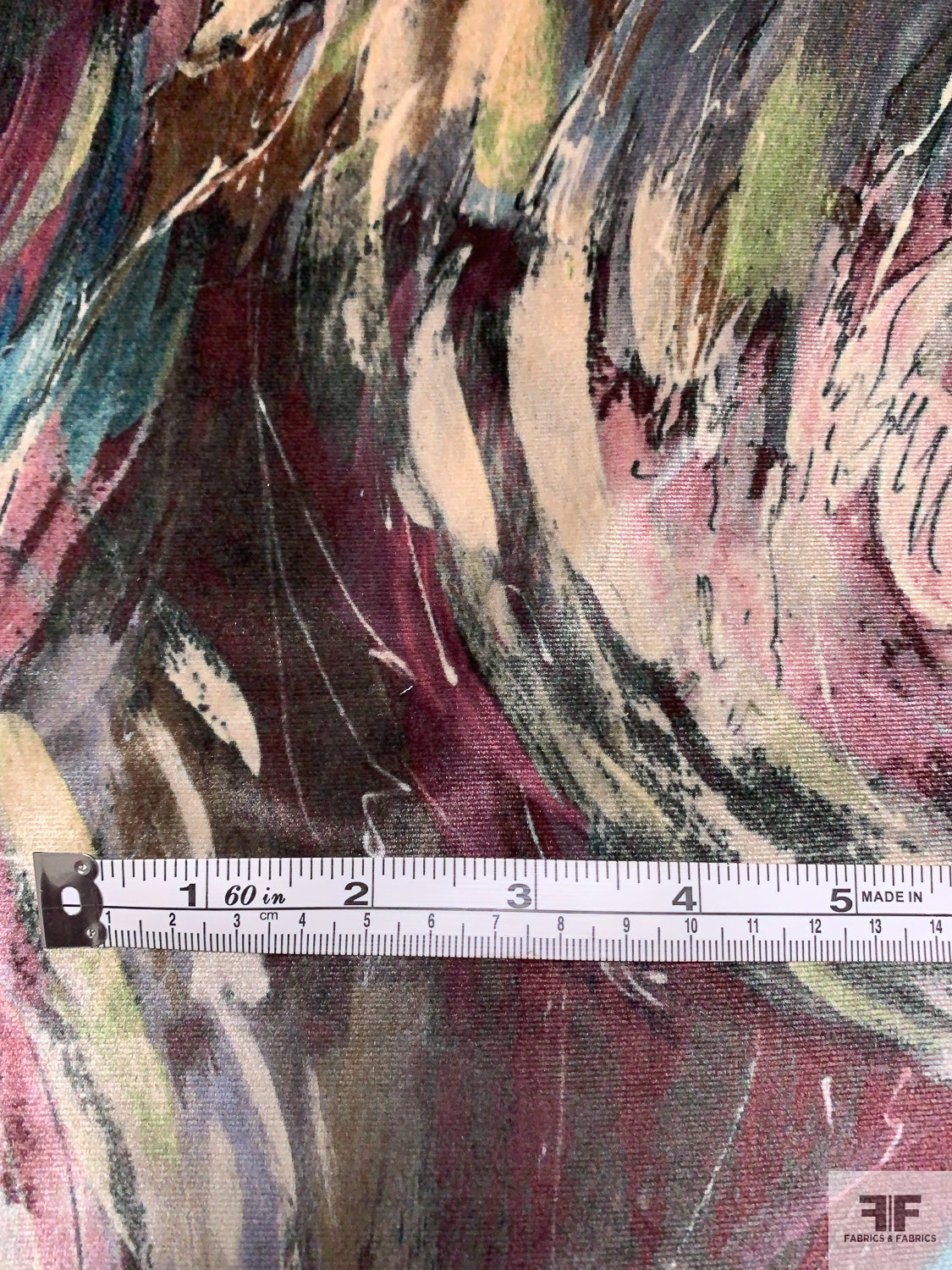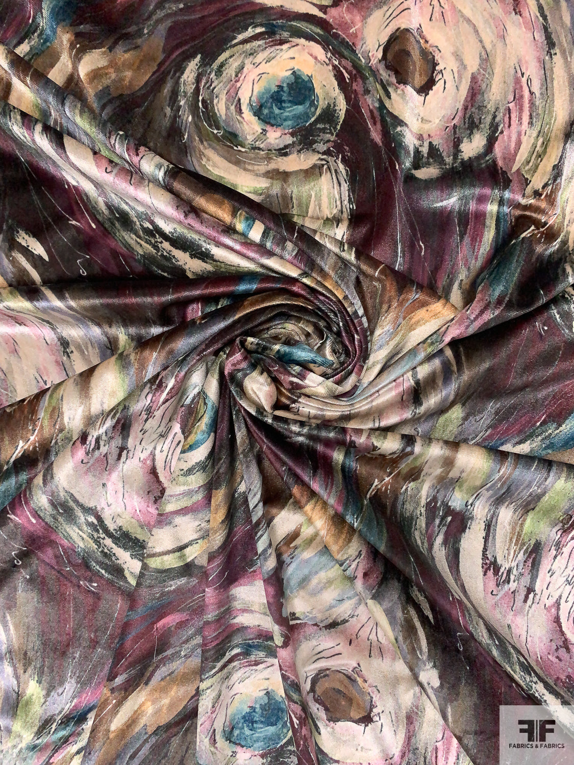 Italian Swirl Graphic Printed Micro Stretch Velvet - Purples / Teals / Earth Tones