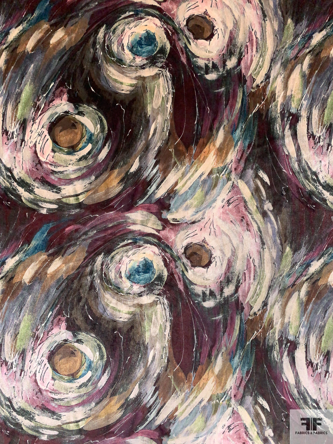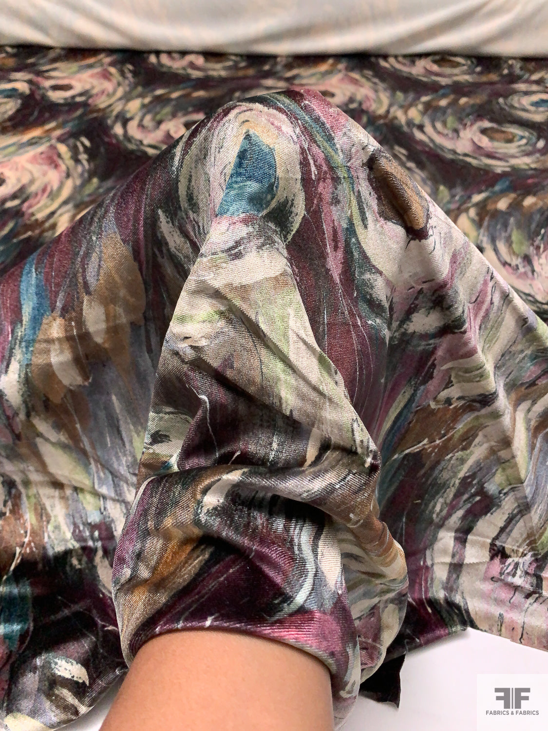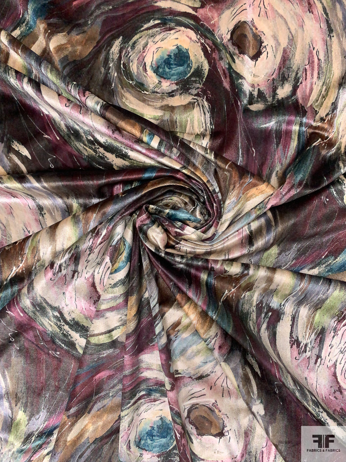 Italian Swirl Graphic Printed Micro Stretch Velvet - Purples / Teals / Earth Tones