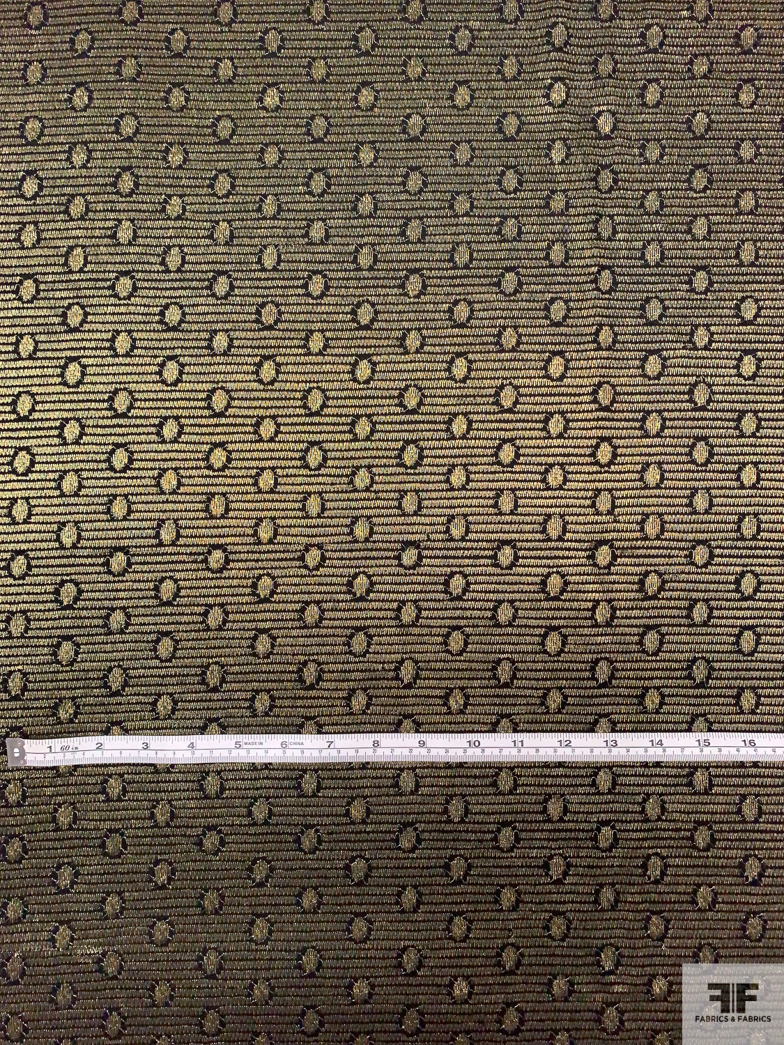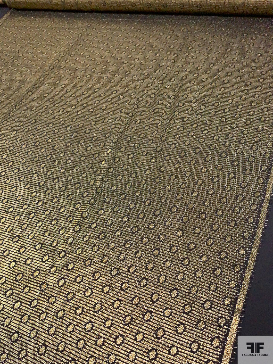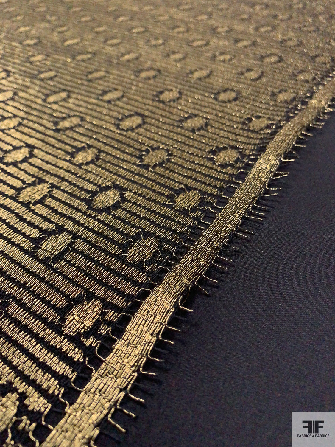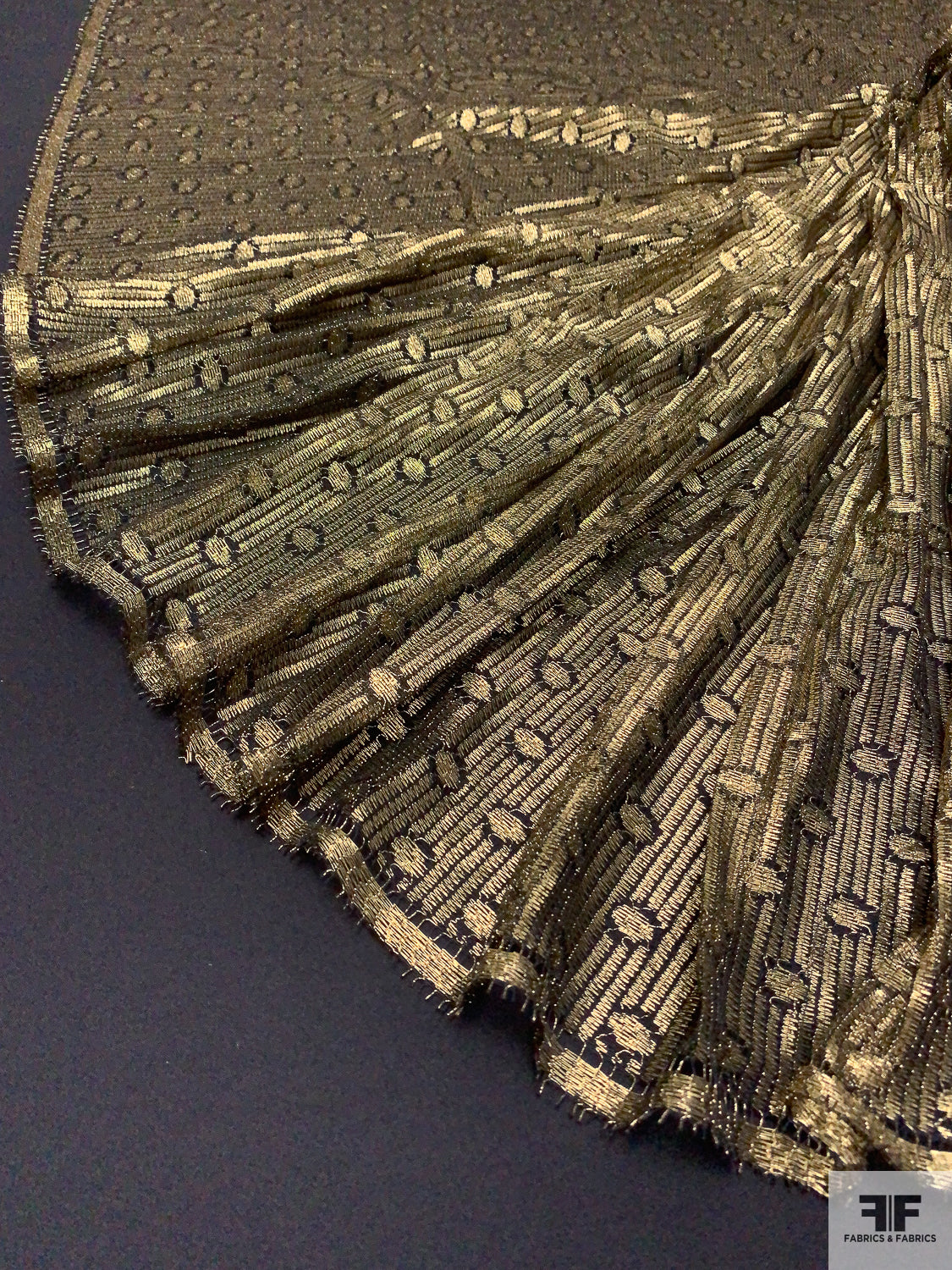 Circle and Striped Metallic French Chantilly Lace - Antique Gold / Black