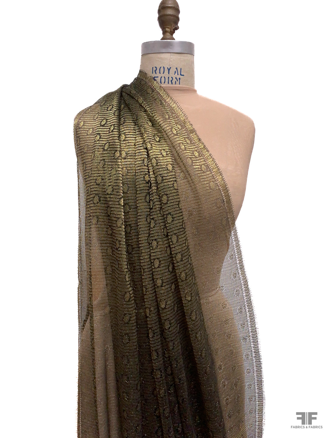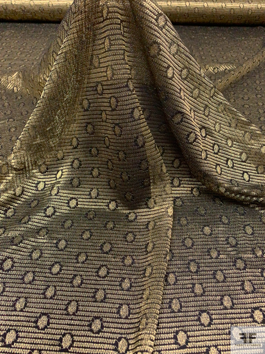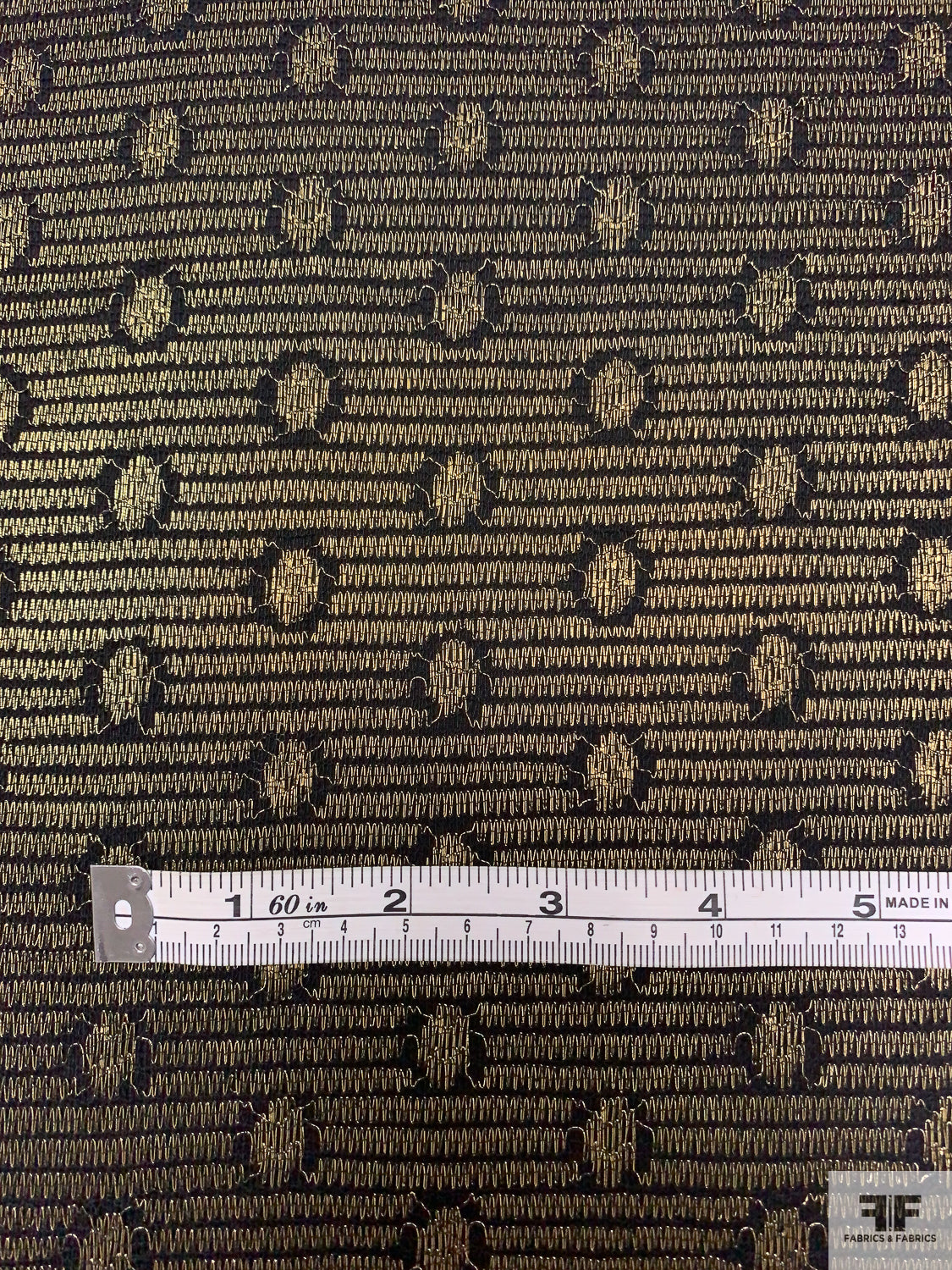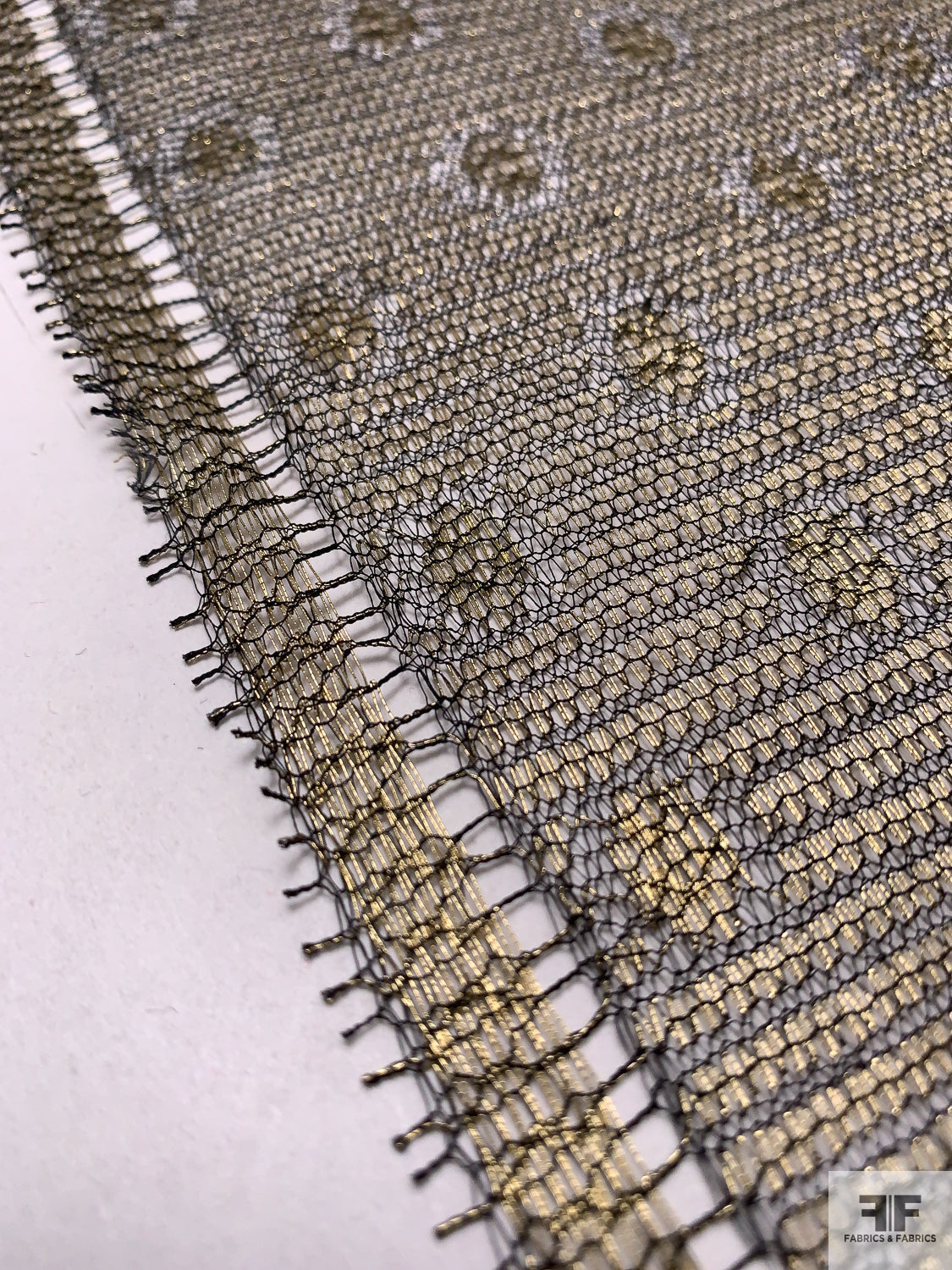Circle and Striped Metallic French Chantilly Lace - Antique Gold / Black