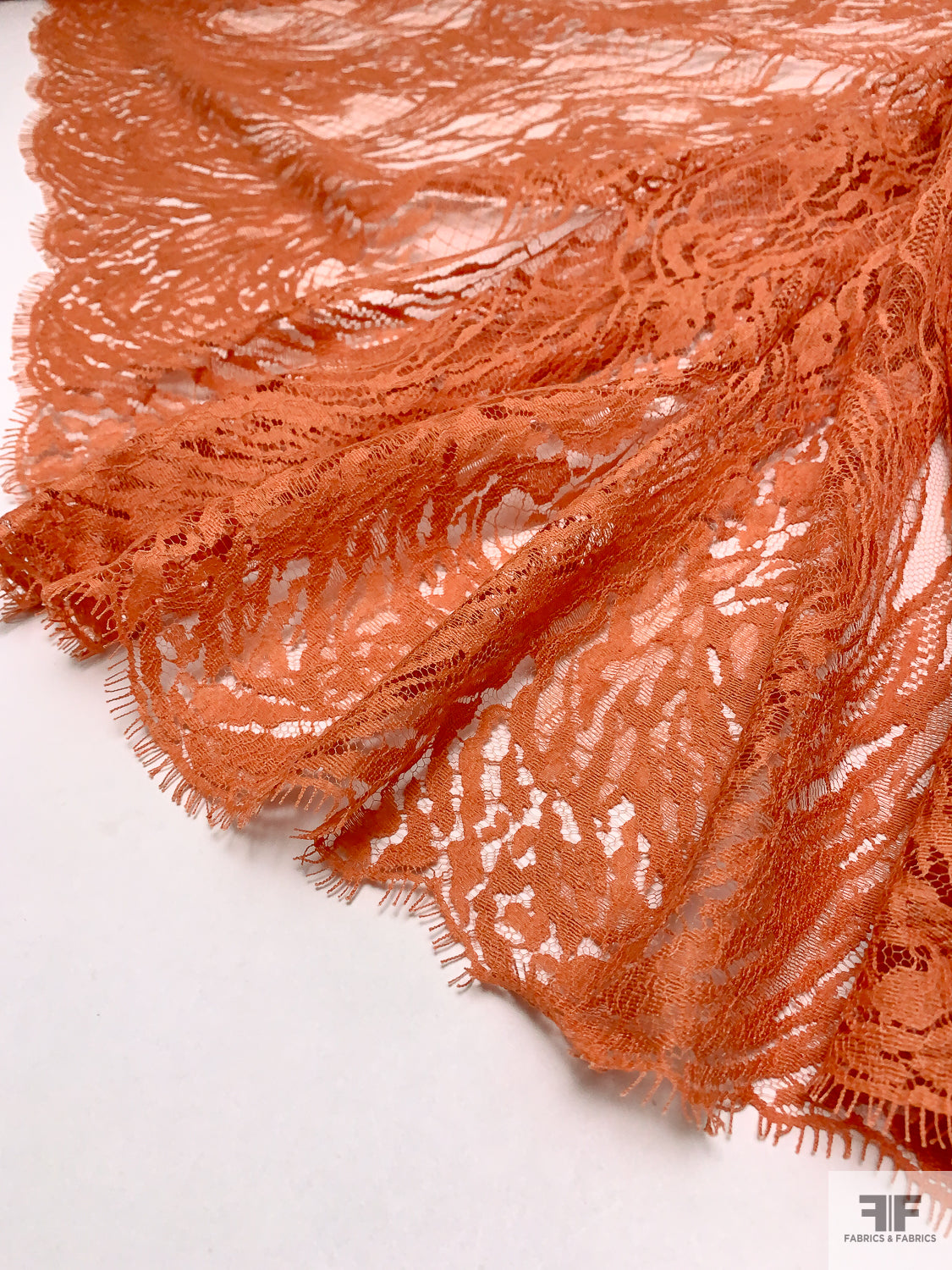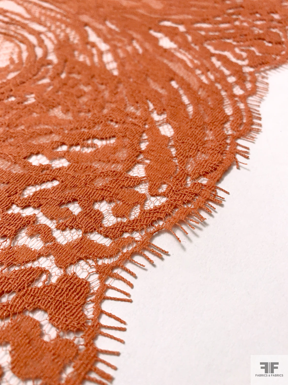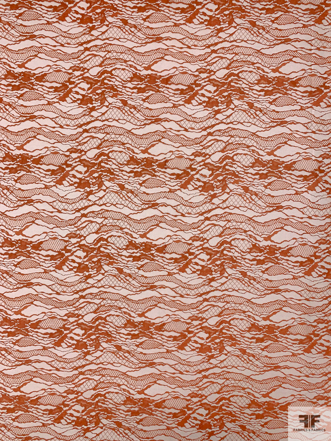 Double Scalloped Abstract French Chantilly Lace - Burnt Sienna Orange