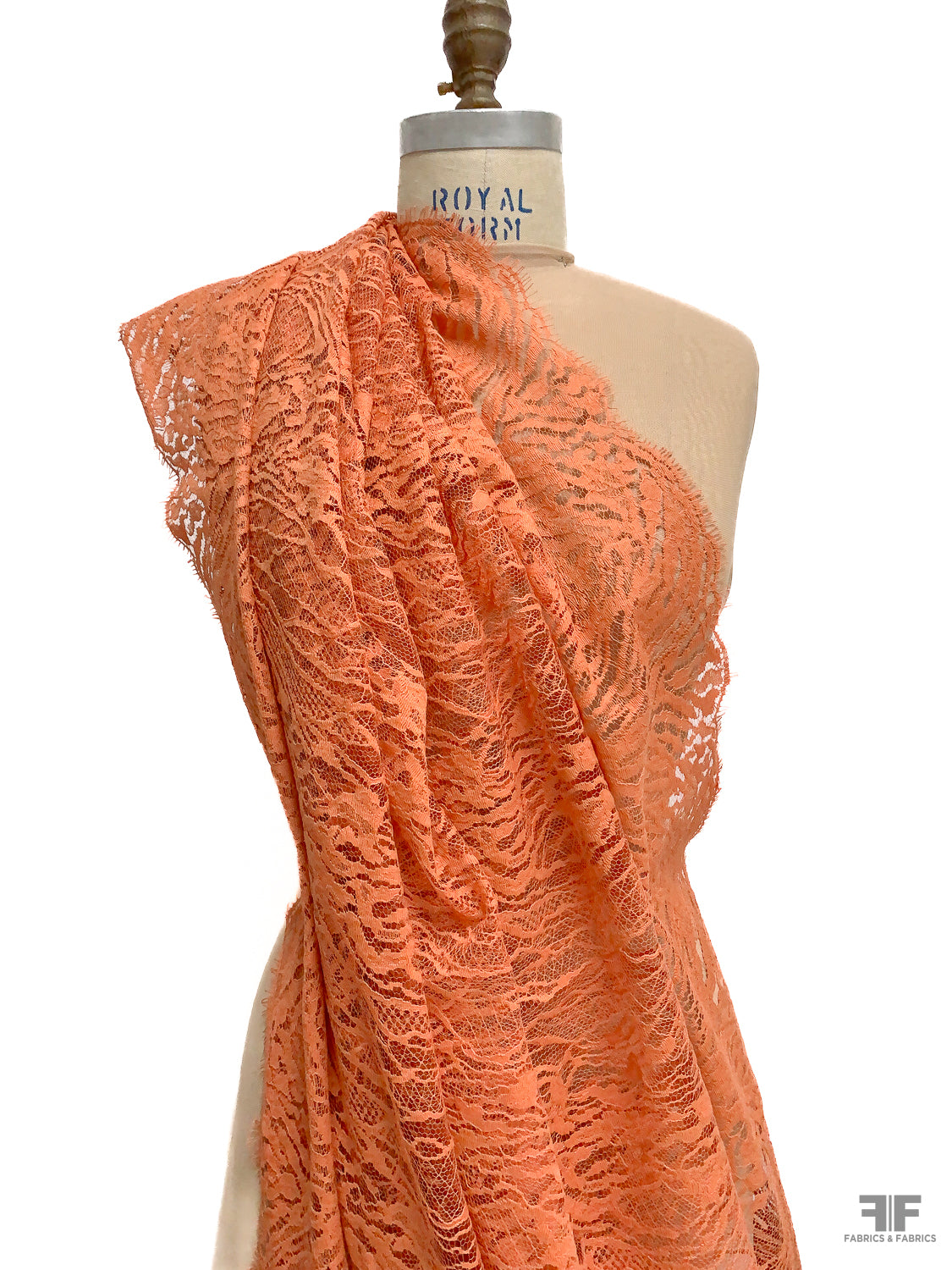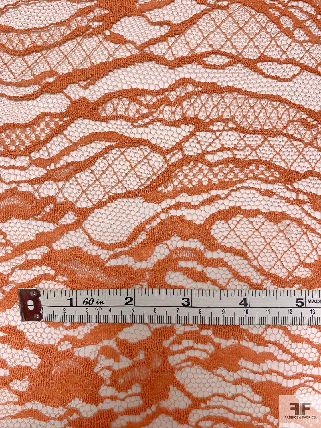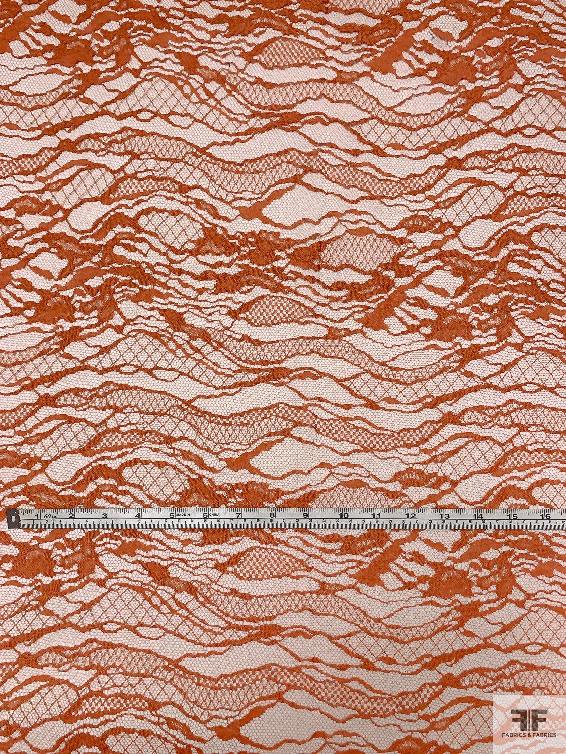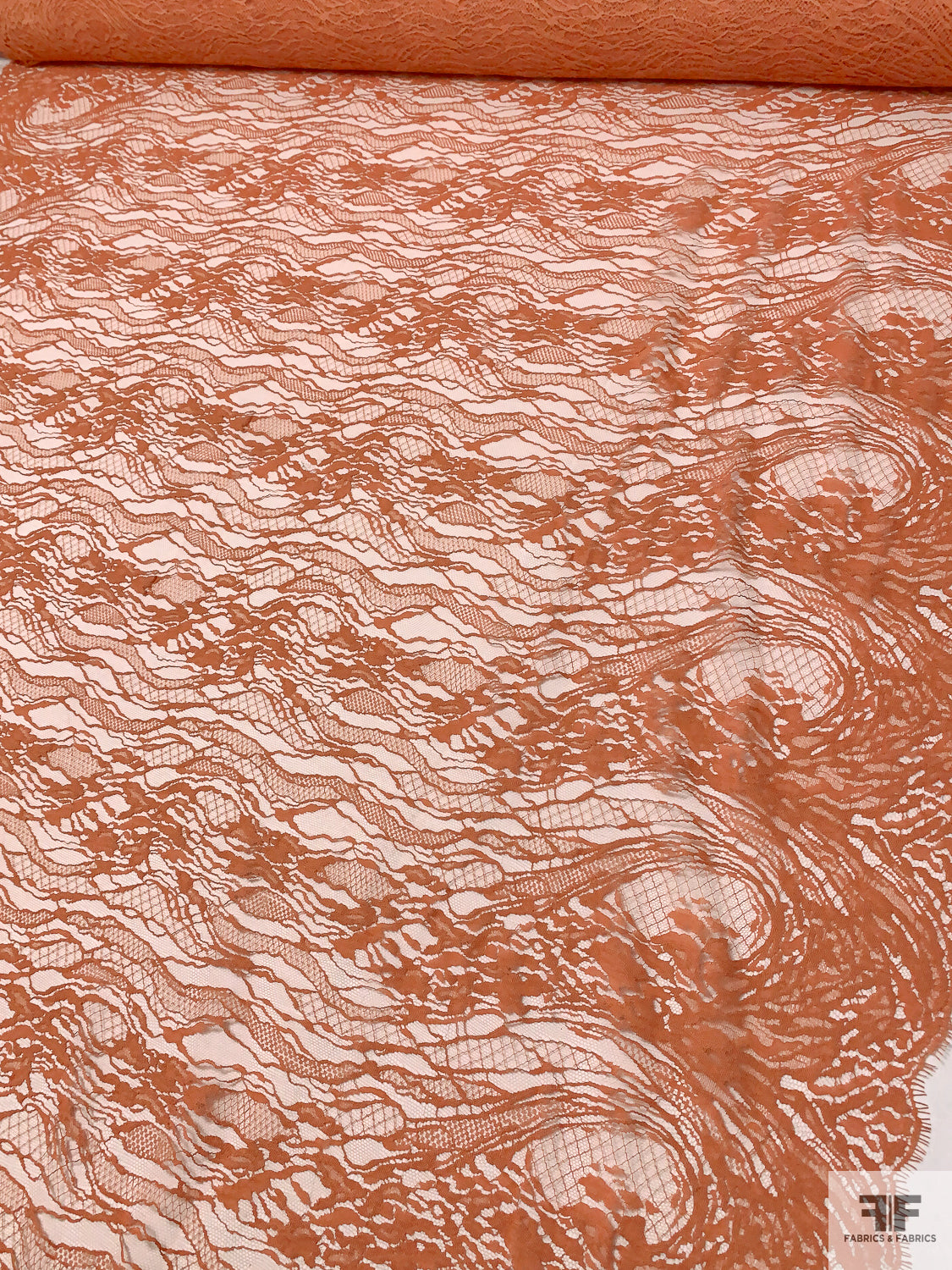 Double Scalloped Abstract French Chantilly Lace - Burnt Sienna Orange