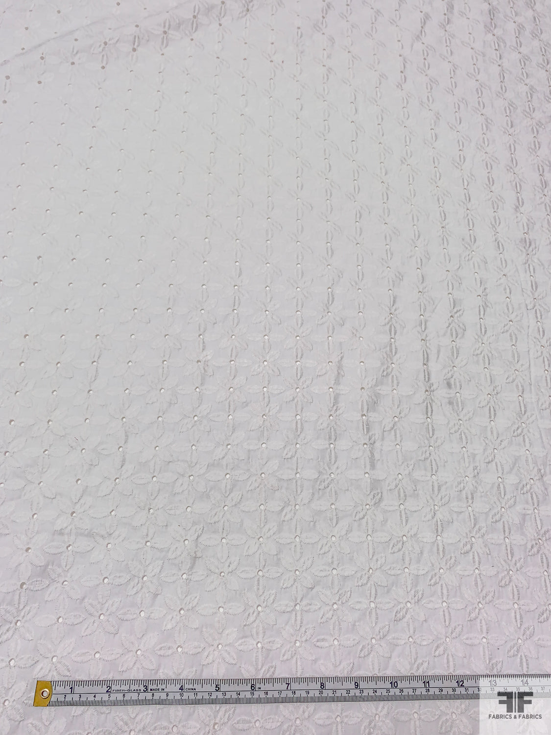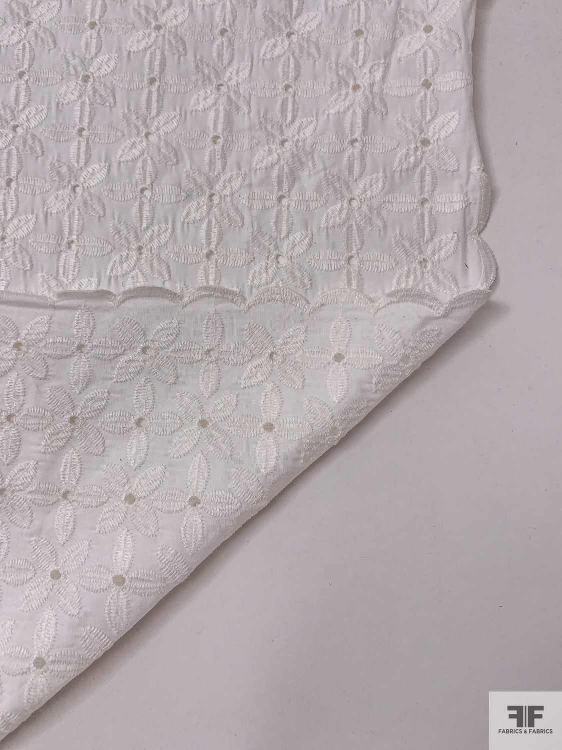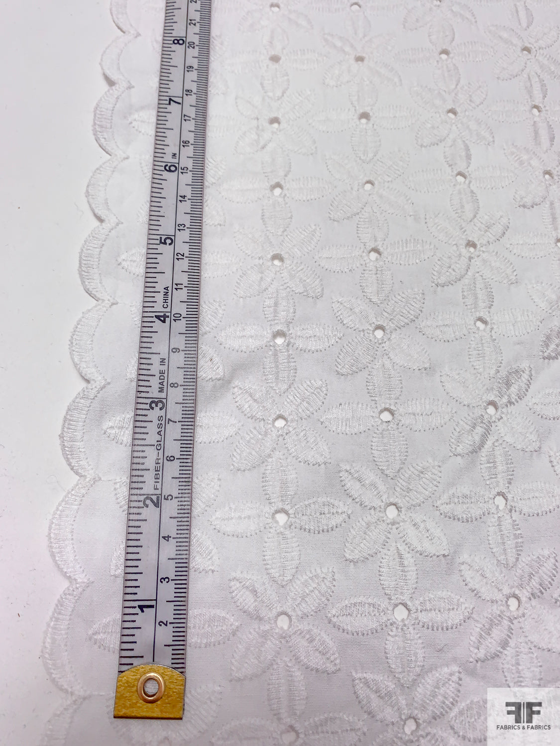 Double-Scalloped Floral Embroidered Cotton Eyelet - White