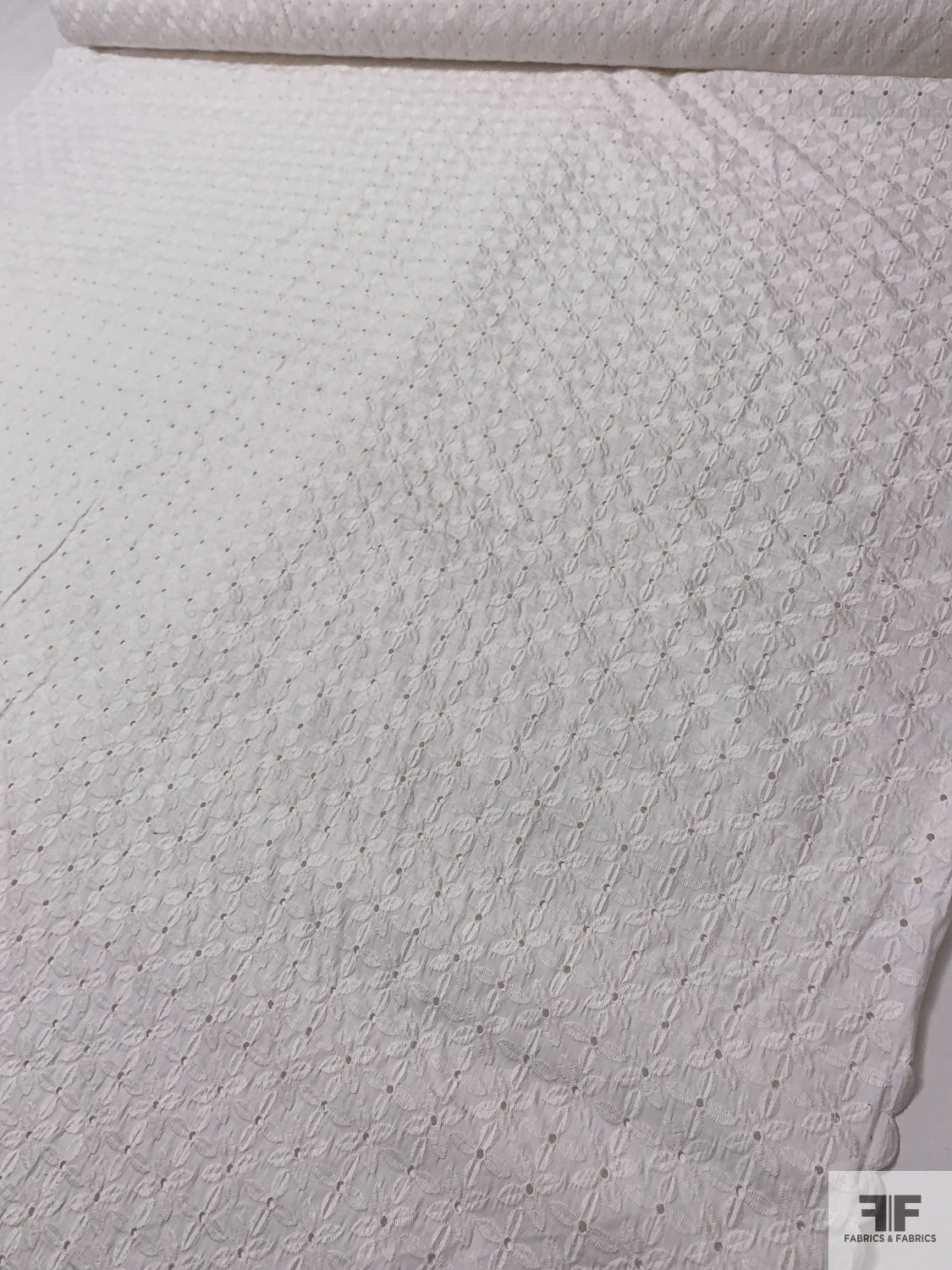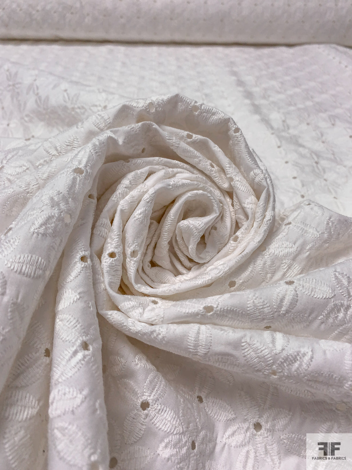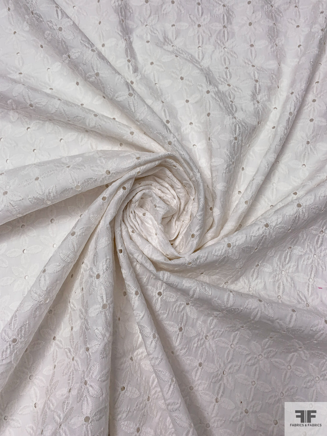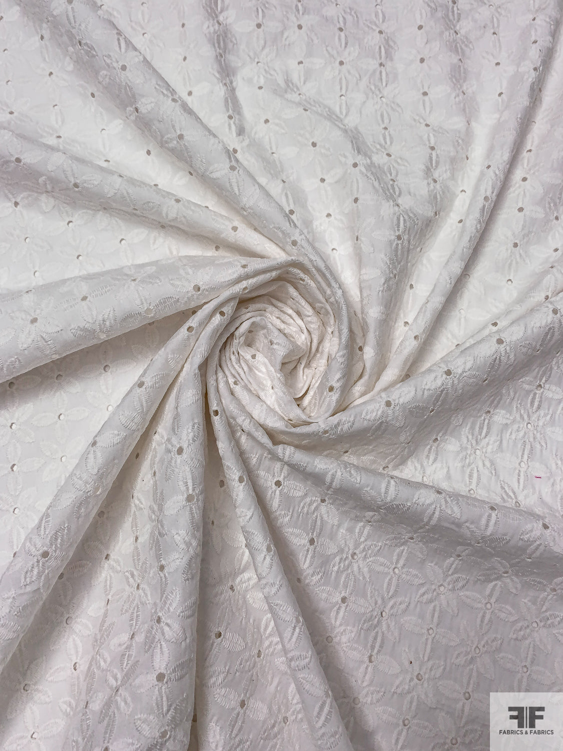Double-Scalloped Floral Embroidered Cotton Eyelet - White
