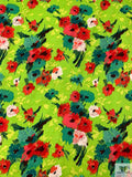 Italian Floral Printed Stretch Cotton Sateen-Twill - Black / Neon Yellow / Beige / Grey