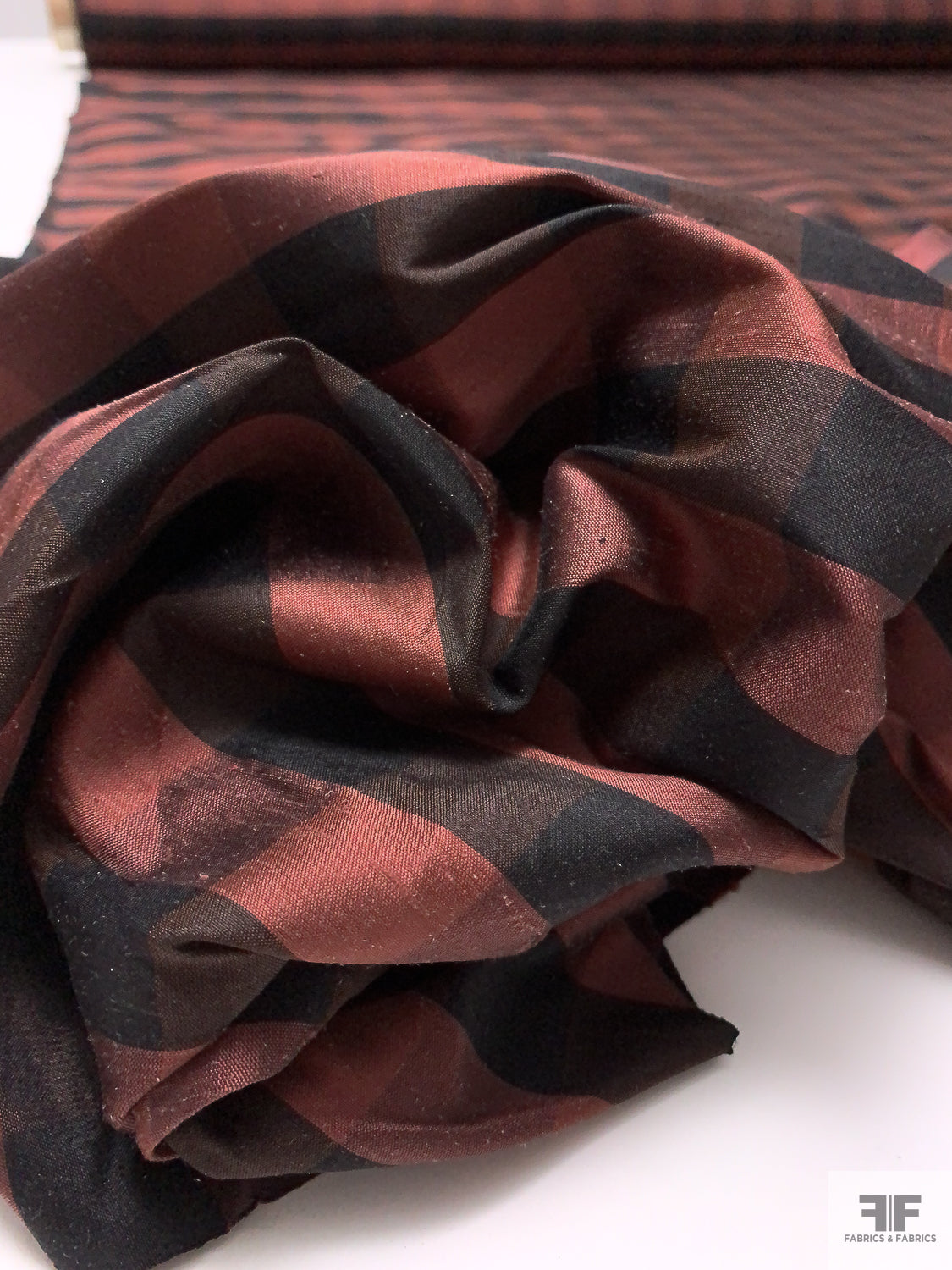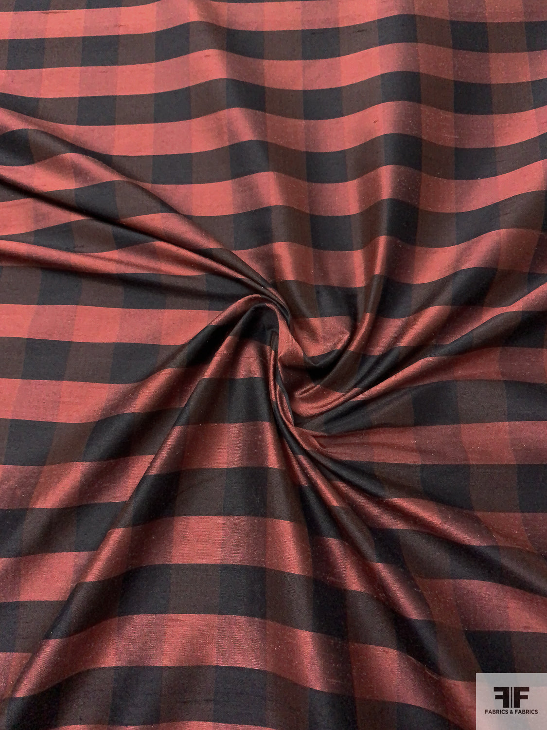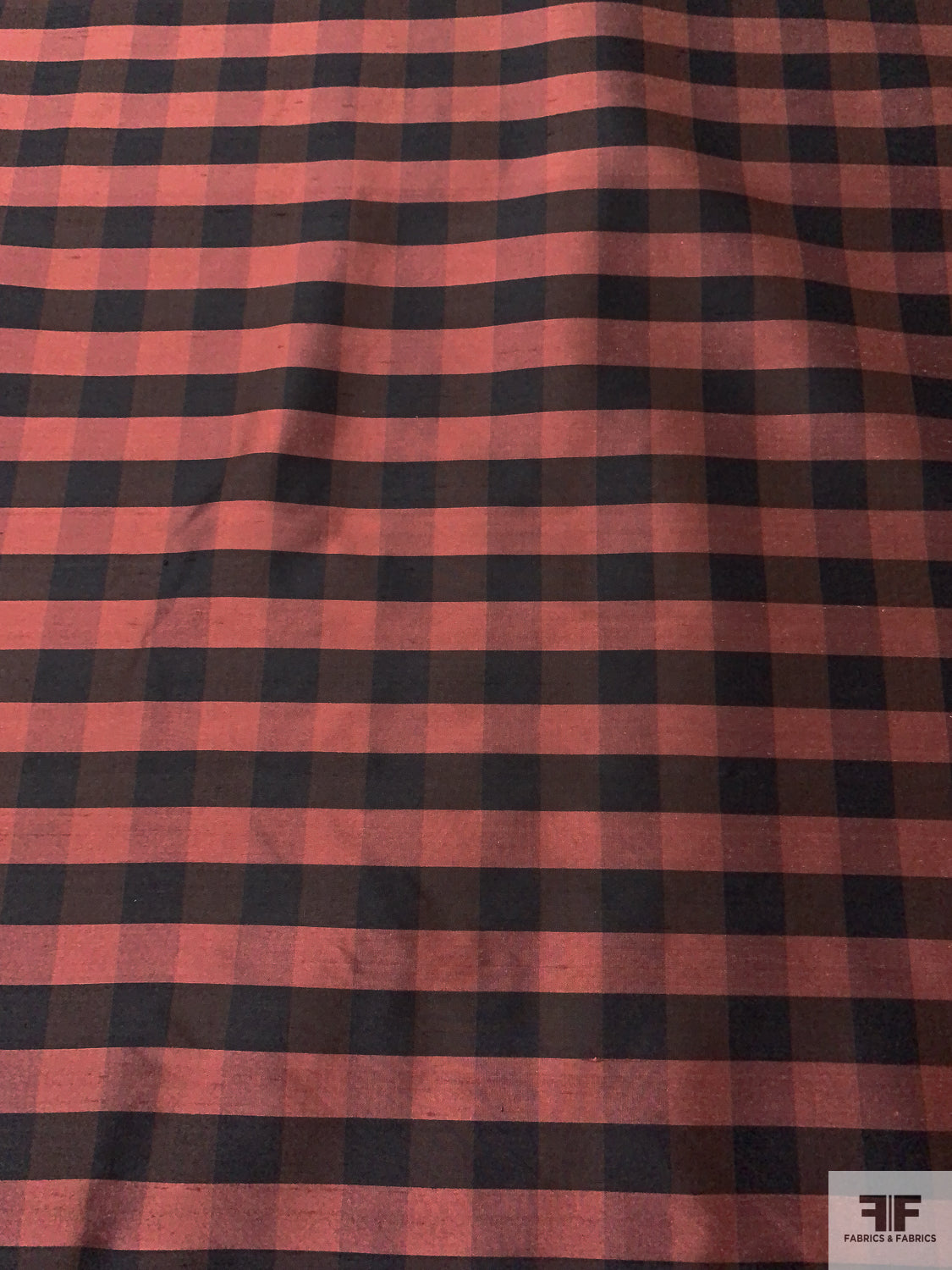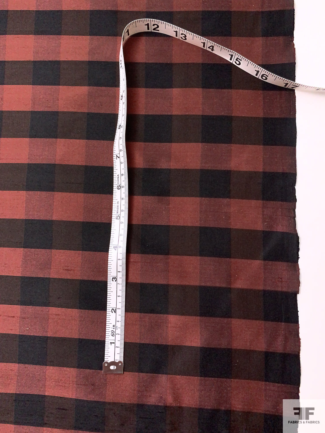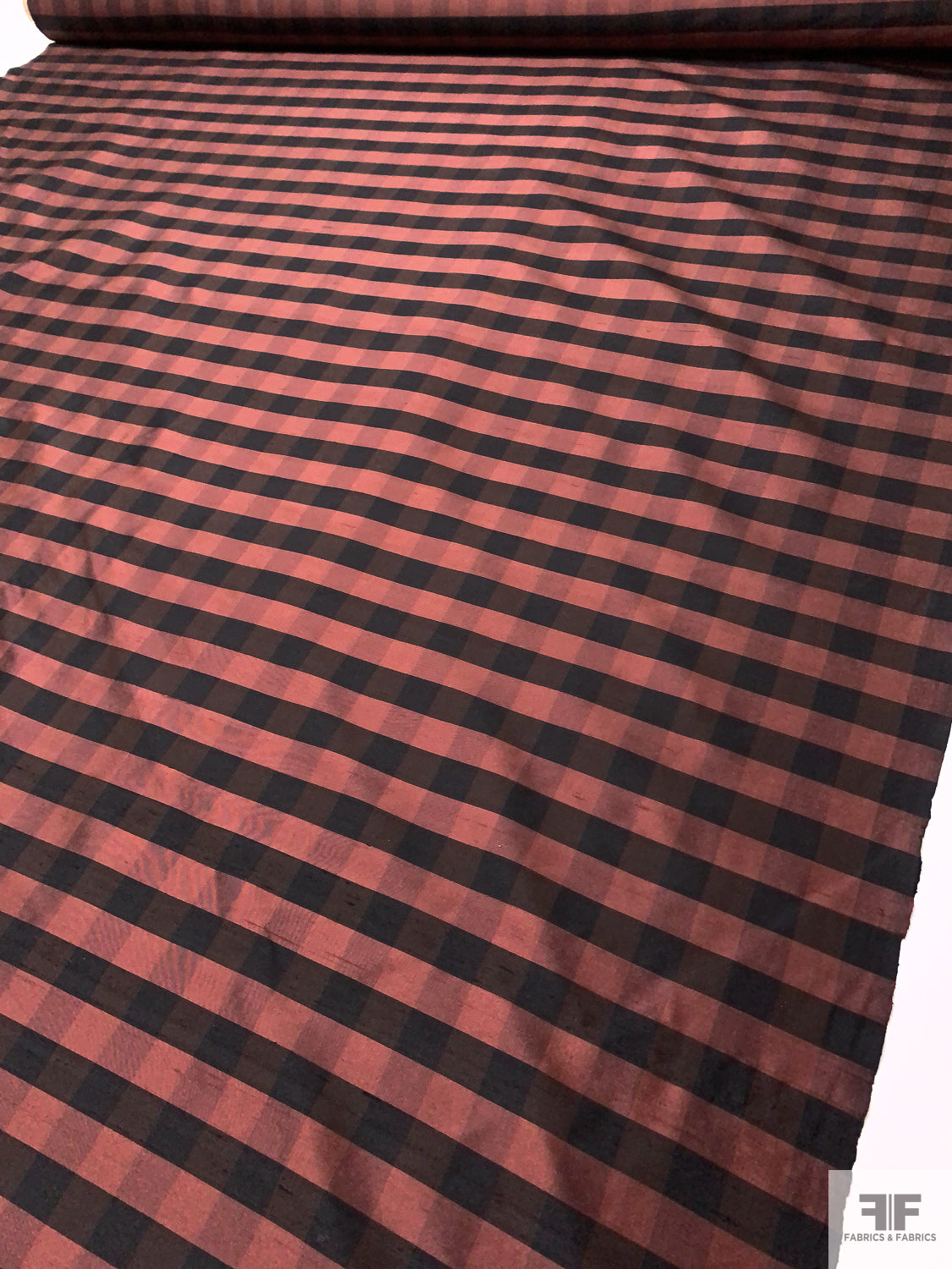 Gingham Yarn-Dyed Silk Shantung - Brick / Black