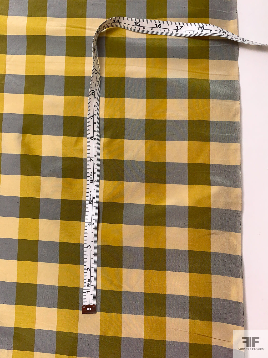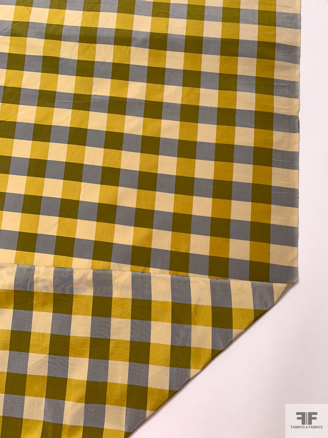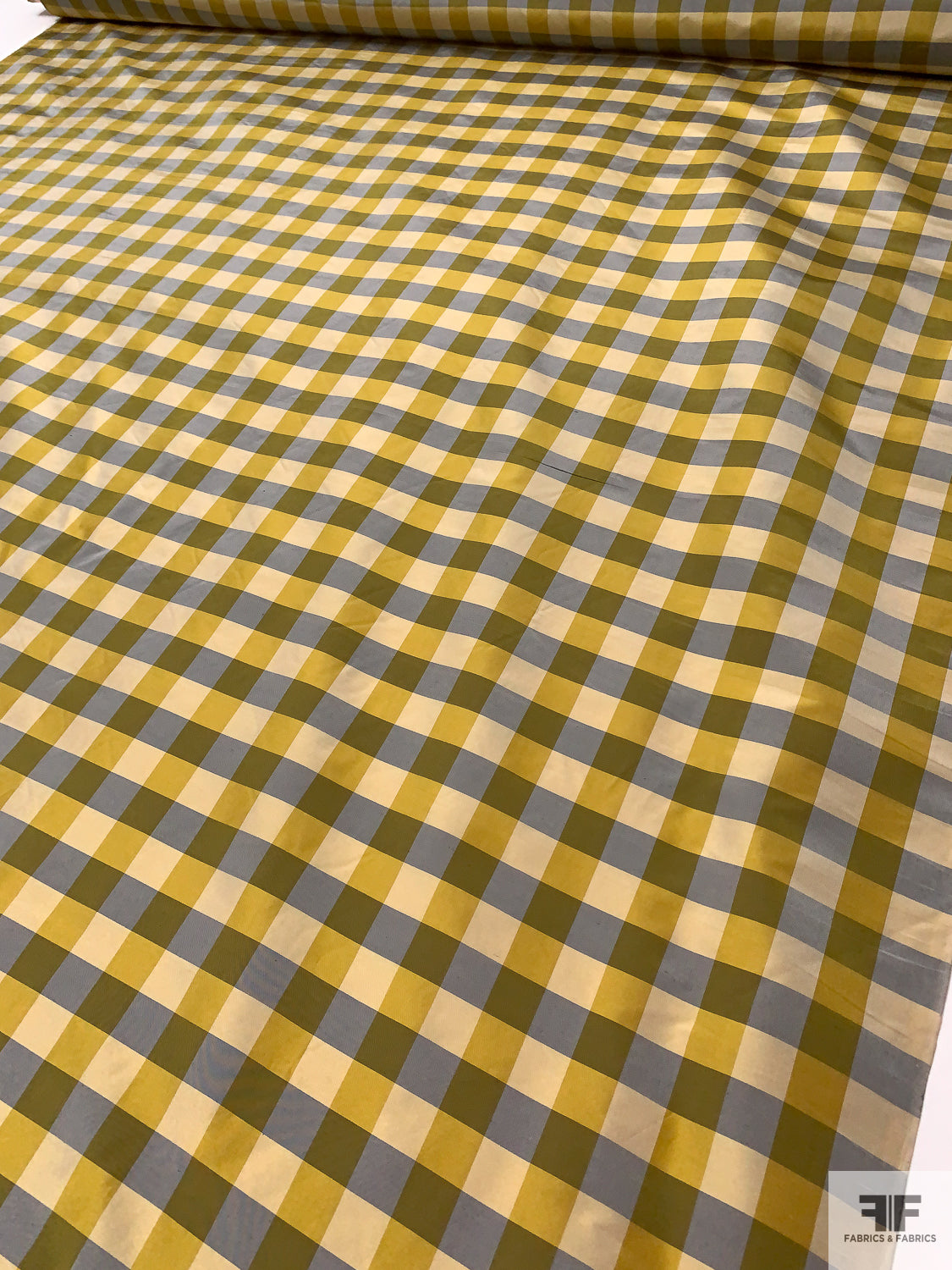 Gingham Yarn-Dyed Silk Taffeta - Dusty Chartreuse / Grey / Lightest Gold