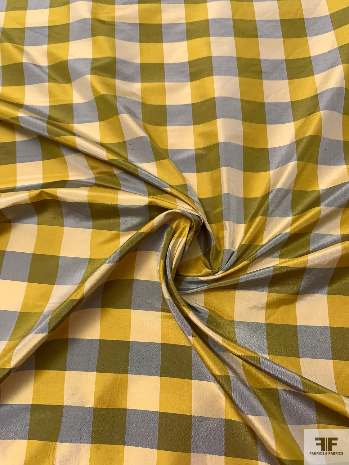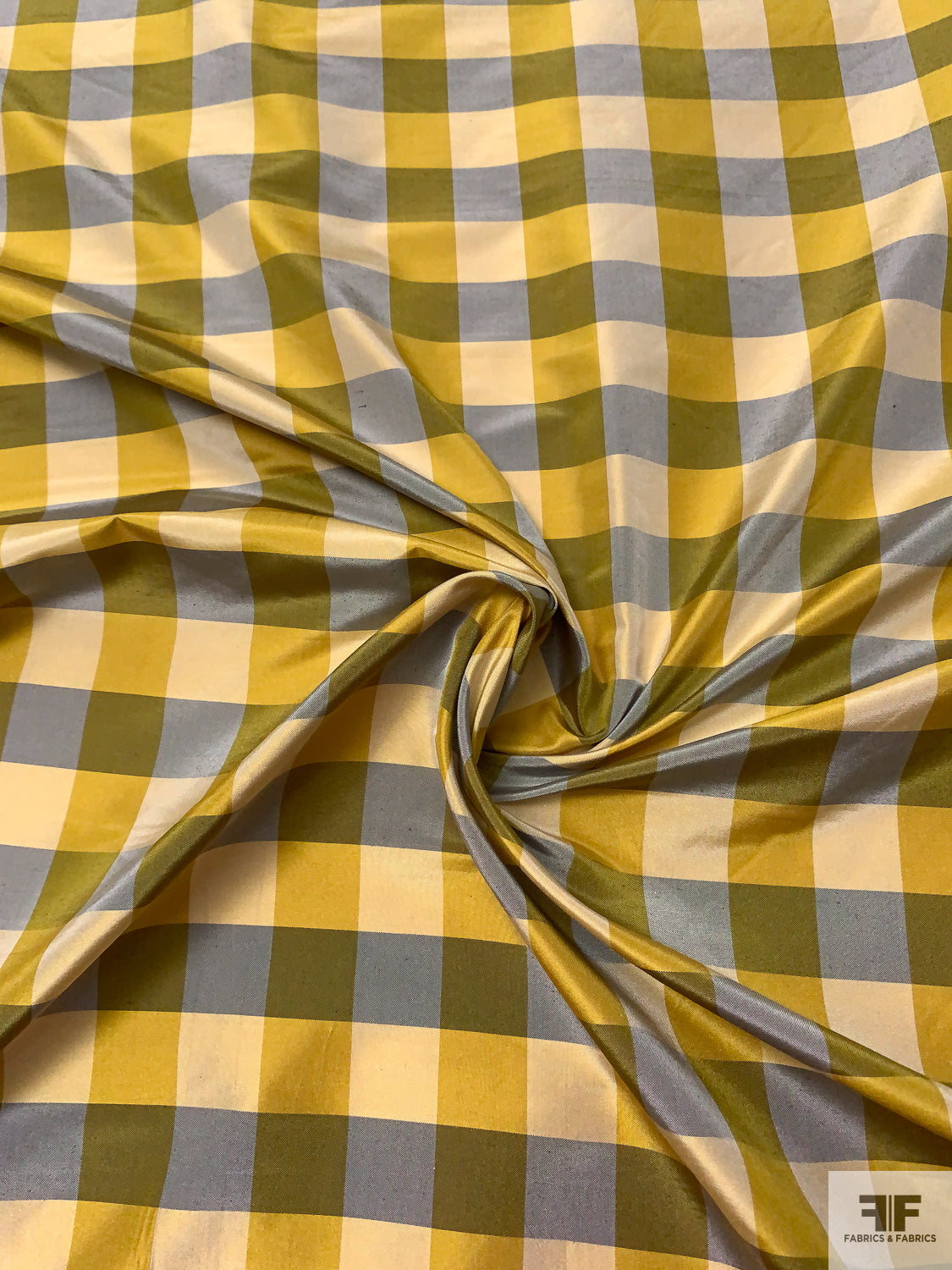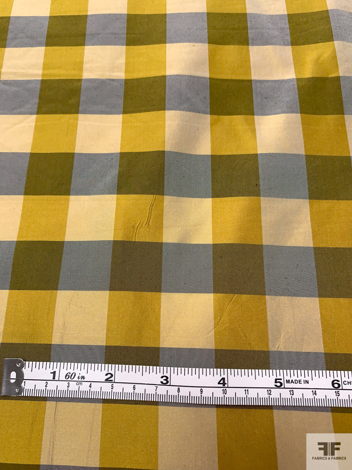 Gingham Yarn-Dyed Silk Taffeta - Dusty Chartreuse / Grey / Lightest Gold