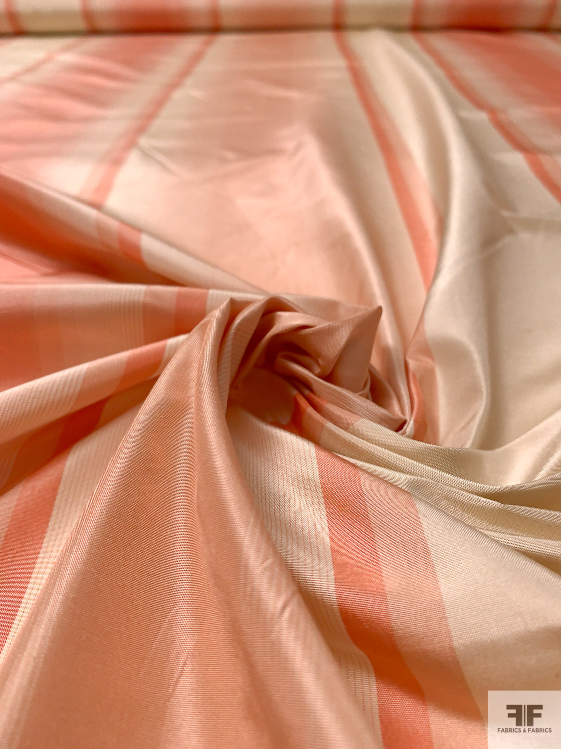 Vertical Striped Yarn-Dyed Silk Taffeta - Antique Coral / Cream