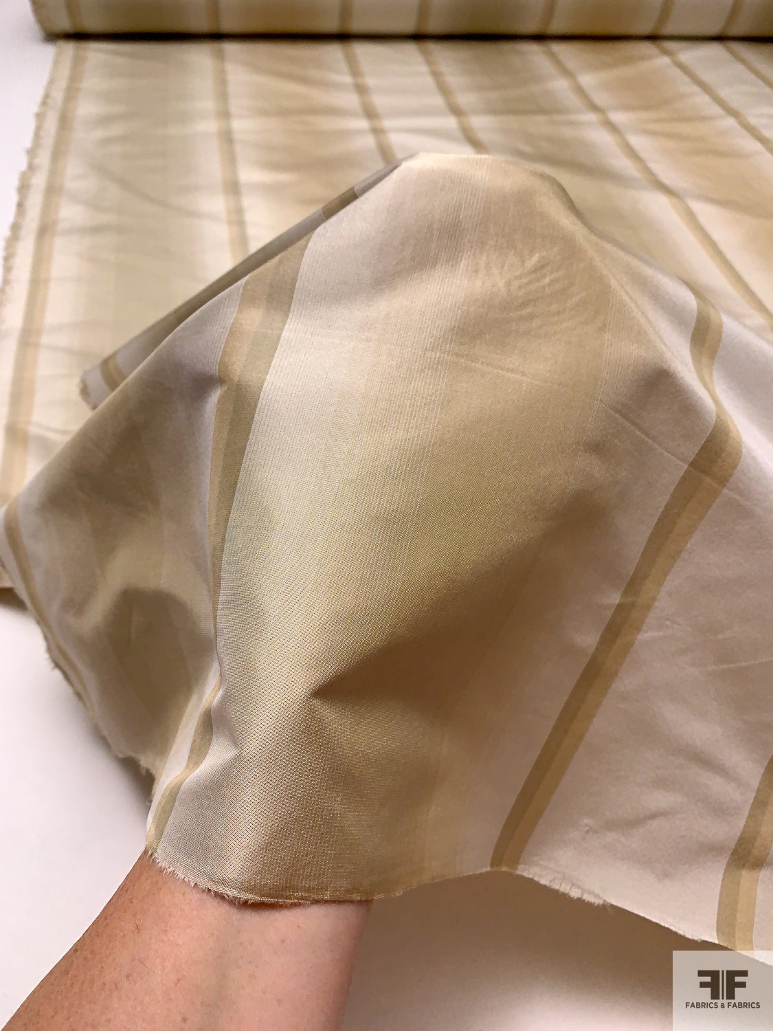 Vertical Striped Yarn-Dyed Silk Taffeta - Shades of Ecru