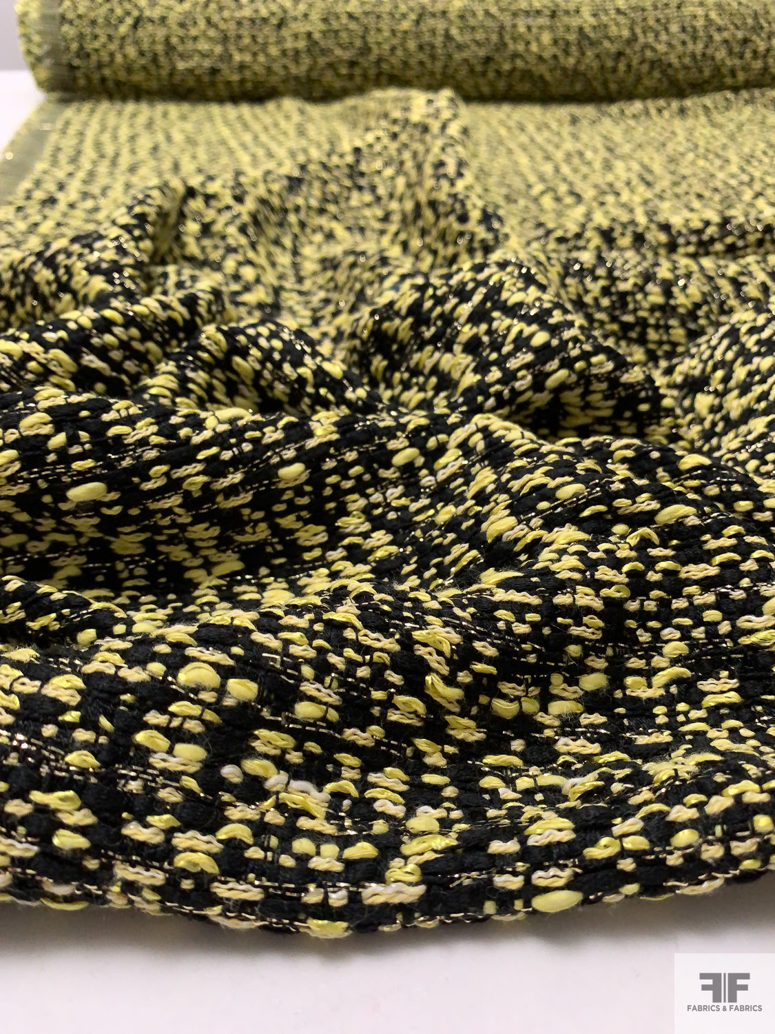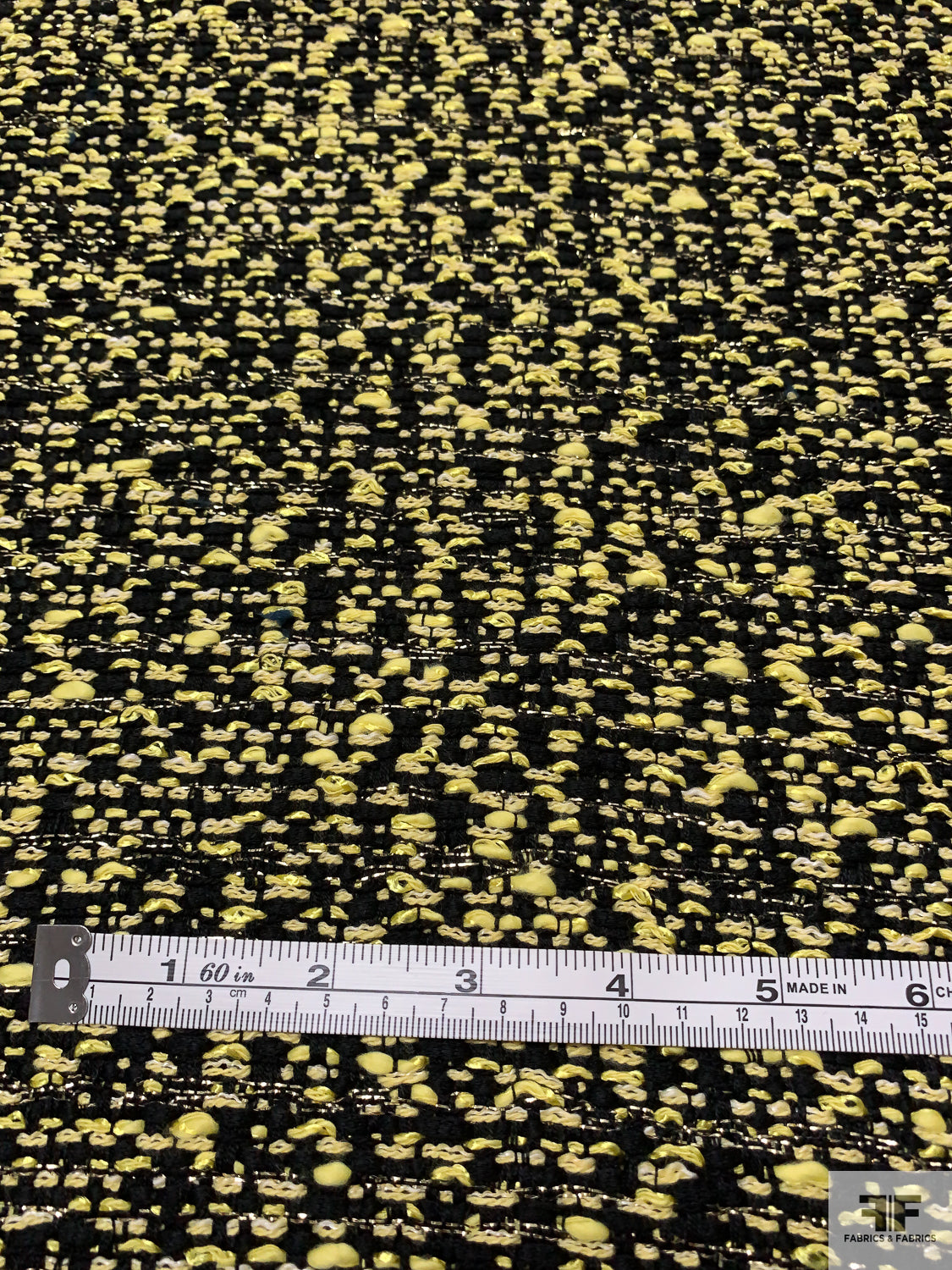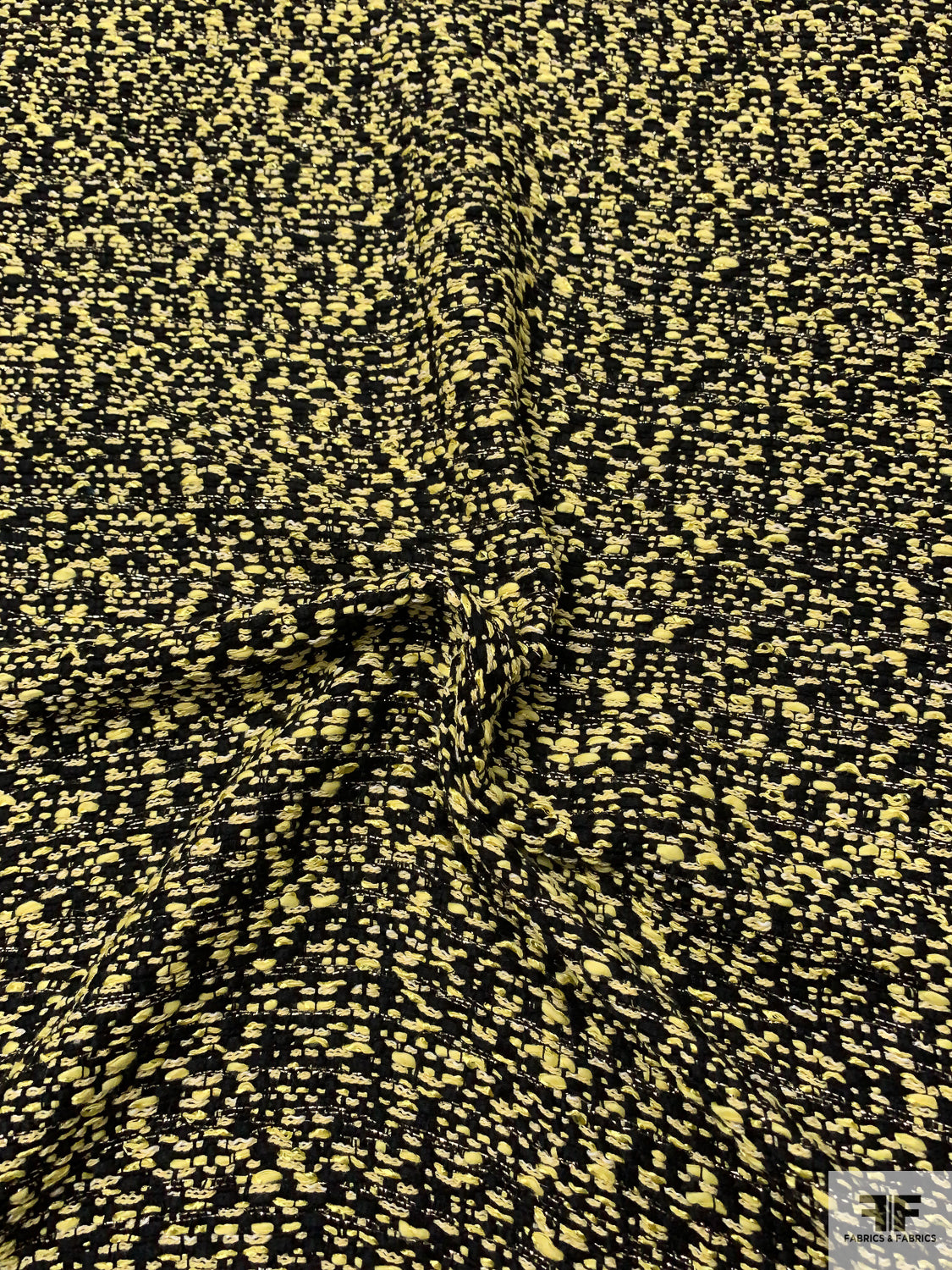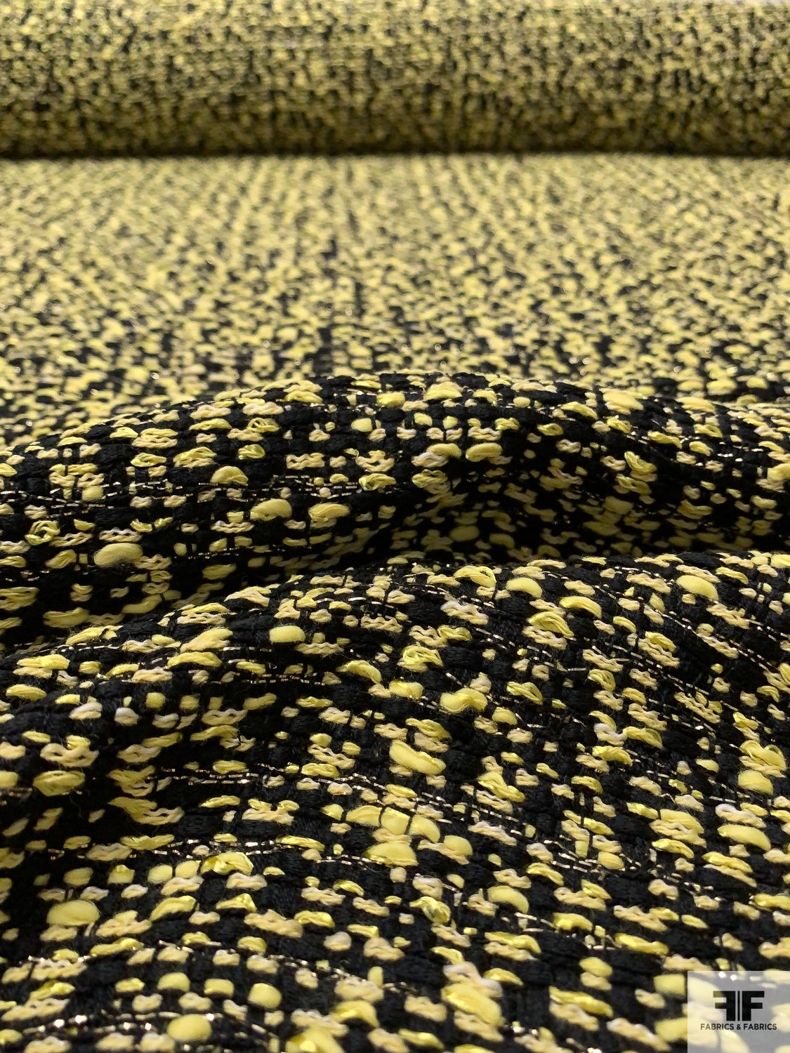 Novelty Yarn Tweed with Lurex Fibers - Lemon Yellow / Black / White / Gold