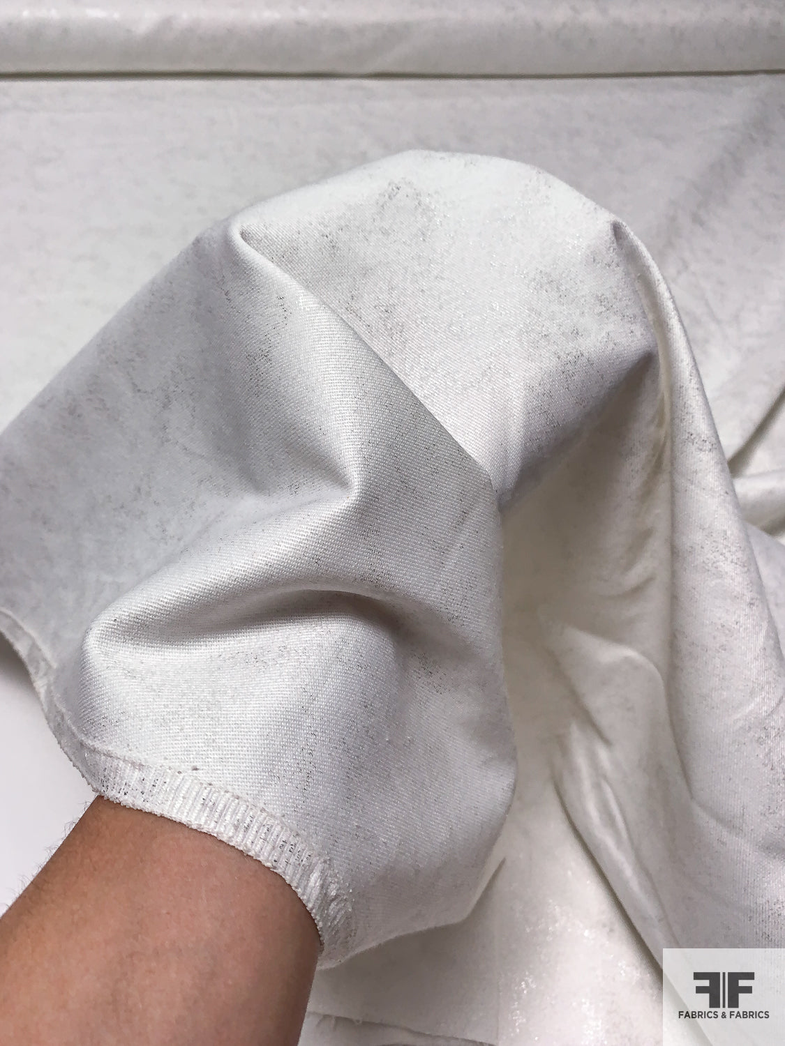 Abstract Foil Printed Stretch Cotton Twill - Off-White / Silver