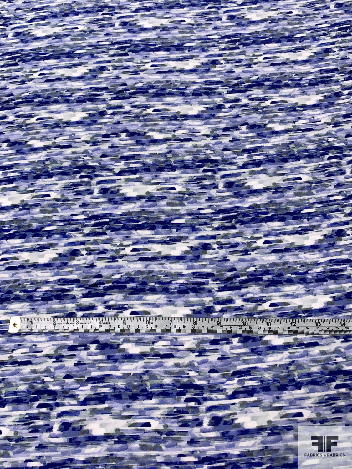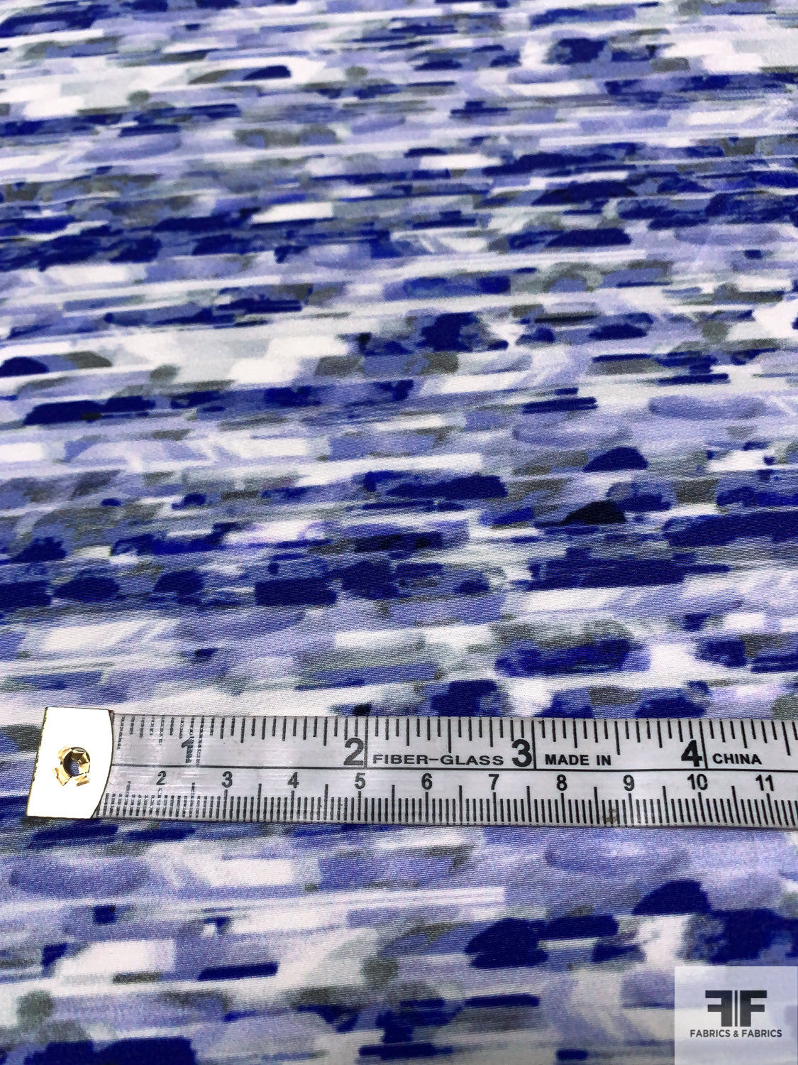 Prabal Gurung Abstract Streak Landscape Printed Silk Crepe de Chine - Electric Indigo / White / Grey