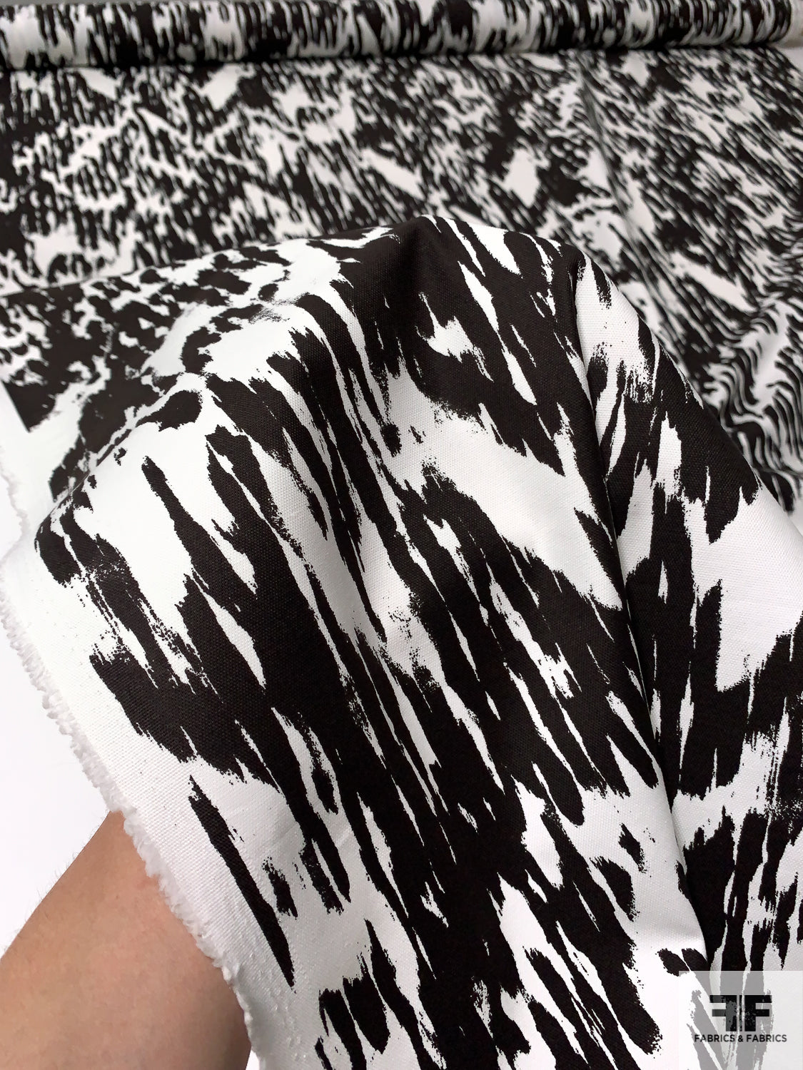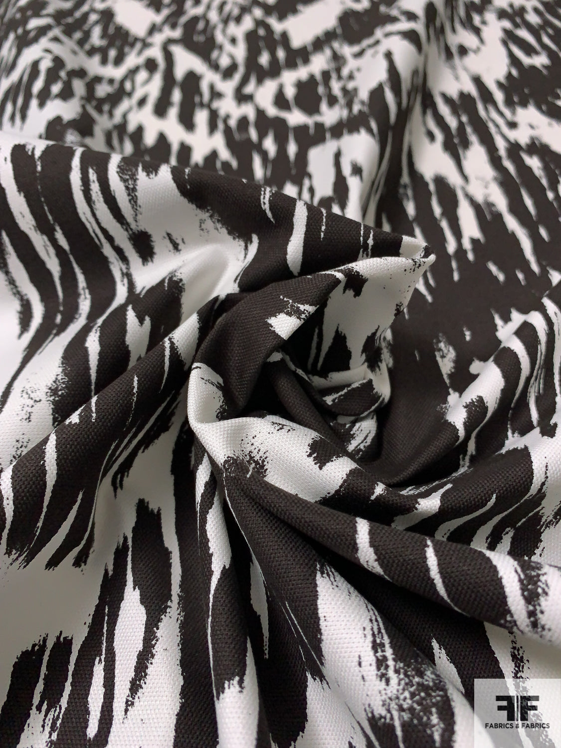 Abstract Streaks Lightweight Printed Cotton Canvas - Darkest Espresso / Off-White