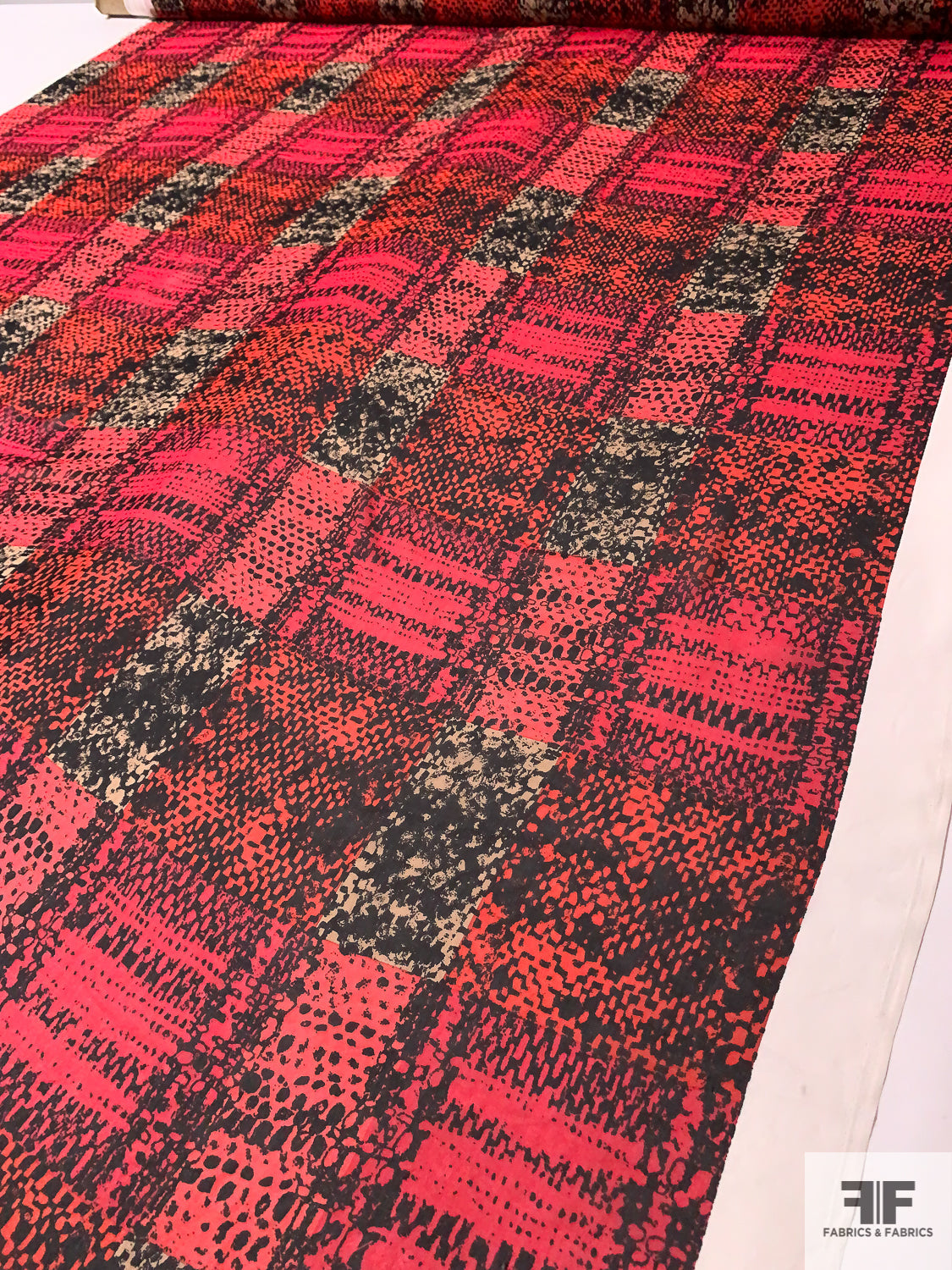 Artsy Abstract Plaid Printed Silk Chiffon - Red / Berry / Pink / Beige / Black