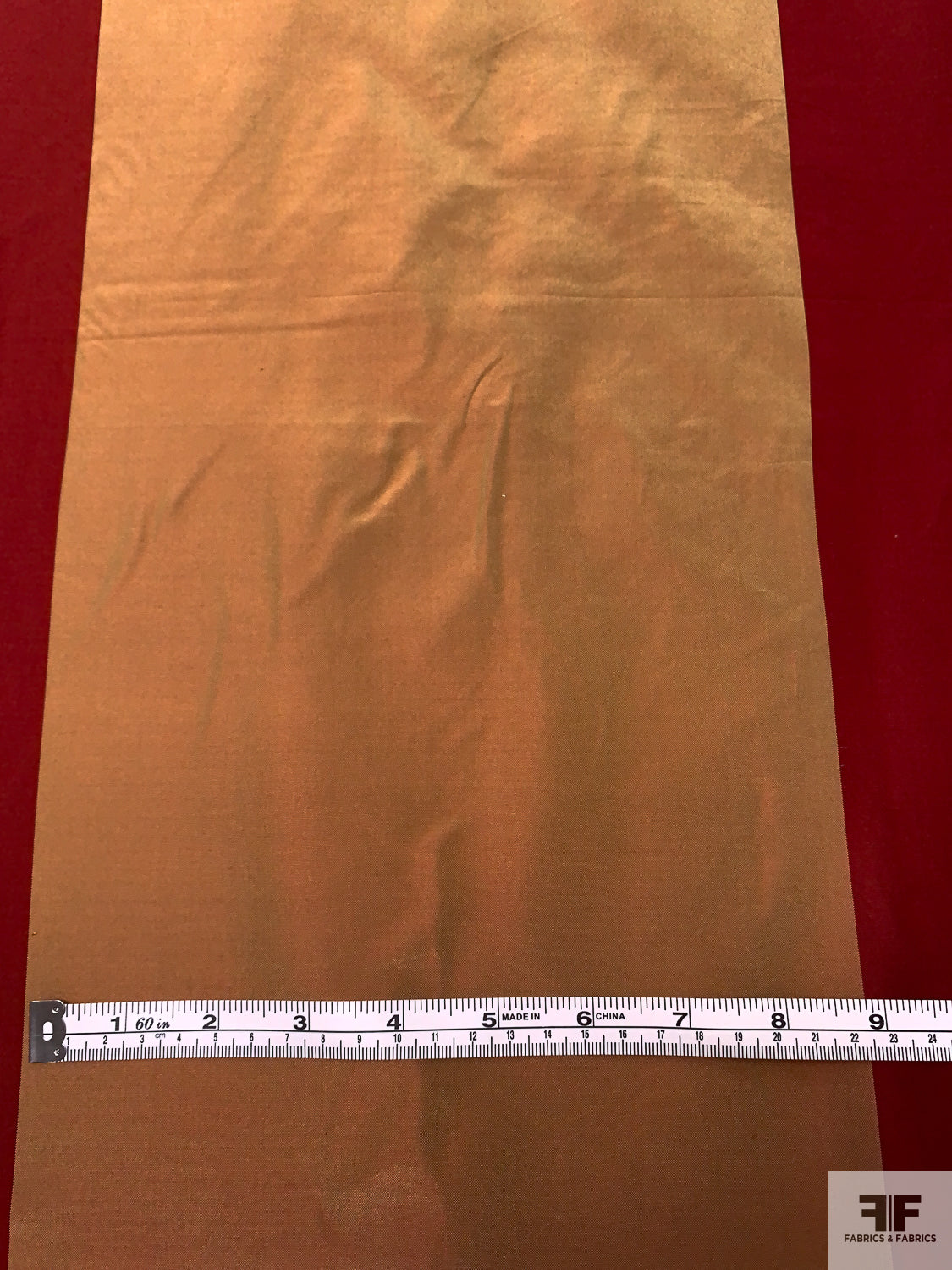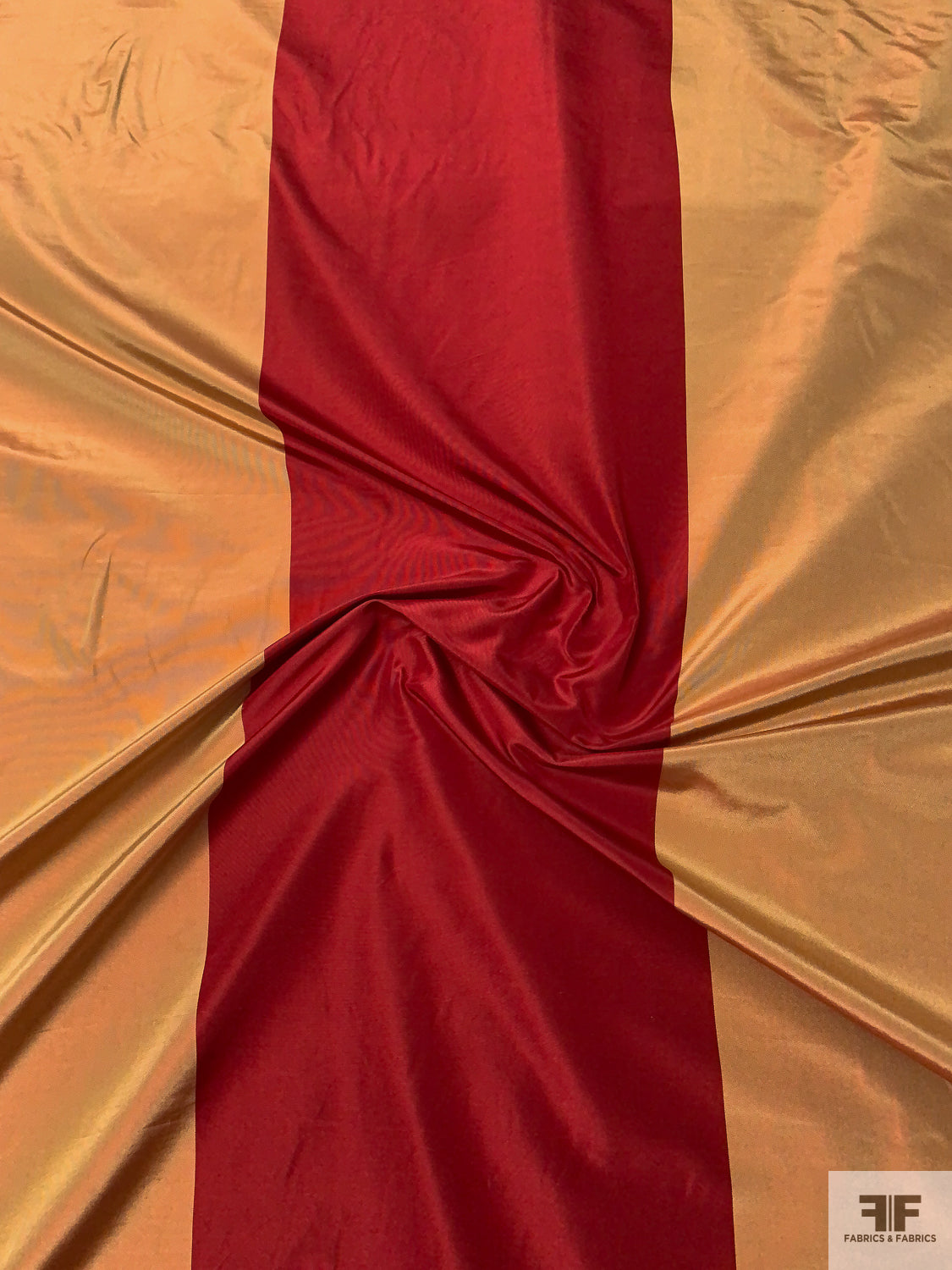 Bold Vertical Striped Yarn-Dyed Silk Taffeta - Crimson Red / Tan Gold