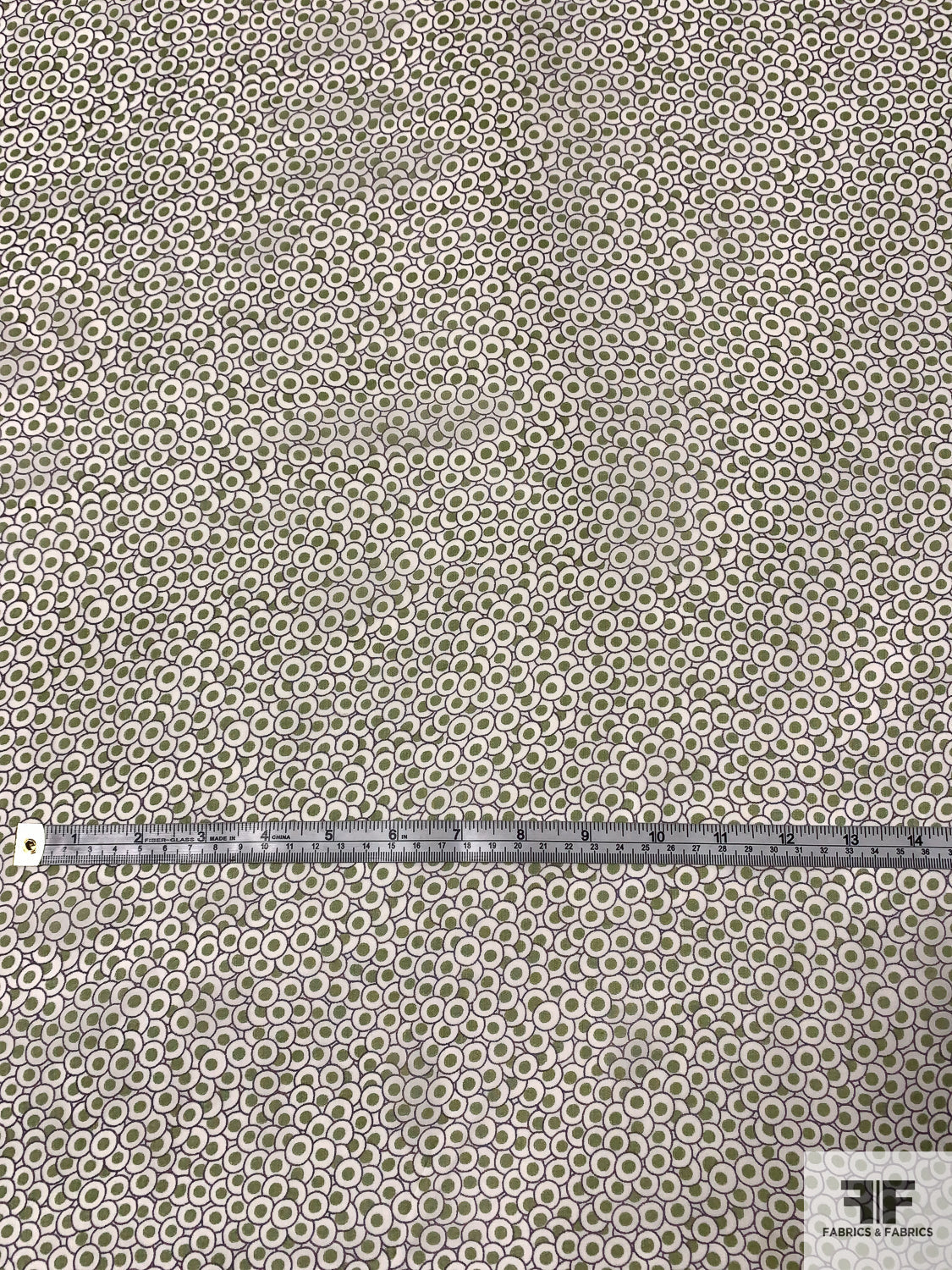 Circle Bubble Clusters Printed Silk Chiffon - Olive / Purple / Off-White