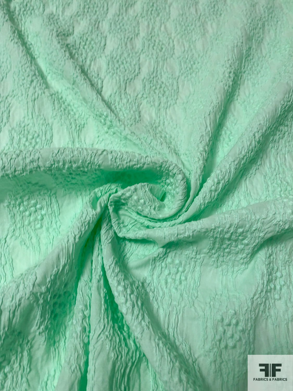 Circle Clusters Embroidered Popcorn-Look Cotton Voile - Seafoam