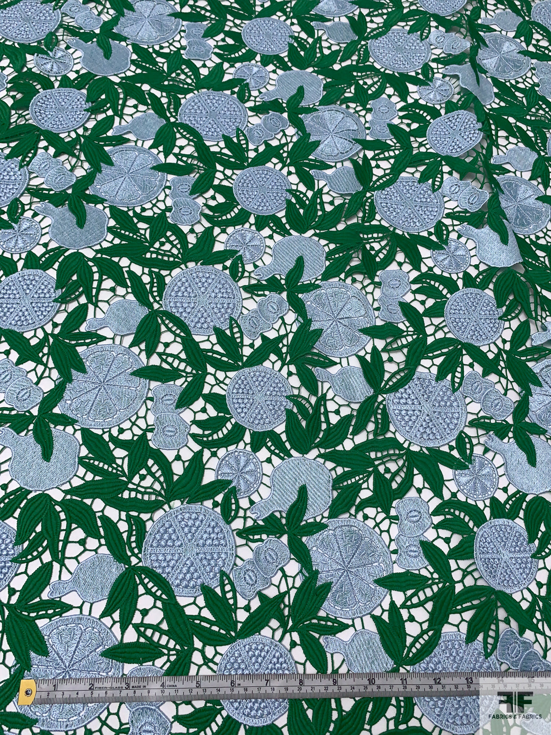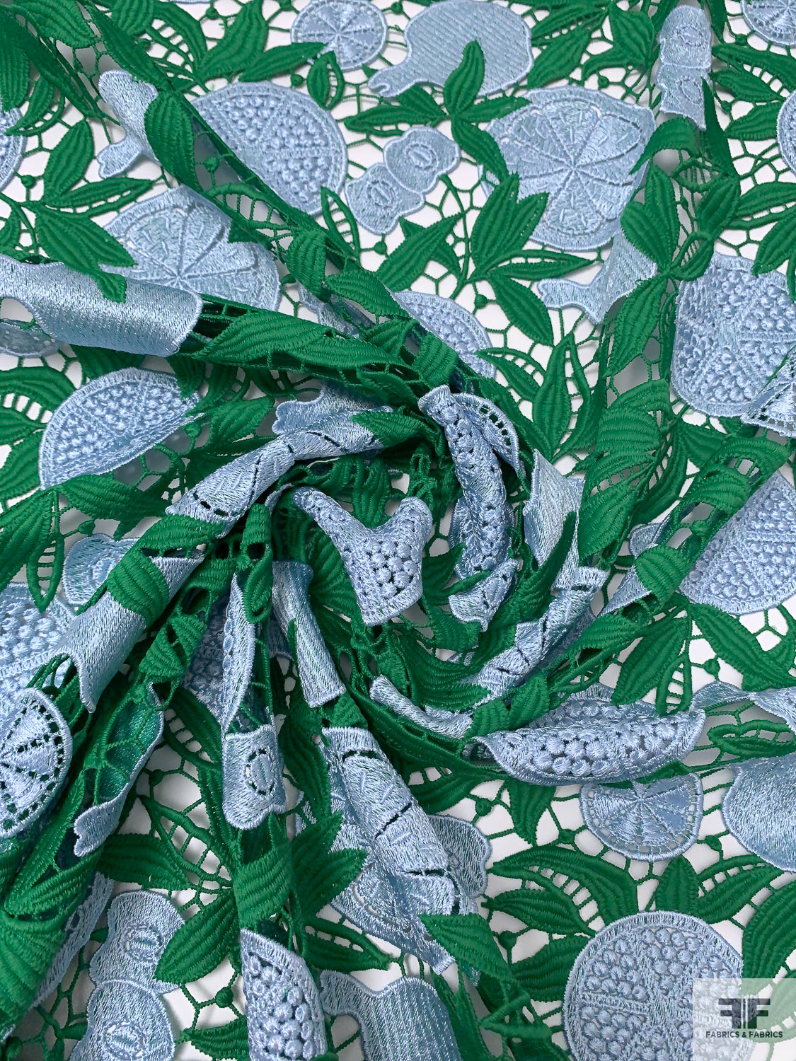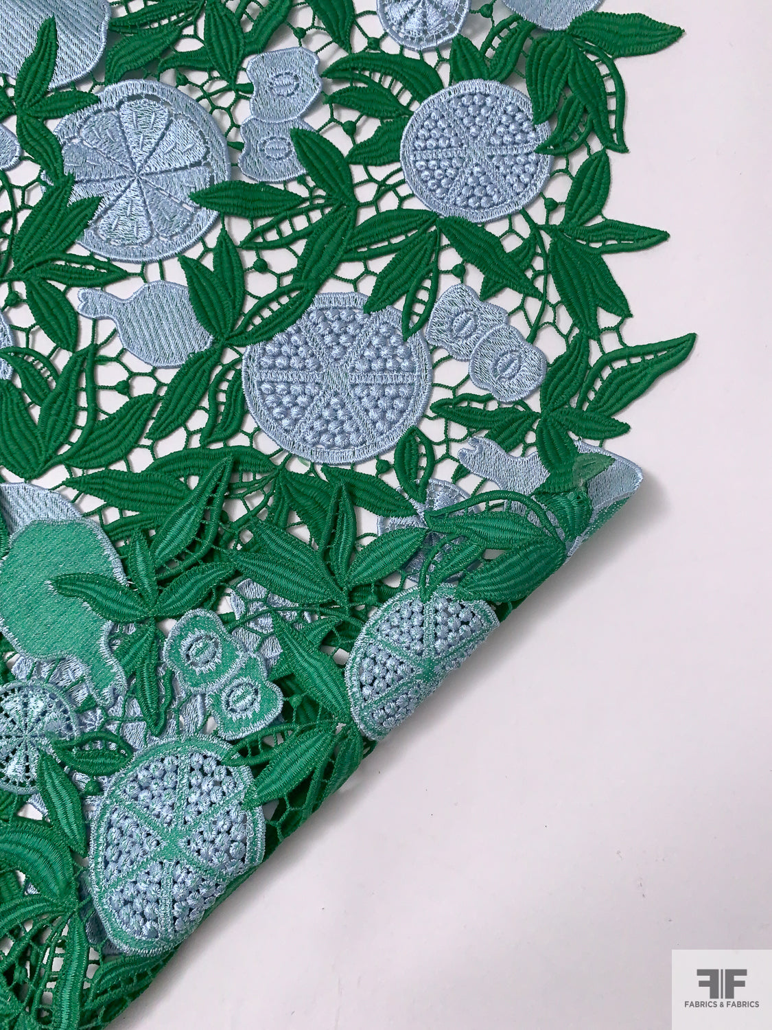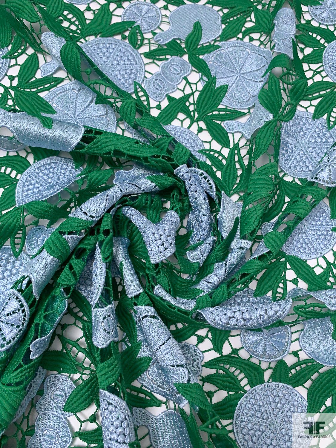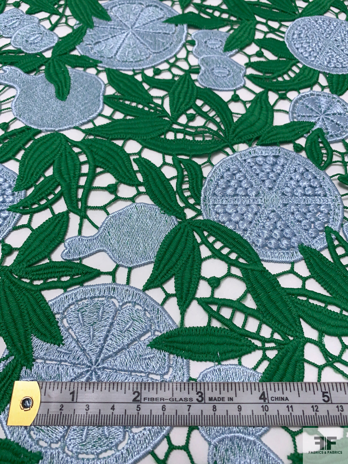 Citrus Motif Guipure Lace - Green / Sky Blue