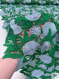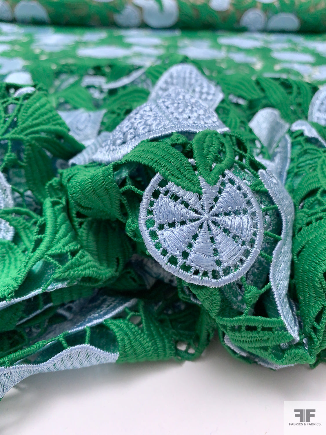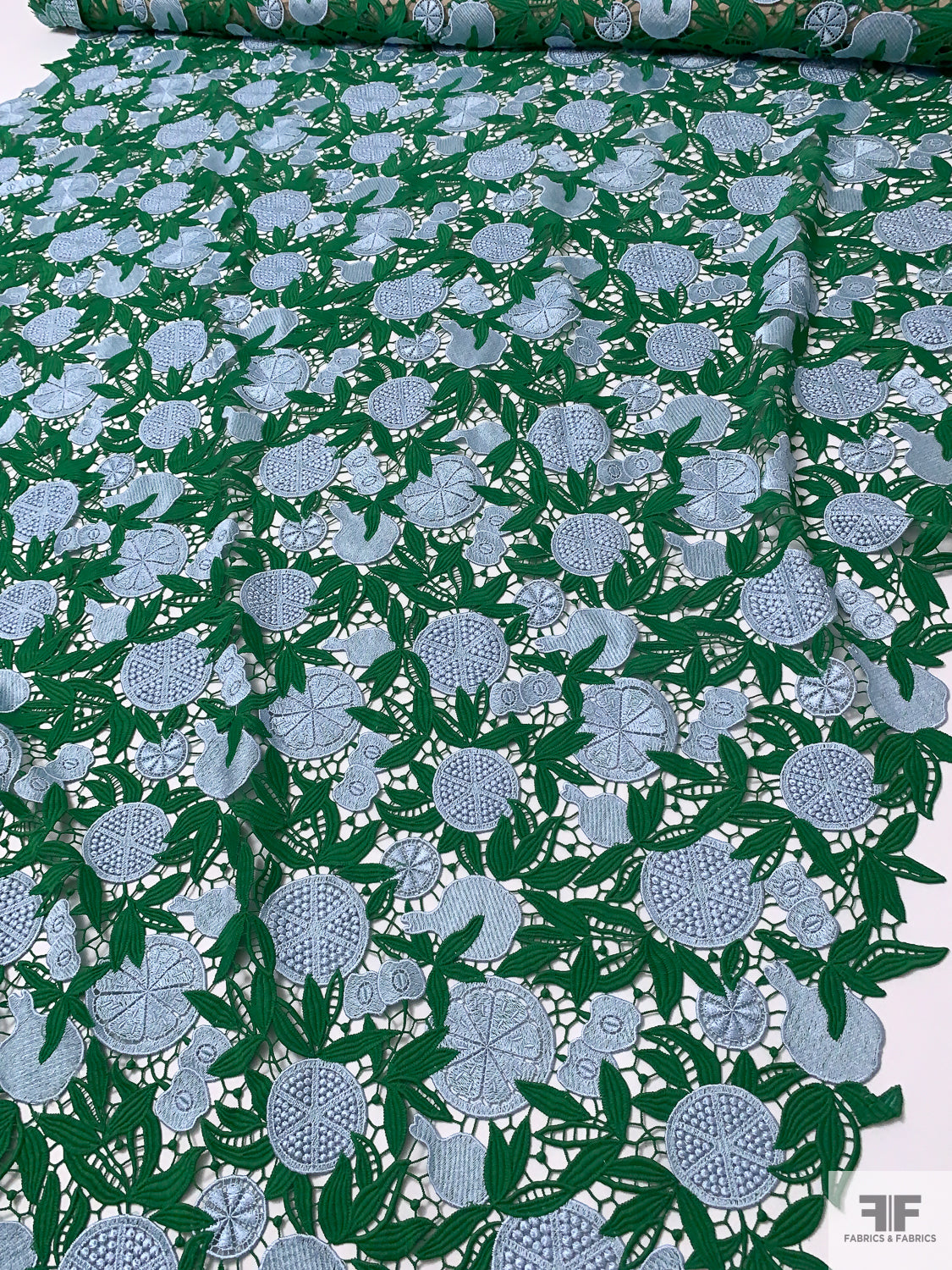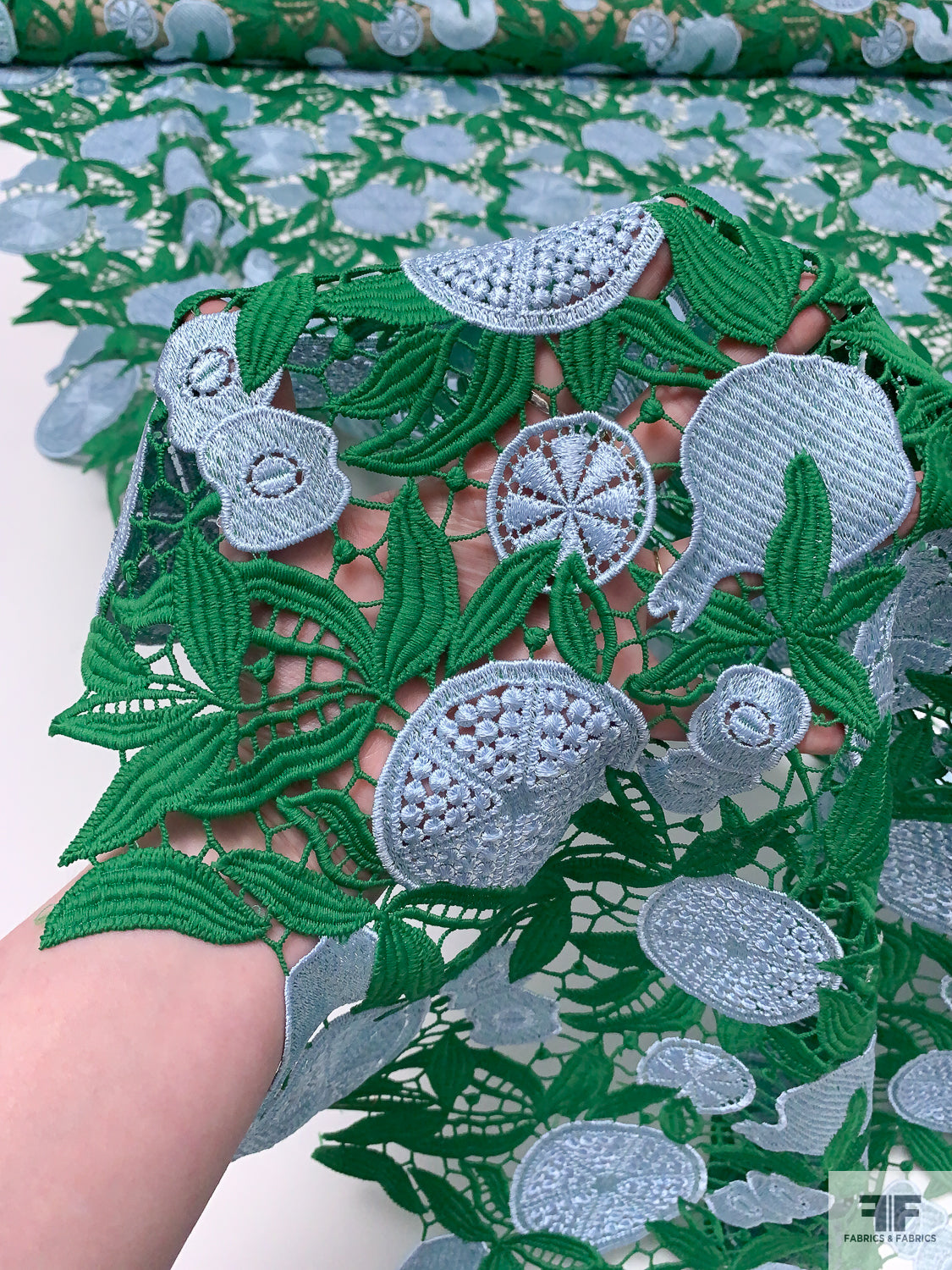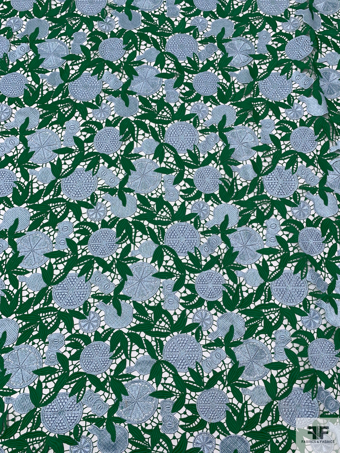 Citrus Motif Guipure Lace - Green / Sky Blue
