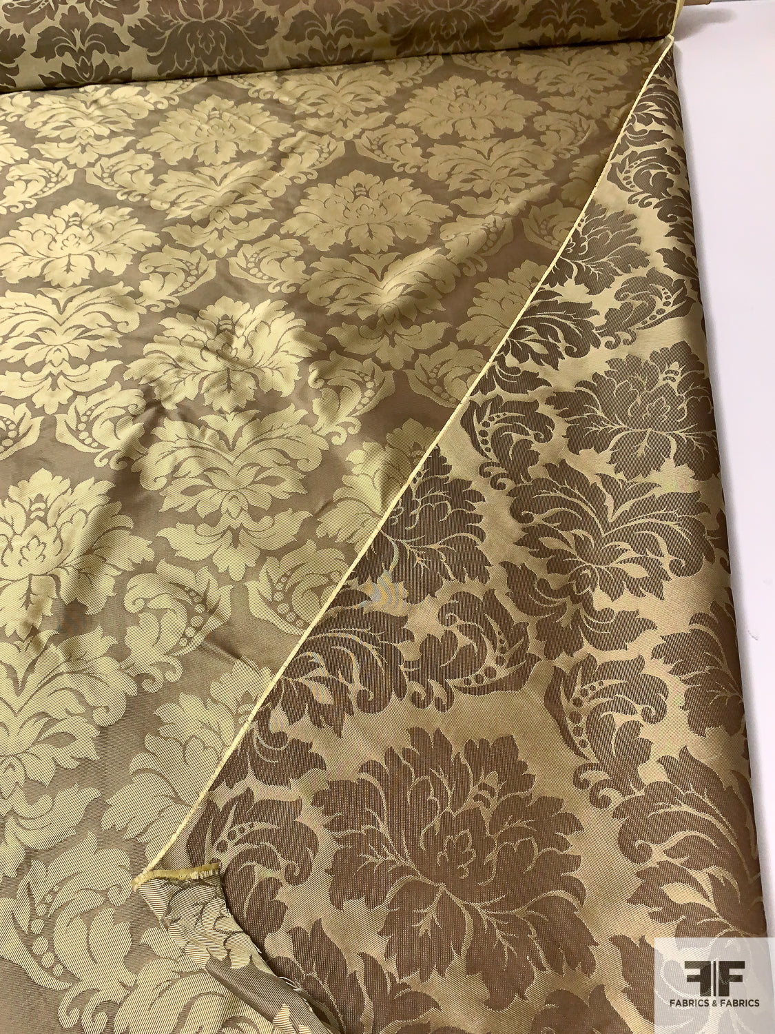 Damask Jacquard Silk Brocade - Antique Gold / Tan Brown
