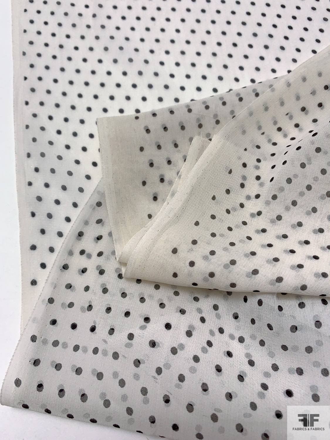 Ditsy Polka Dot Printed Silk Chiffon - Ivory / Black