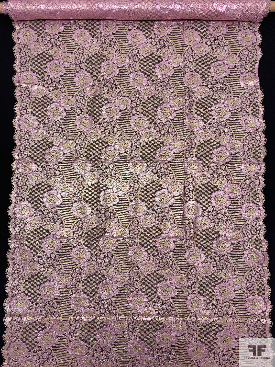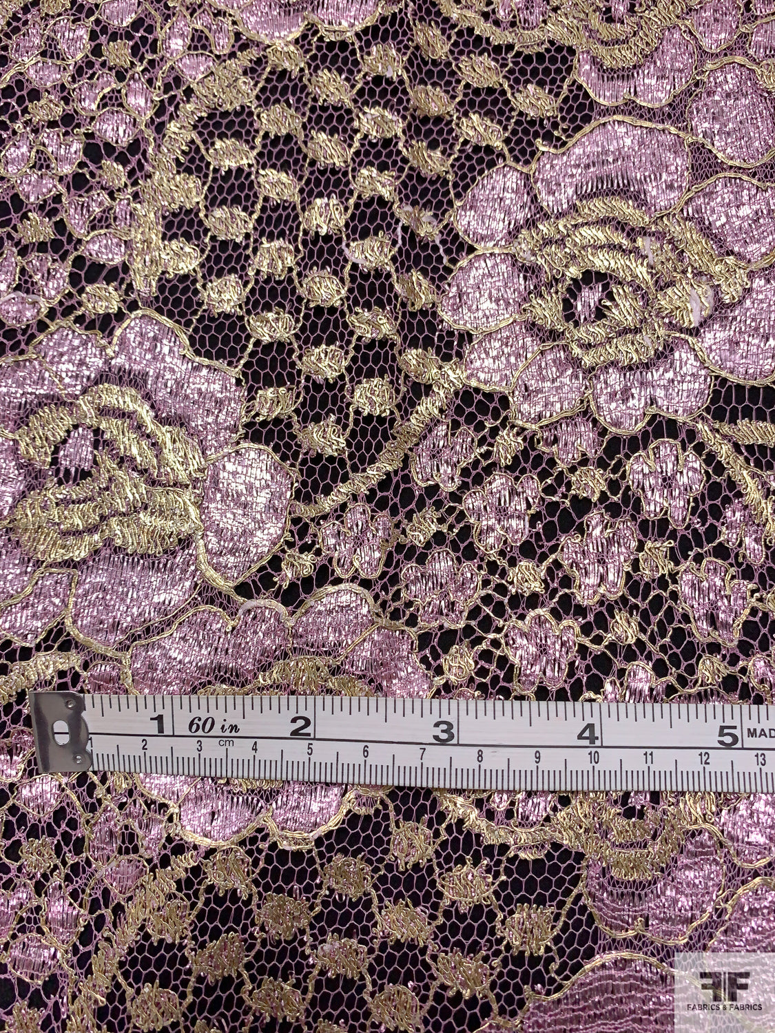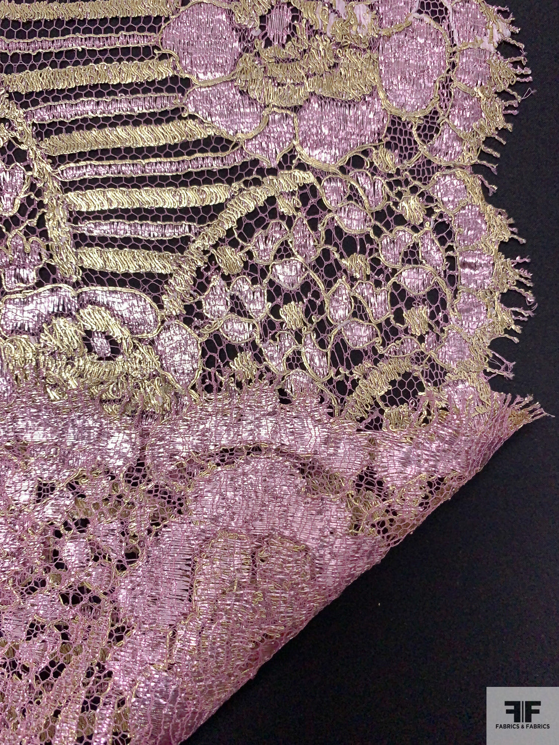 Double Scalloped Floral Metallic French Chantilly Lace - Metallic Lilac-Pink / Gold