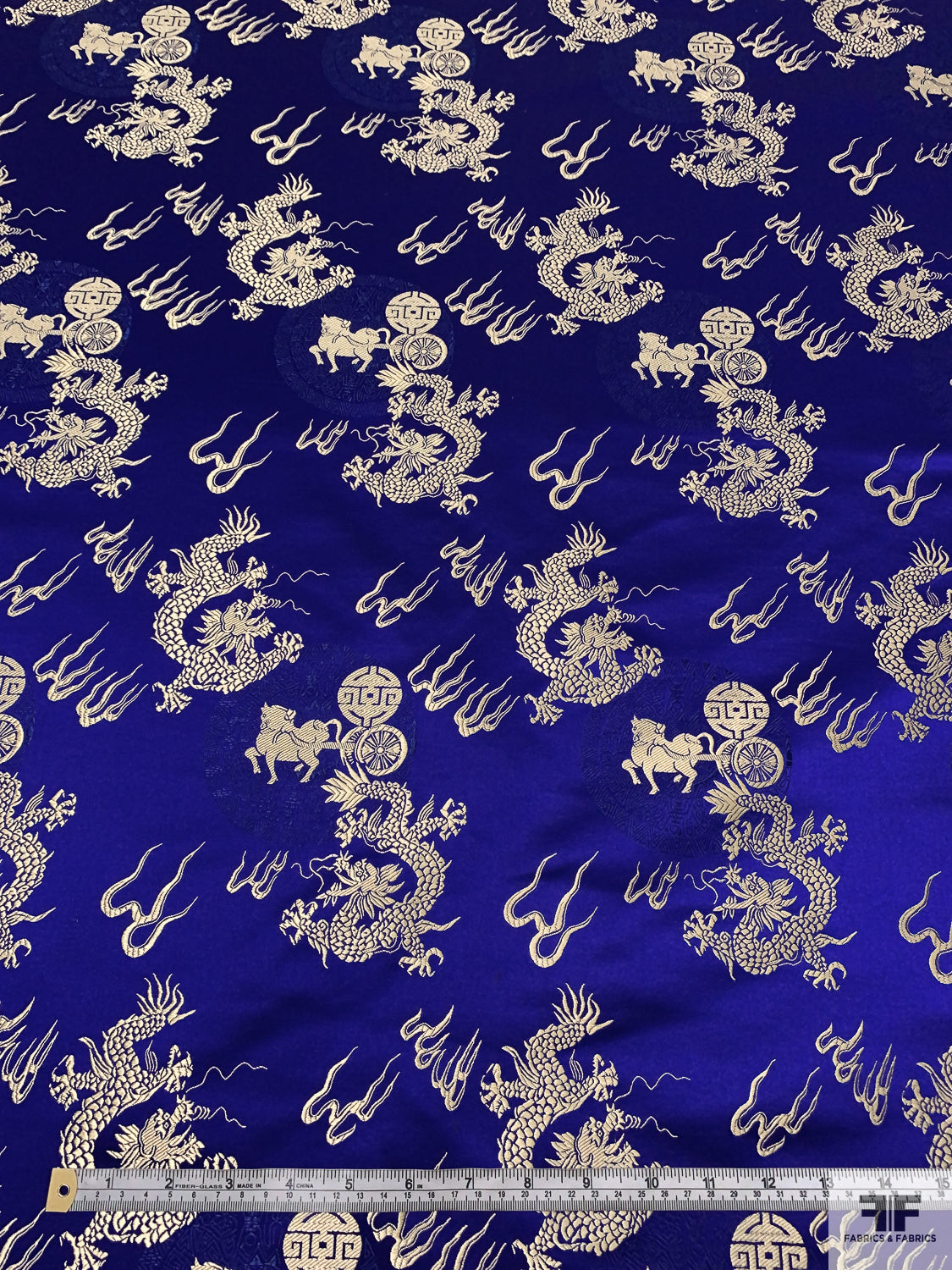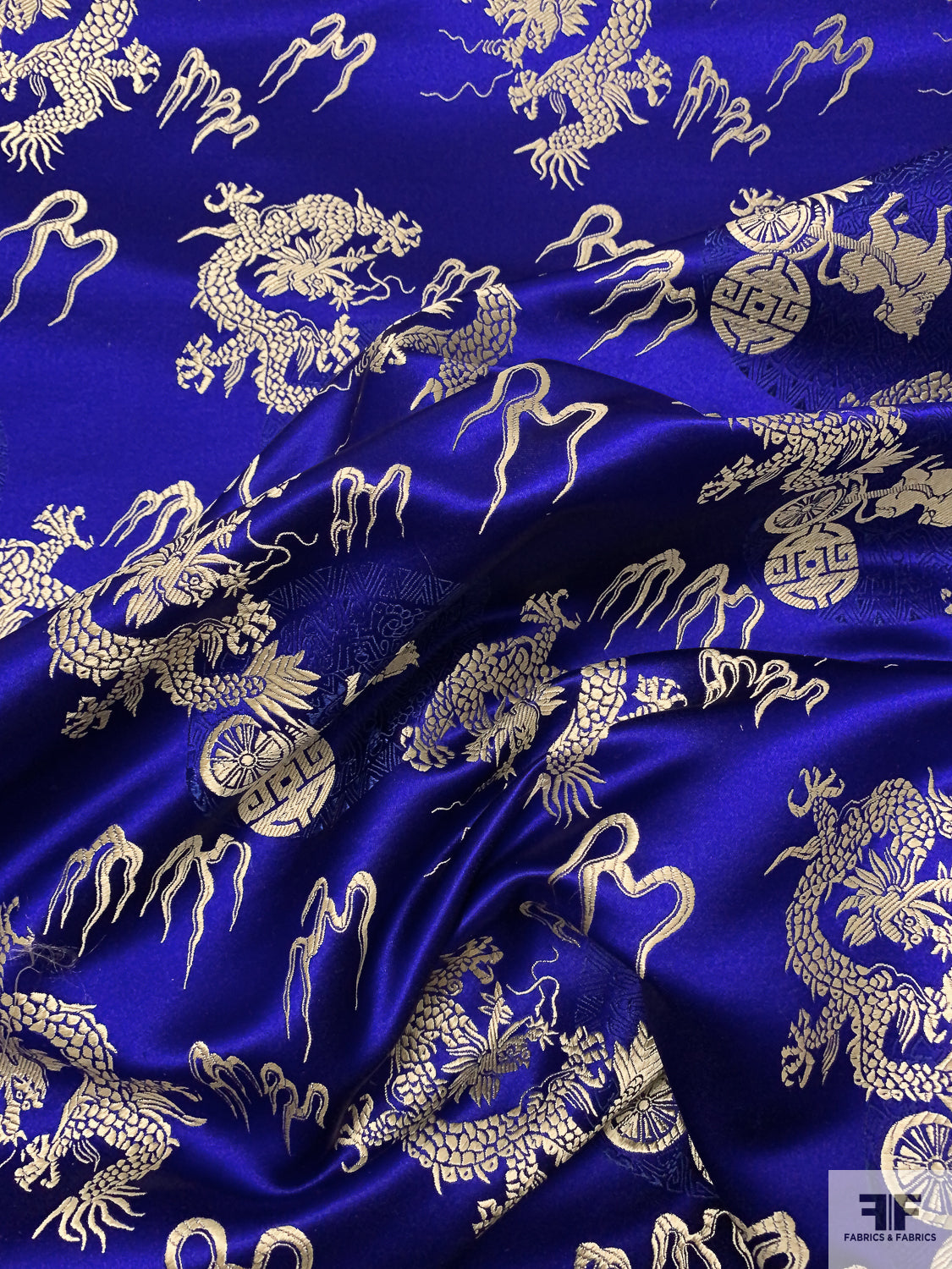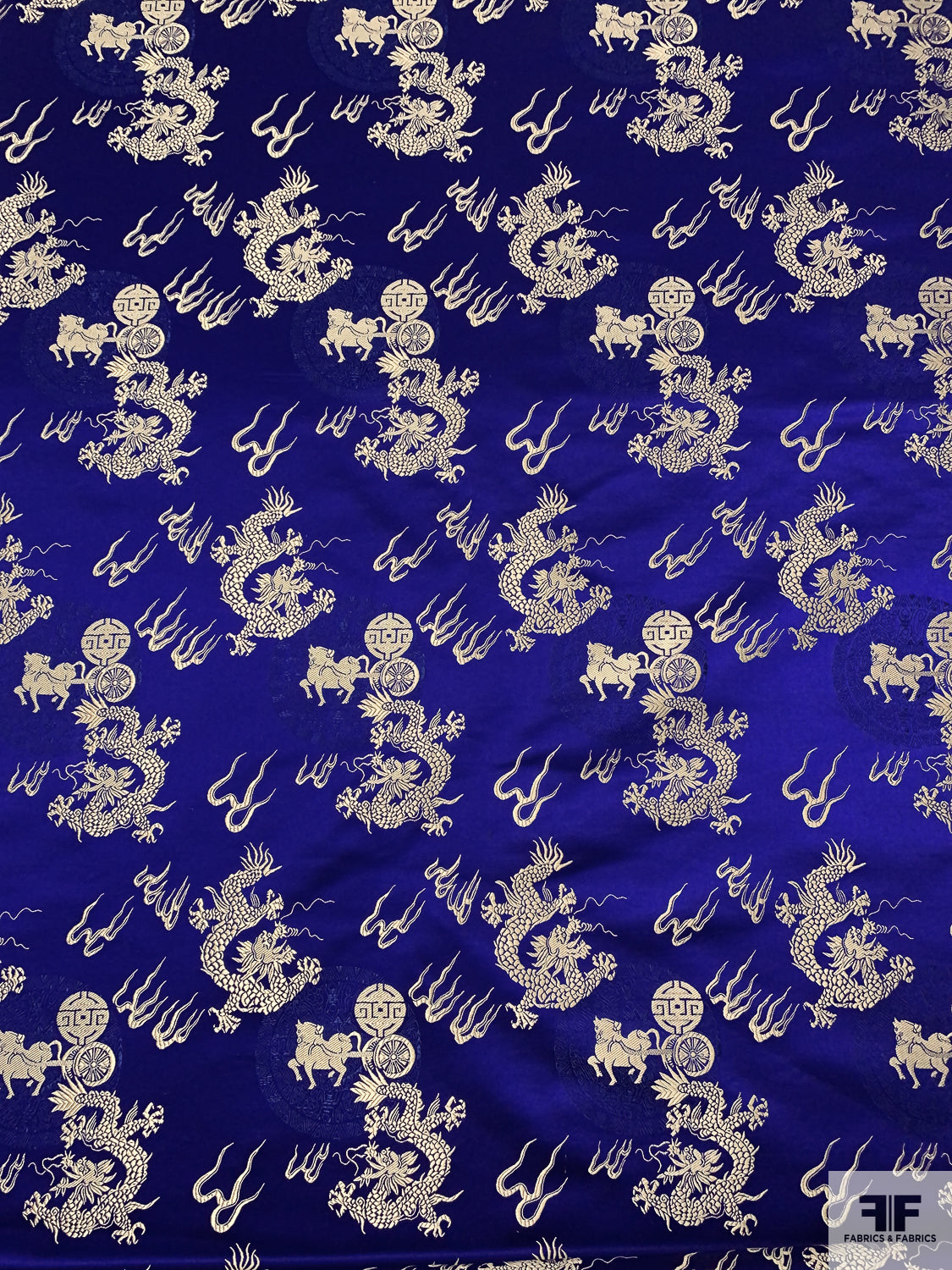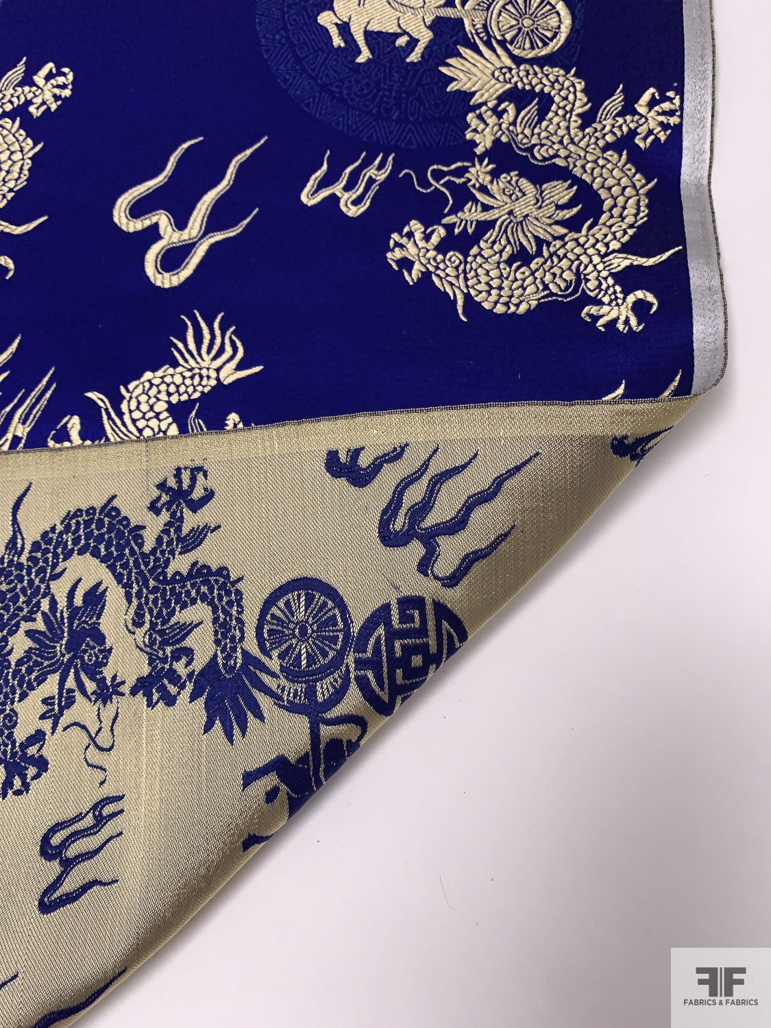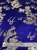 Dragon Motif Chinese Brocade - Indigo / Light Gold