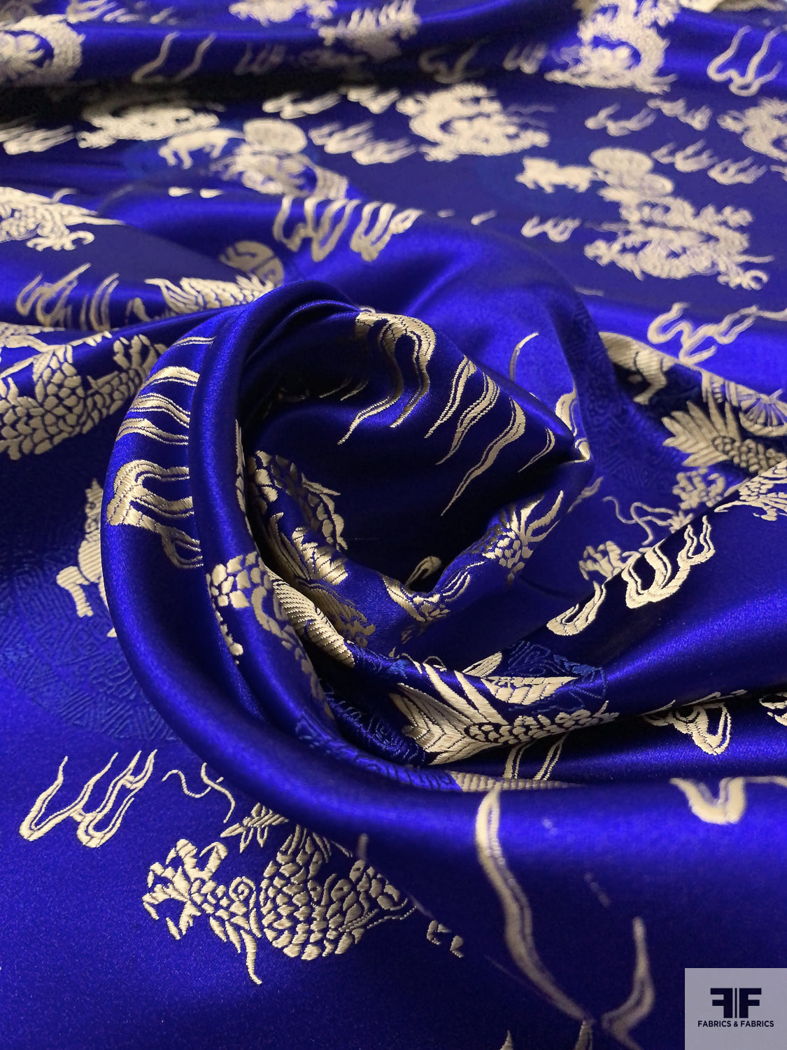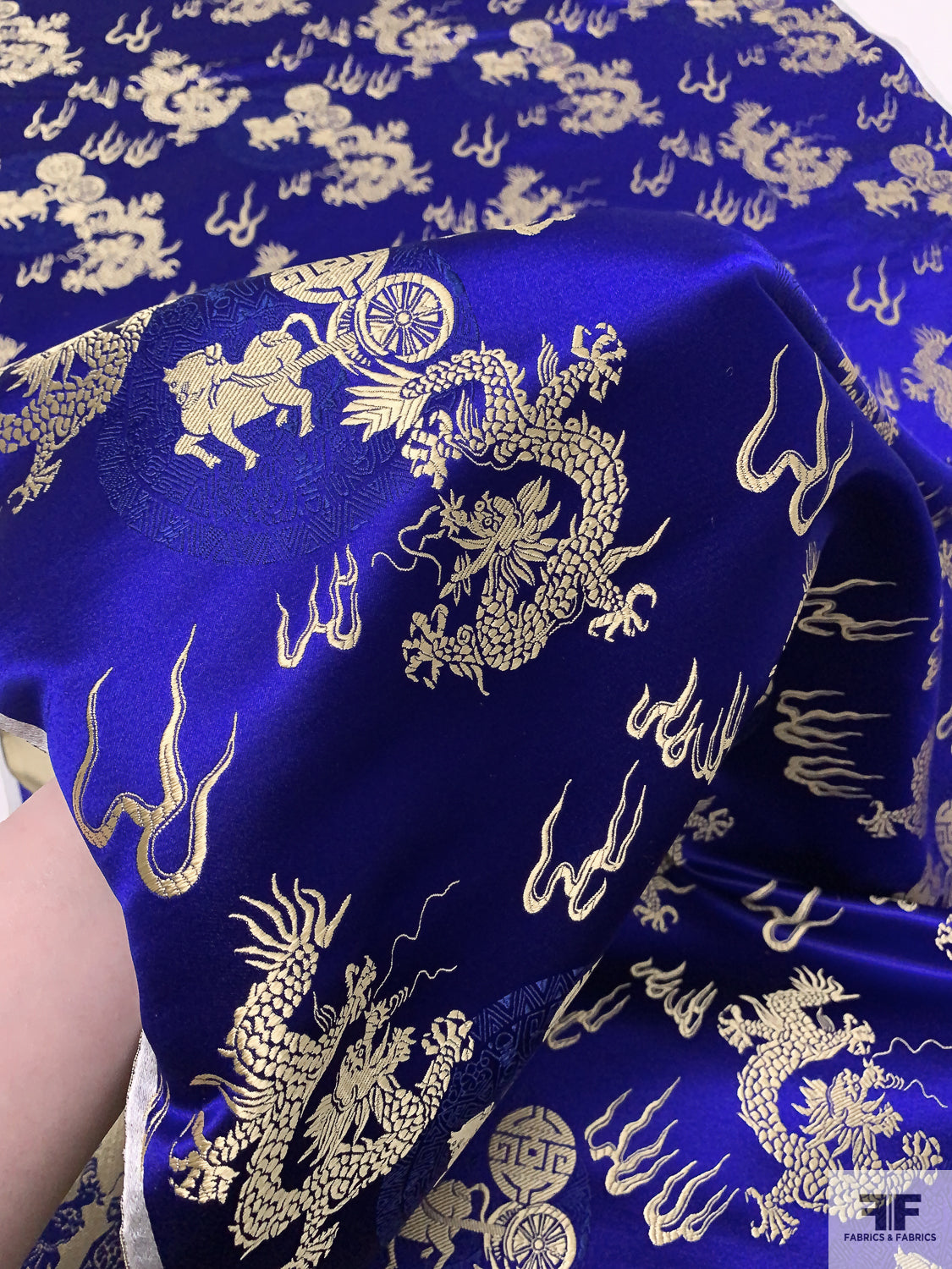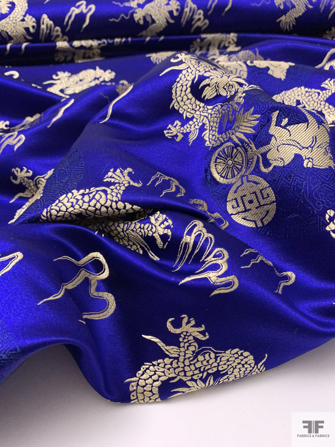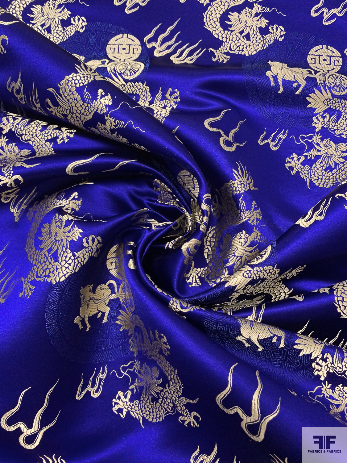 Dragon Motif Chinese Brocade - Indigo / Light Gold