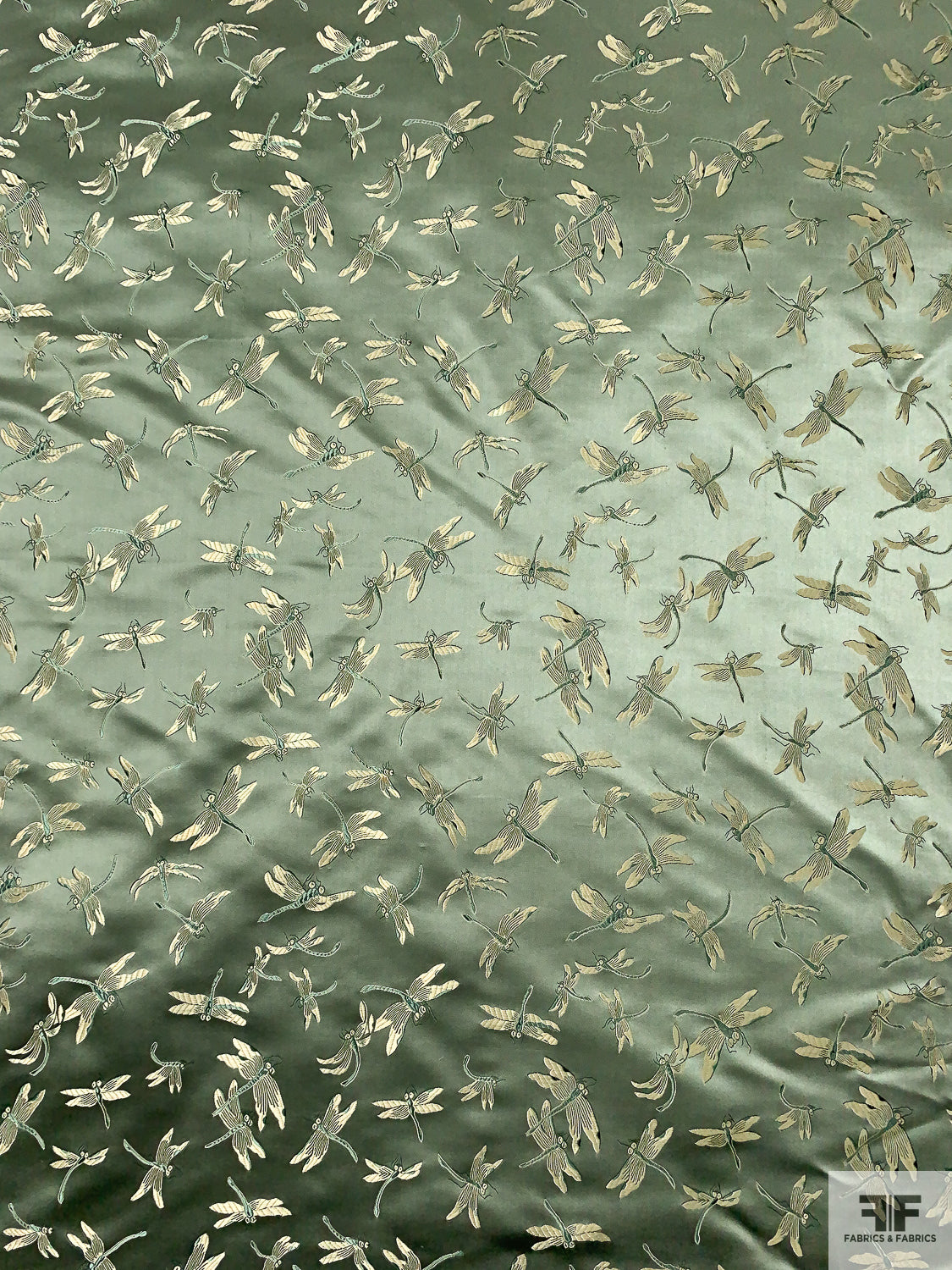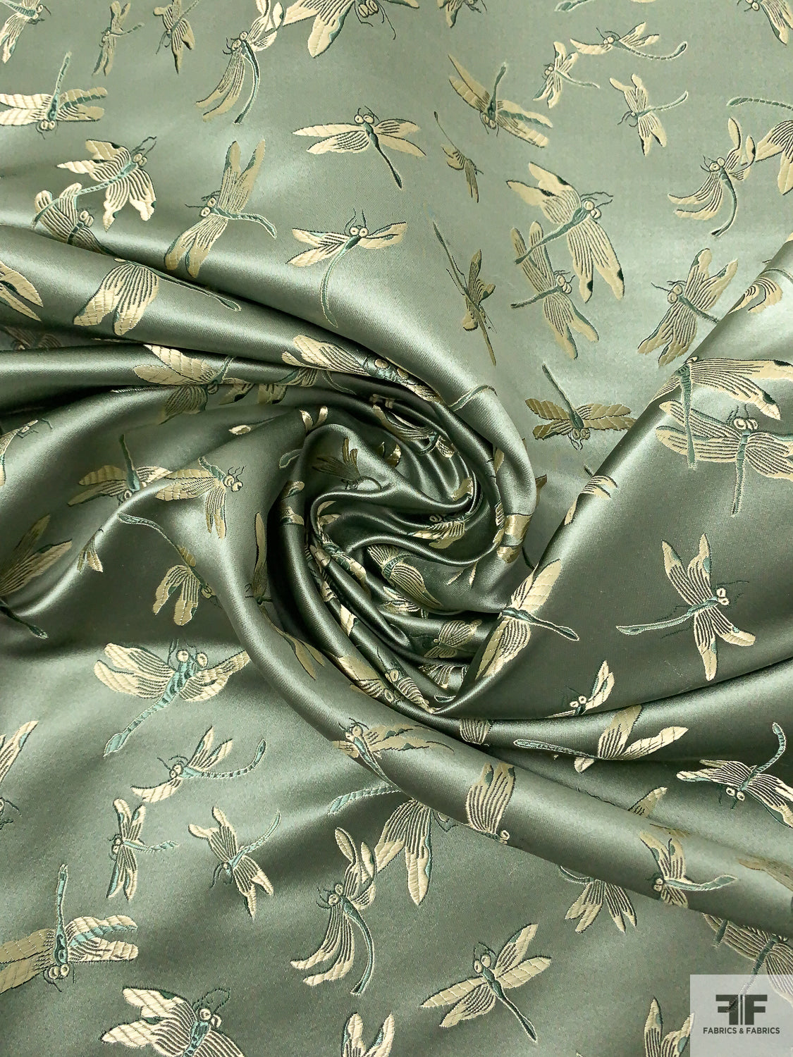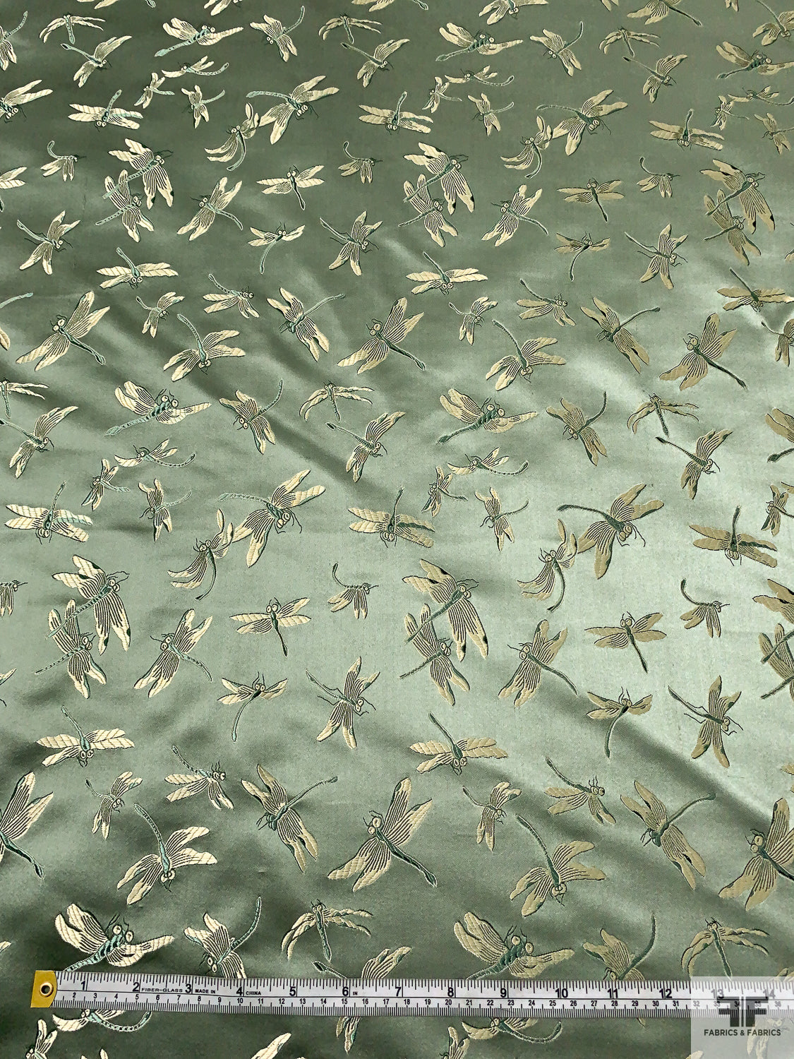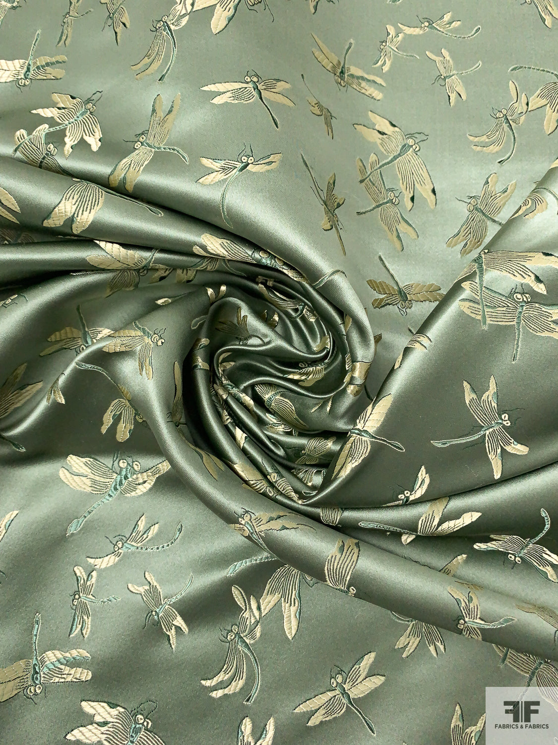 Dragonfly Chinese Brocade - Dark Sage / White-Gold