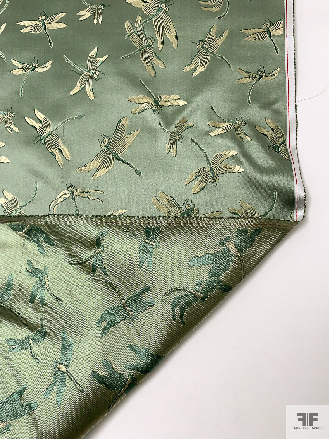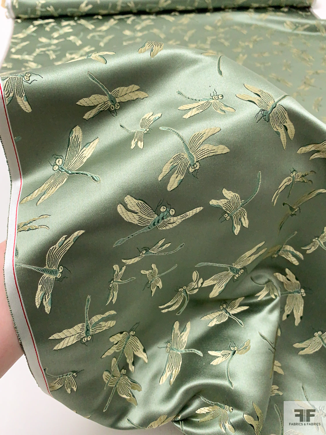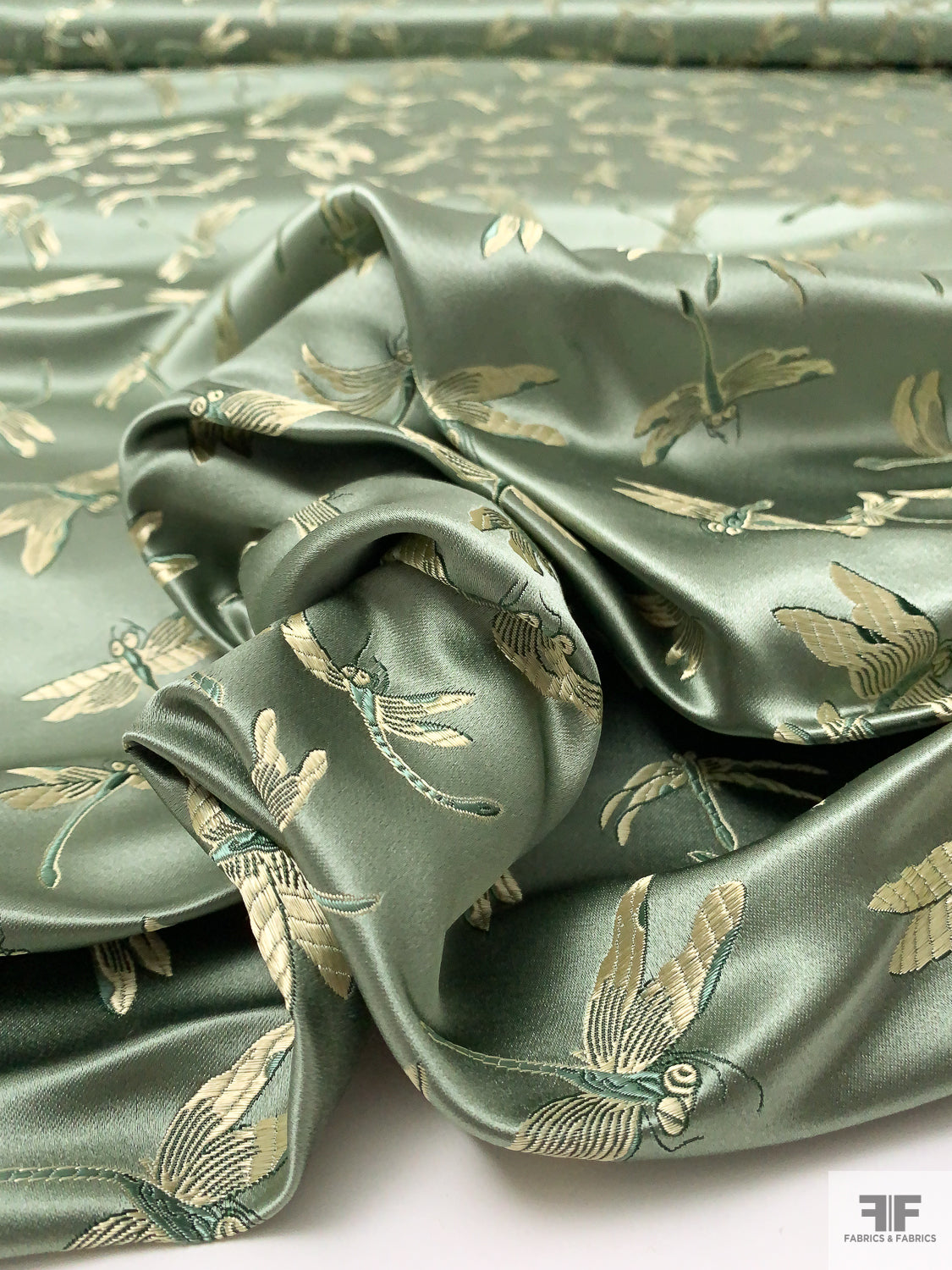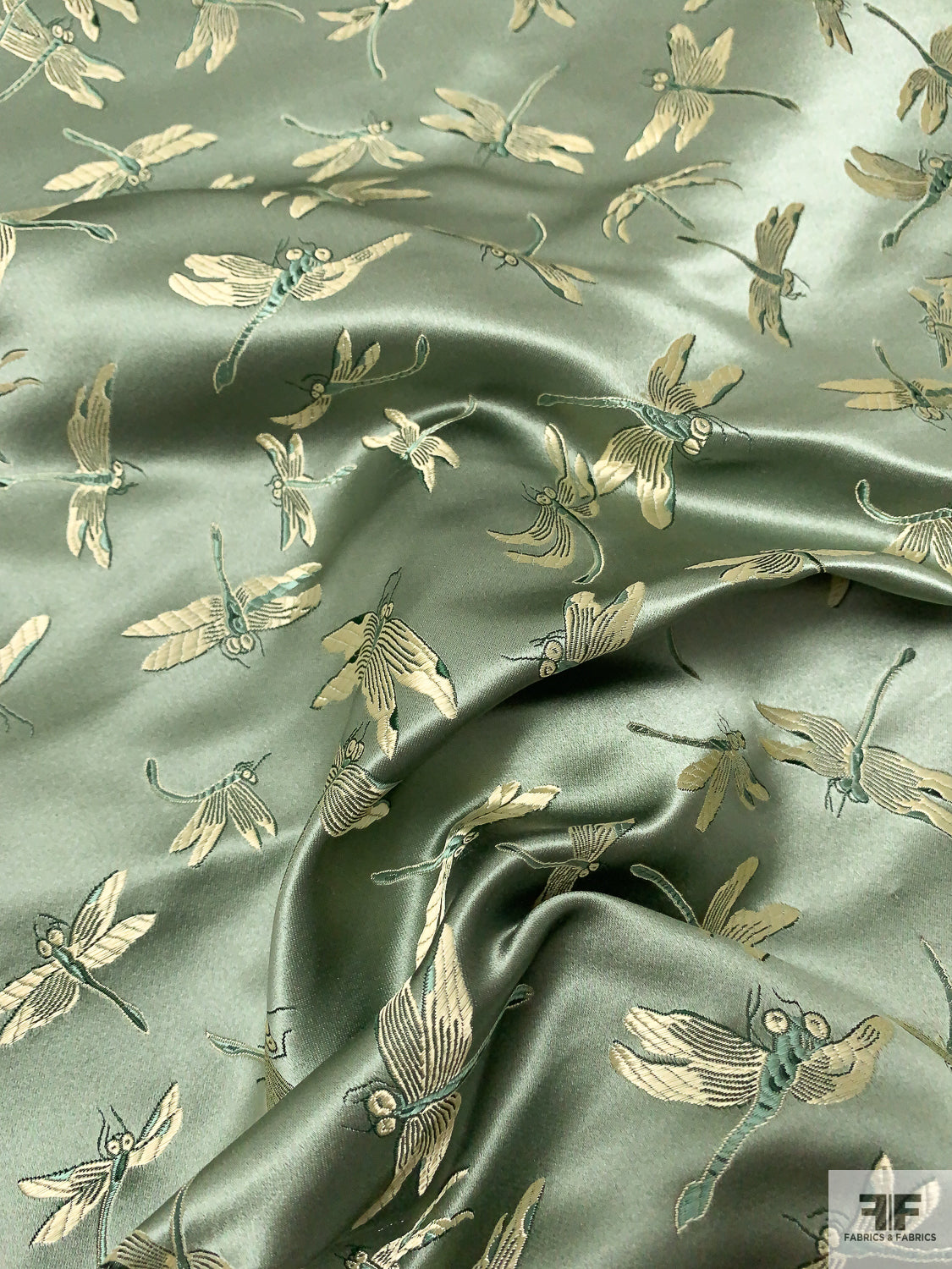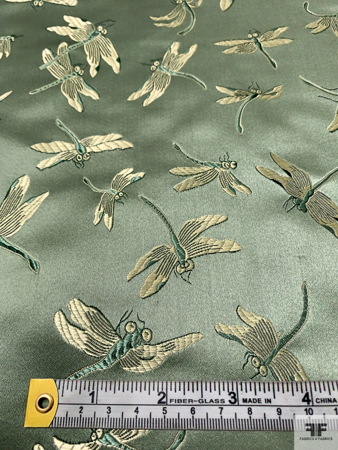 Dragonfly Chinese Brocade - Dark Sage / White-Gold