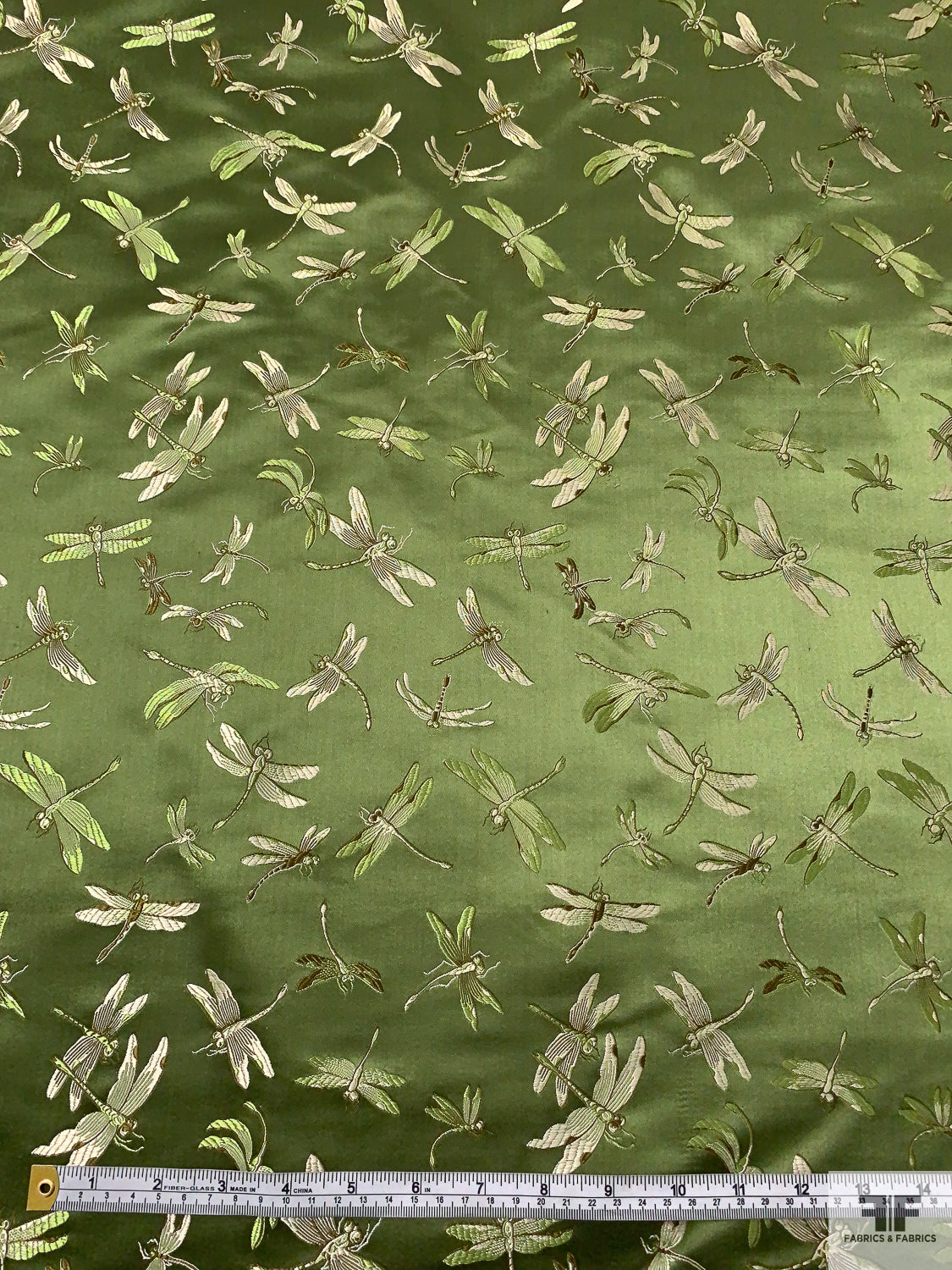 Dragonfly Chinese Brocade - Moss Green / Smokey Taupe / Brown