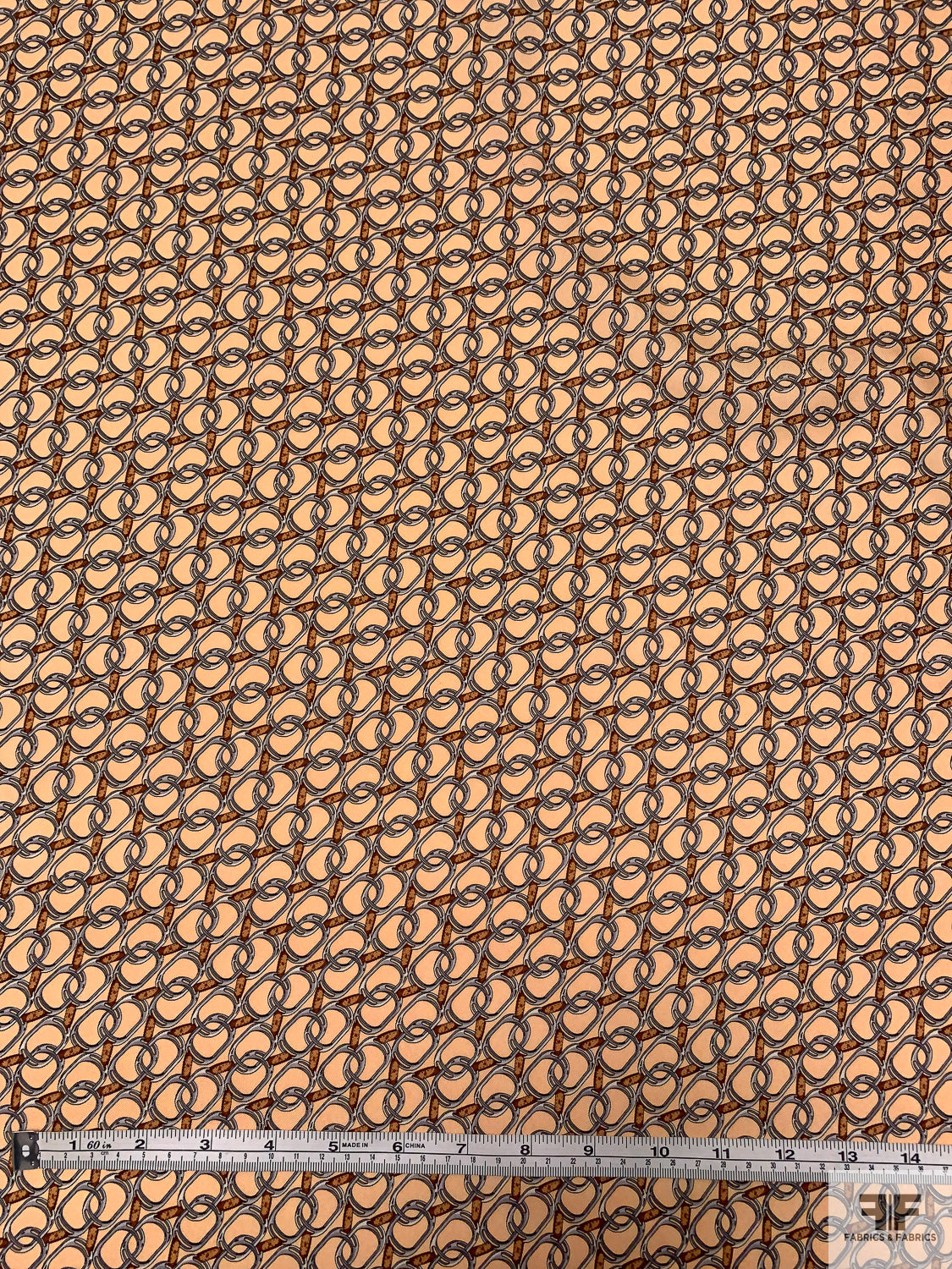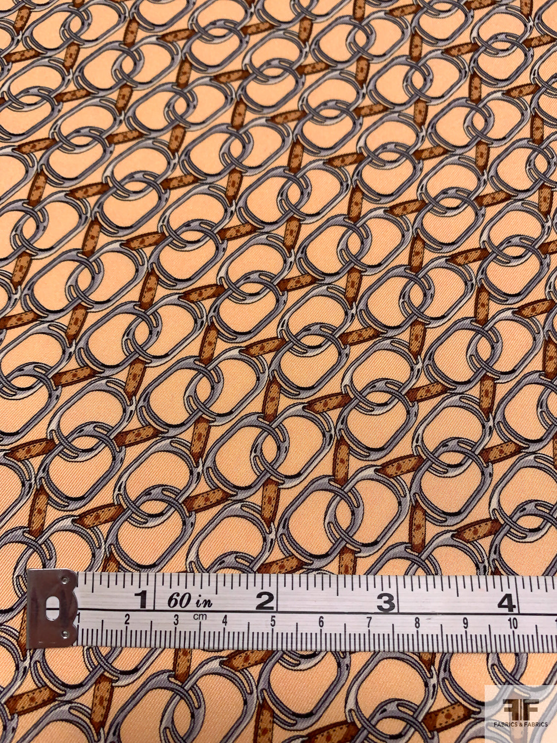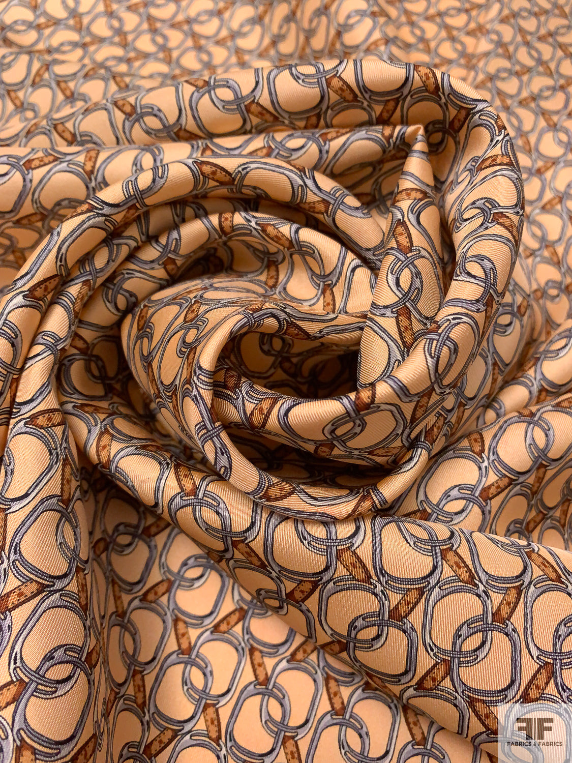 Equestrian Tack Printed Fine Silk Twill Pre-Cut Panel - Peach / Grey