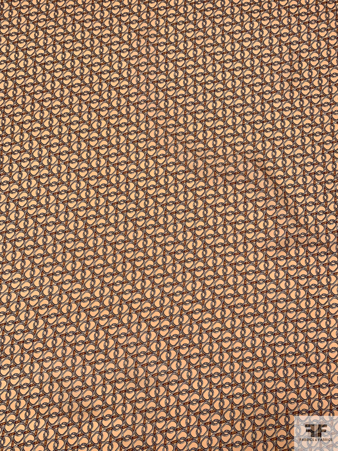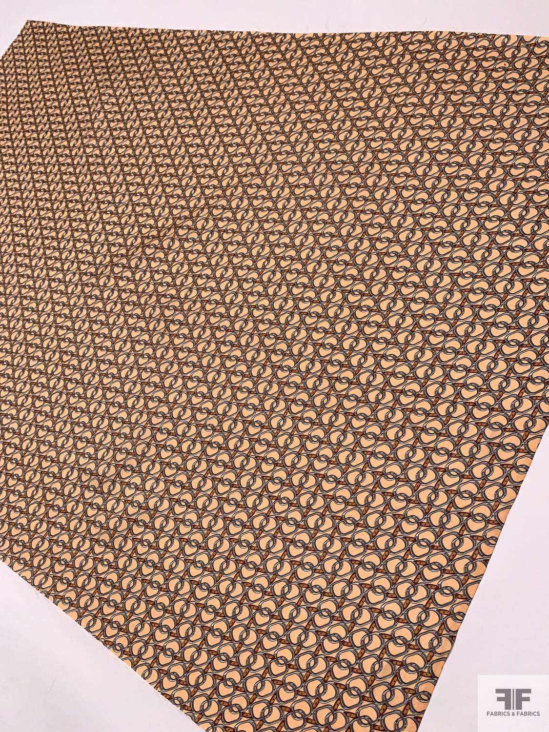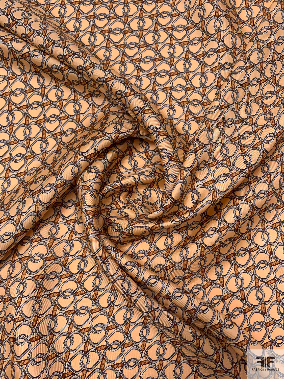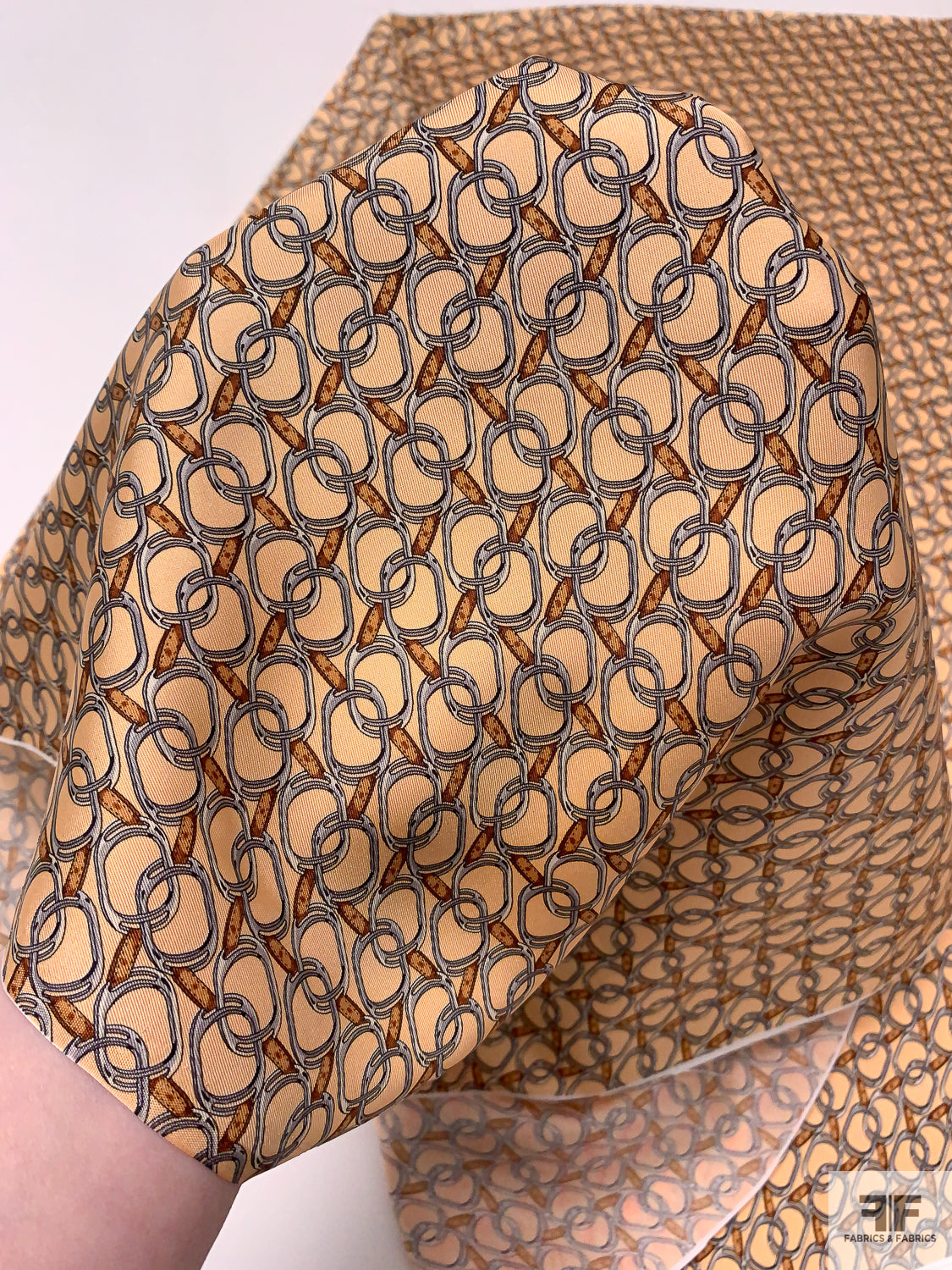 Equestrian Tack Printed Fine Silk Twill Pre-Cut Panel - Peach / Grey