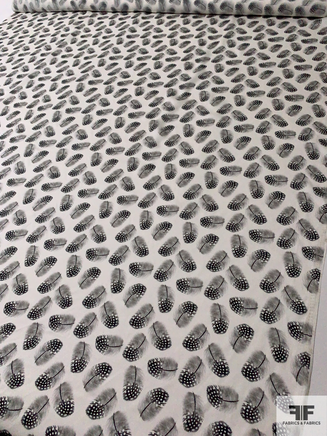 Prabal Gurung Feathery Leaf Printed Satin Silk Chiffon - Black / White / Grey