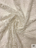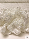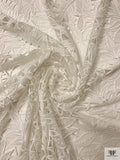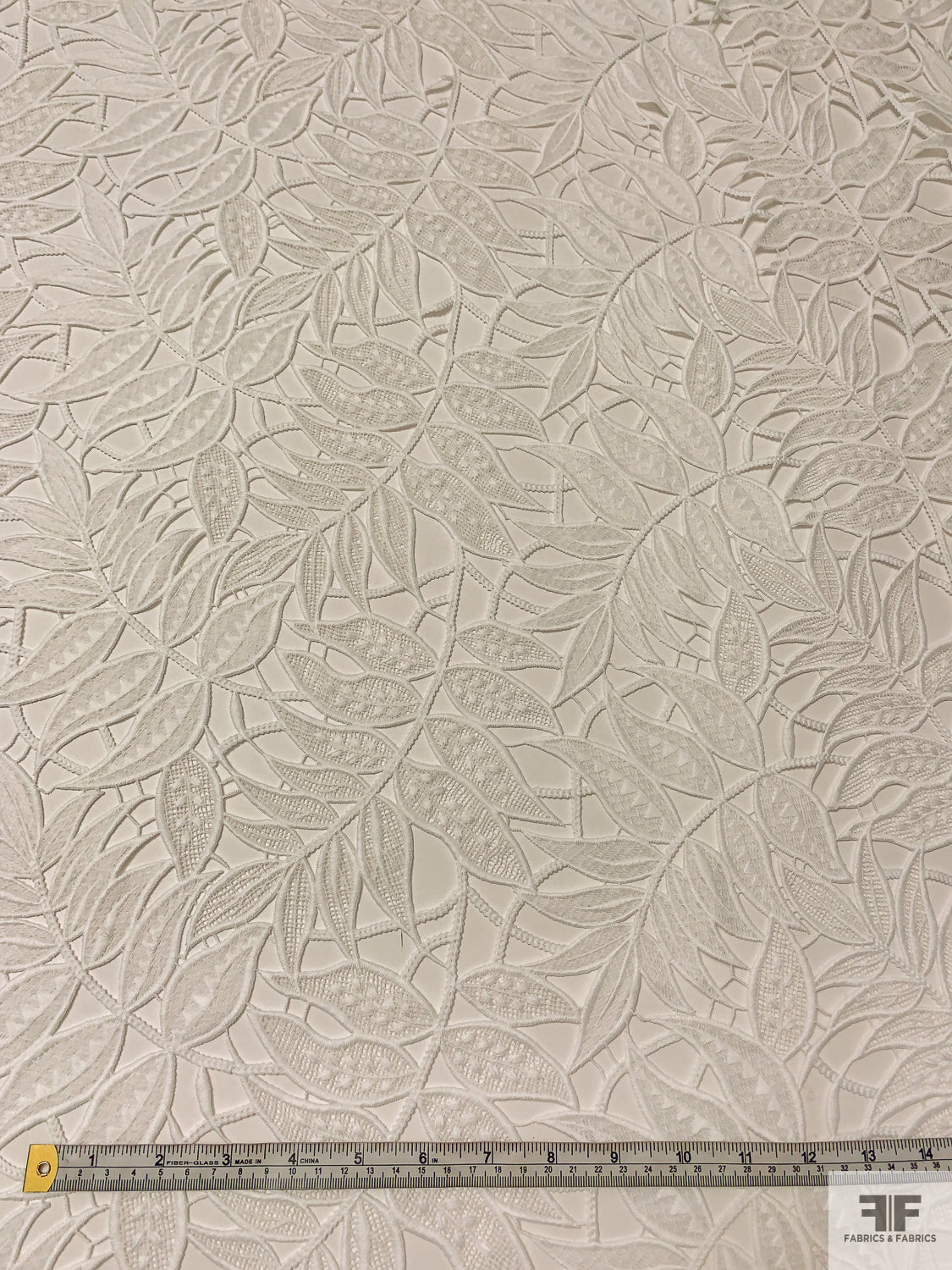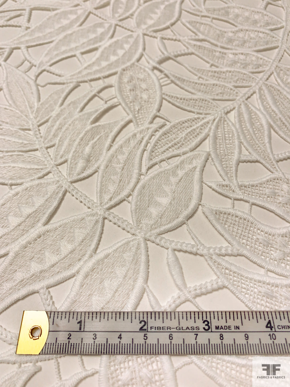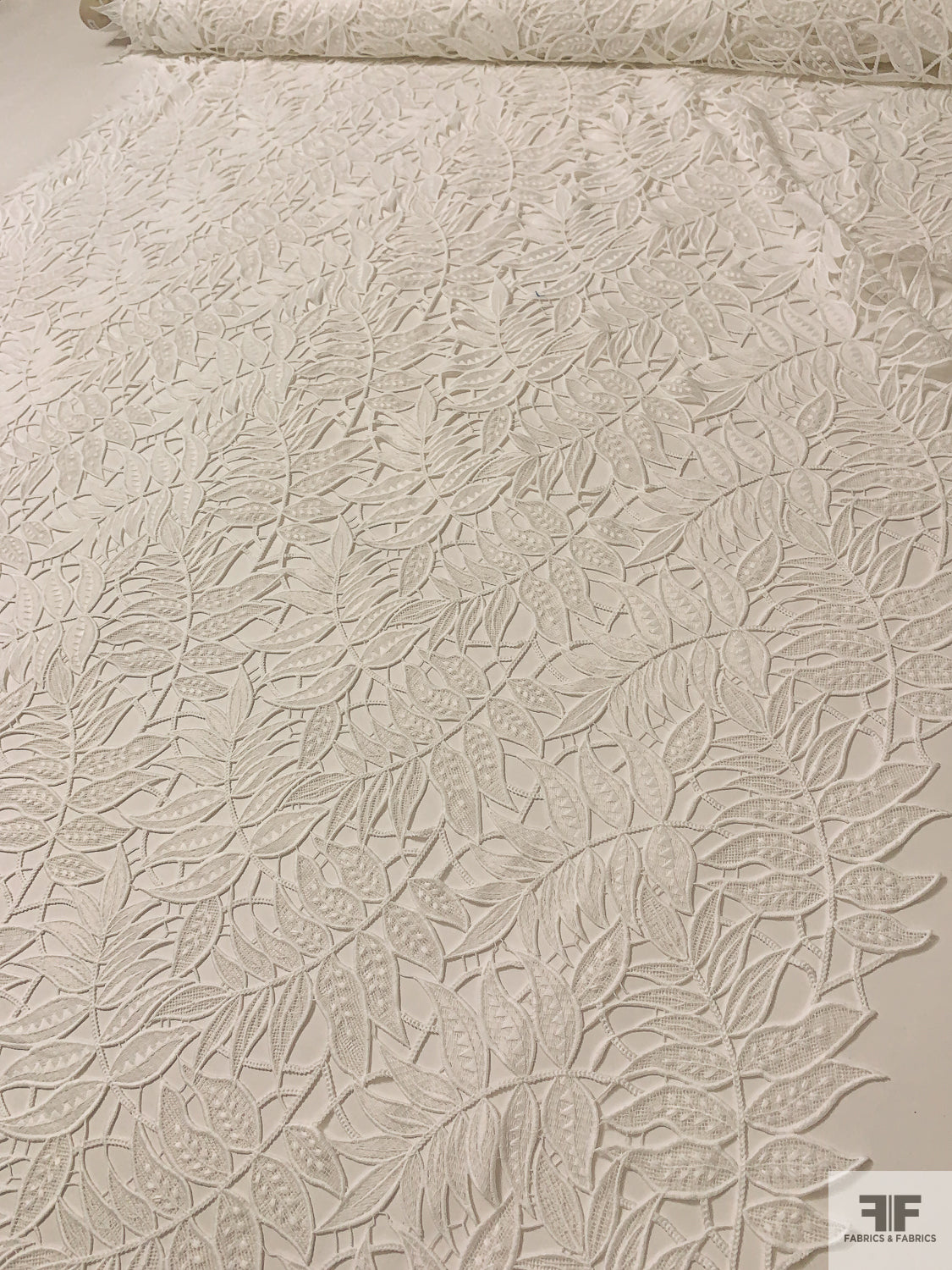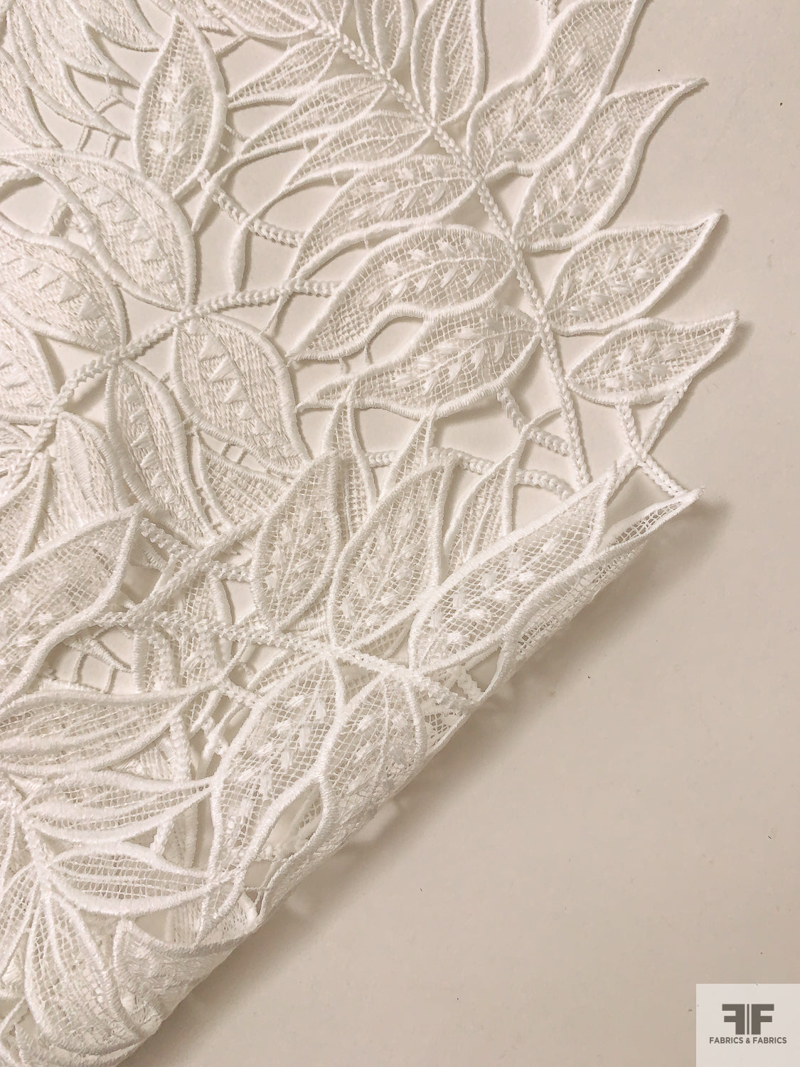 The guipure lace features a beautifully detailed fern leaf pattern that brings a delicate, nature-inspired texture to the fabric. Its substantial structure and soft hand make it ideal for bridalwear, occasion pieces, or decorative overlays. Timeless and graceful, this lace adds refined dimension to any design.