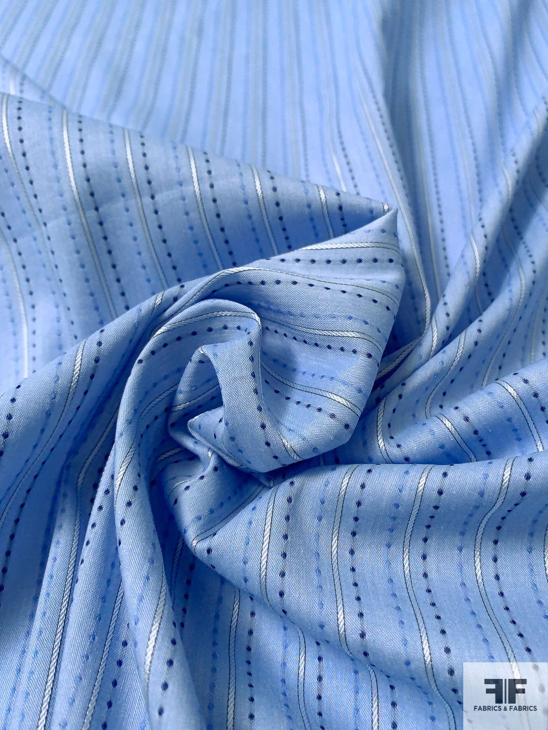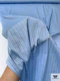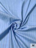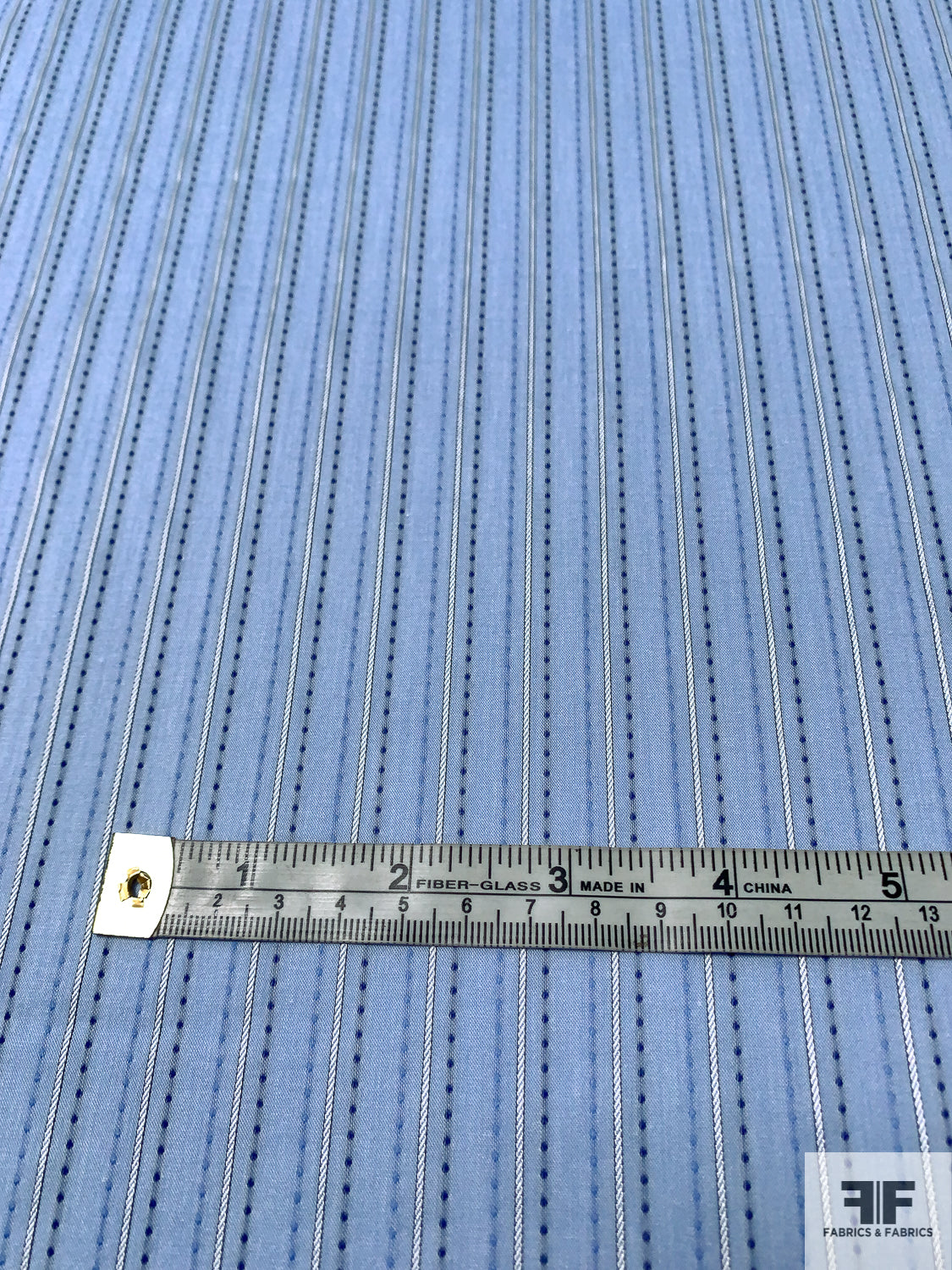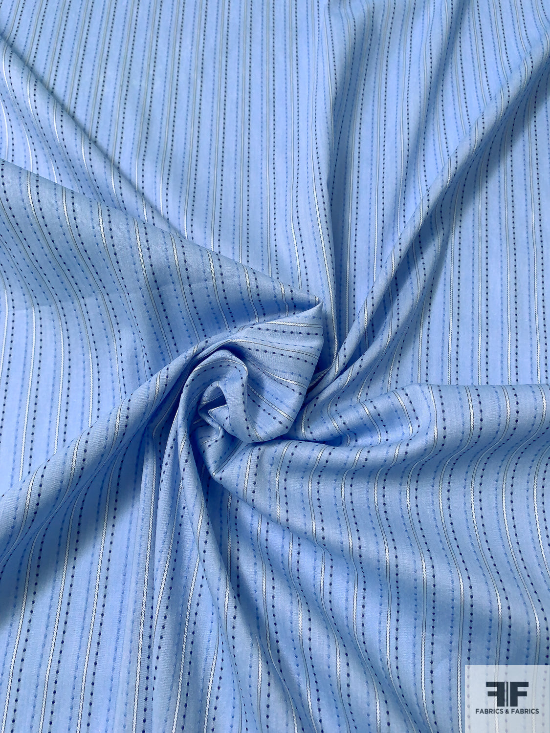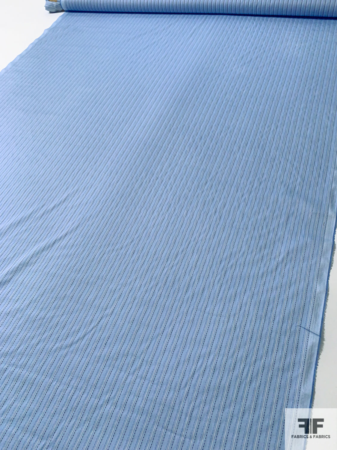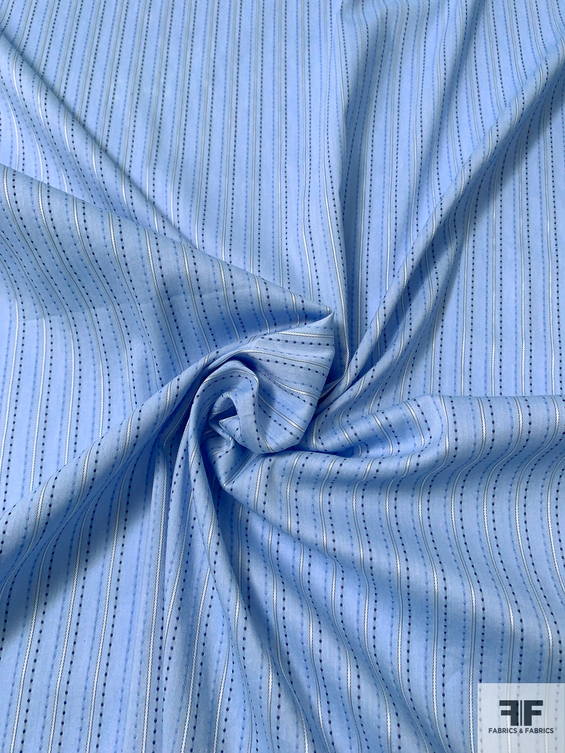 Finely Stitched Vertical Striped Stretch Cotton Shirting - Carolina Blue / Navy