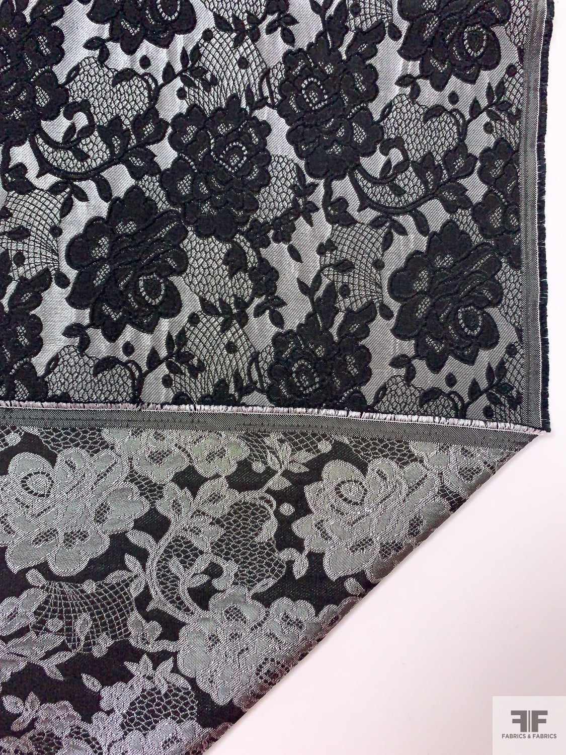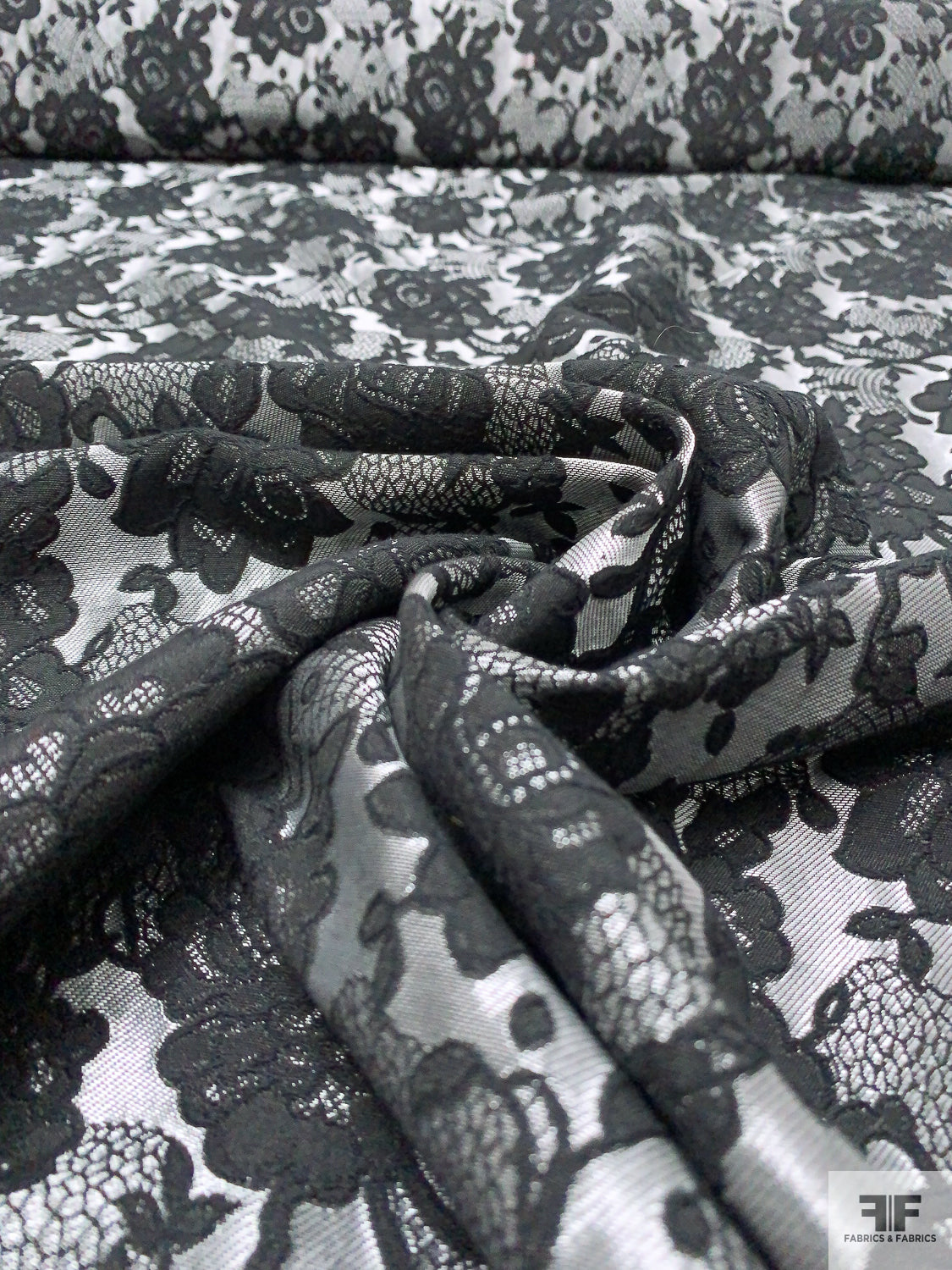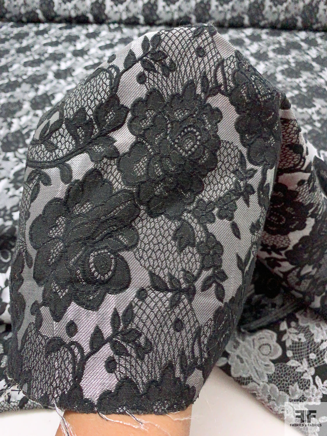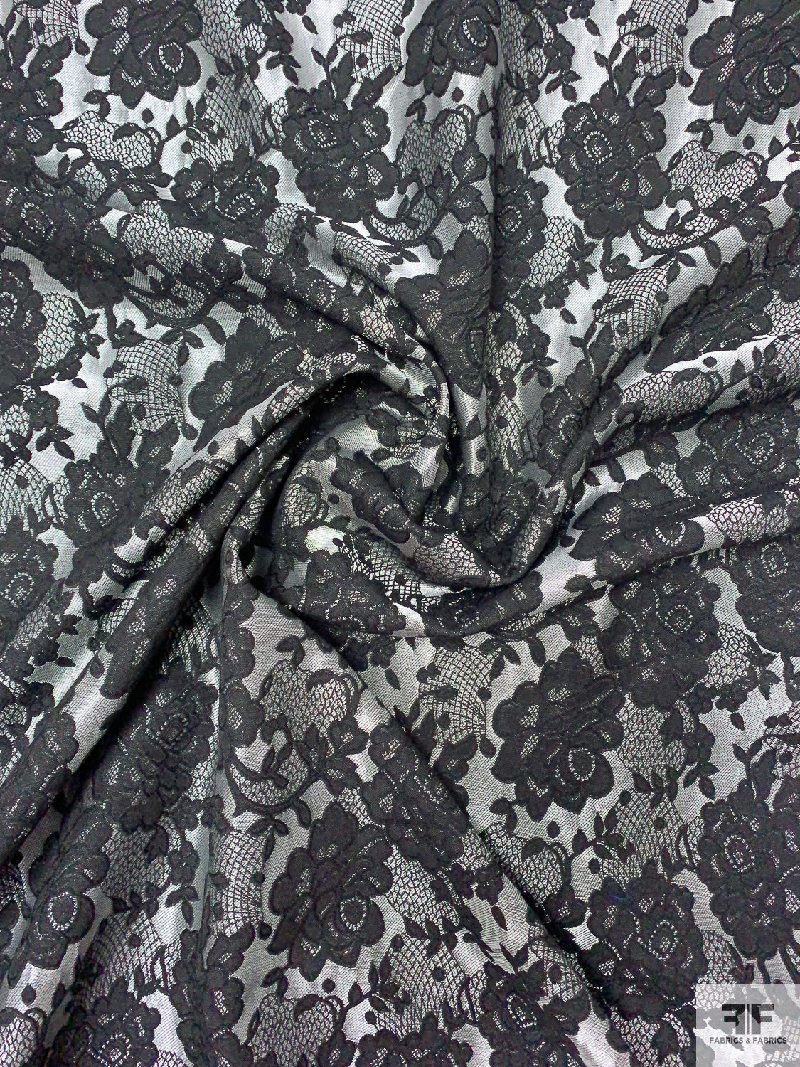 Floral and Lace-Look Brocade - Silver-Grey / Black