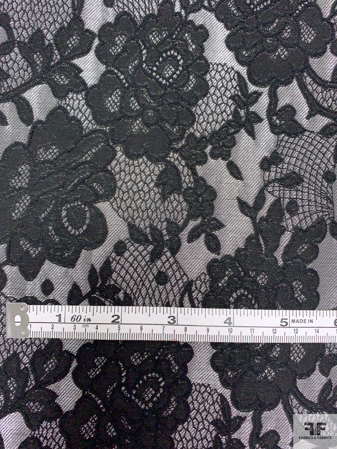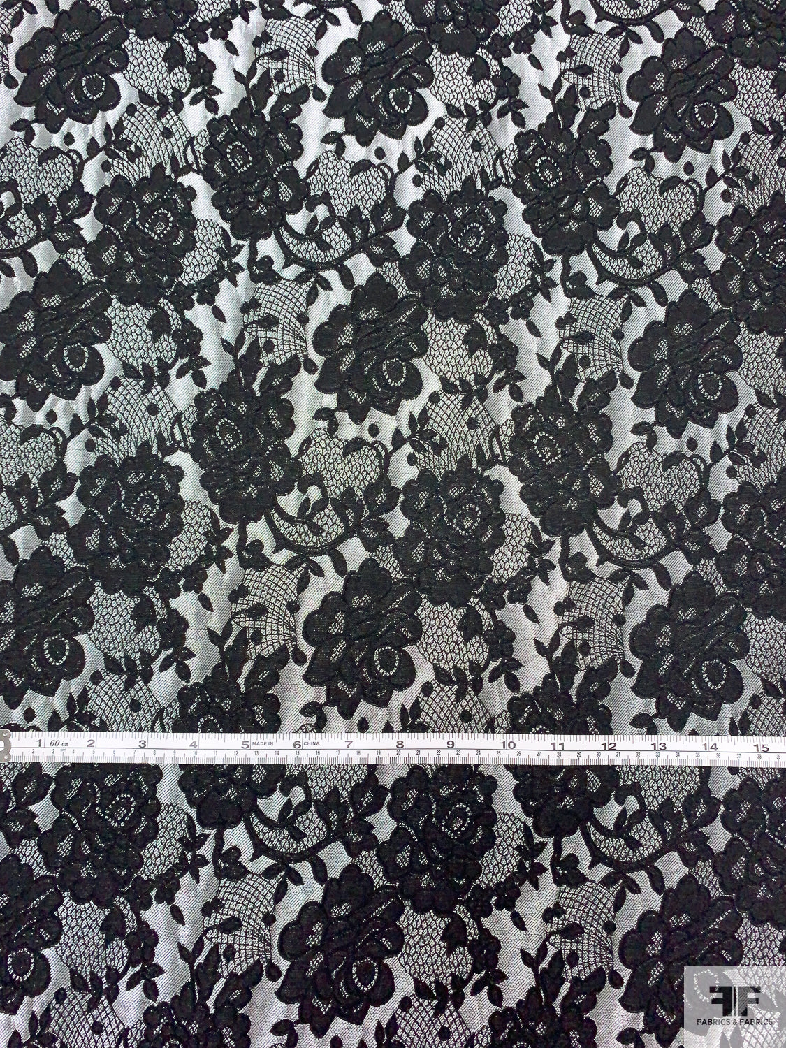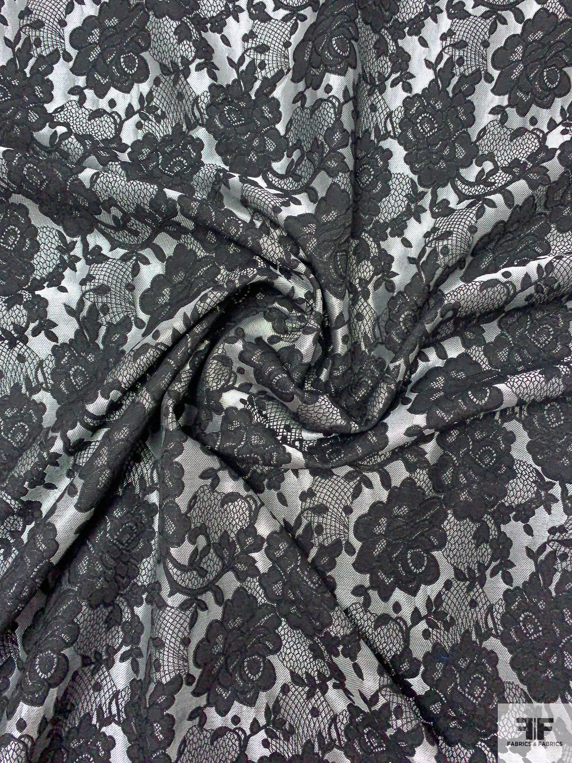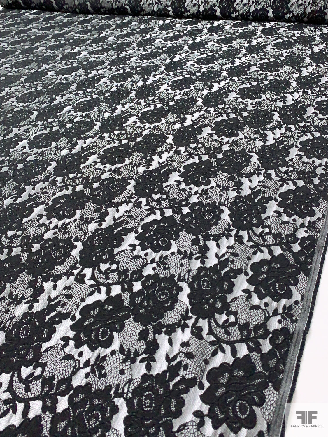 Floral and Lace-Look Brocade - Silver-Grey / Black