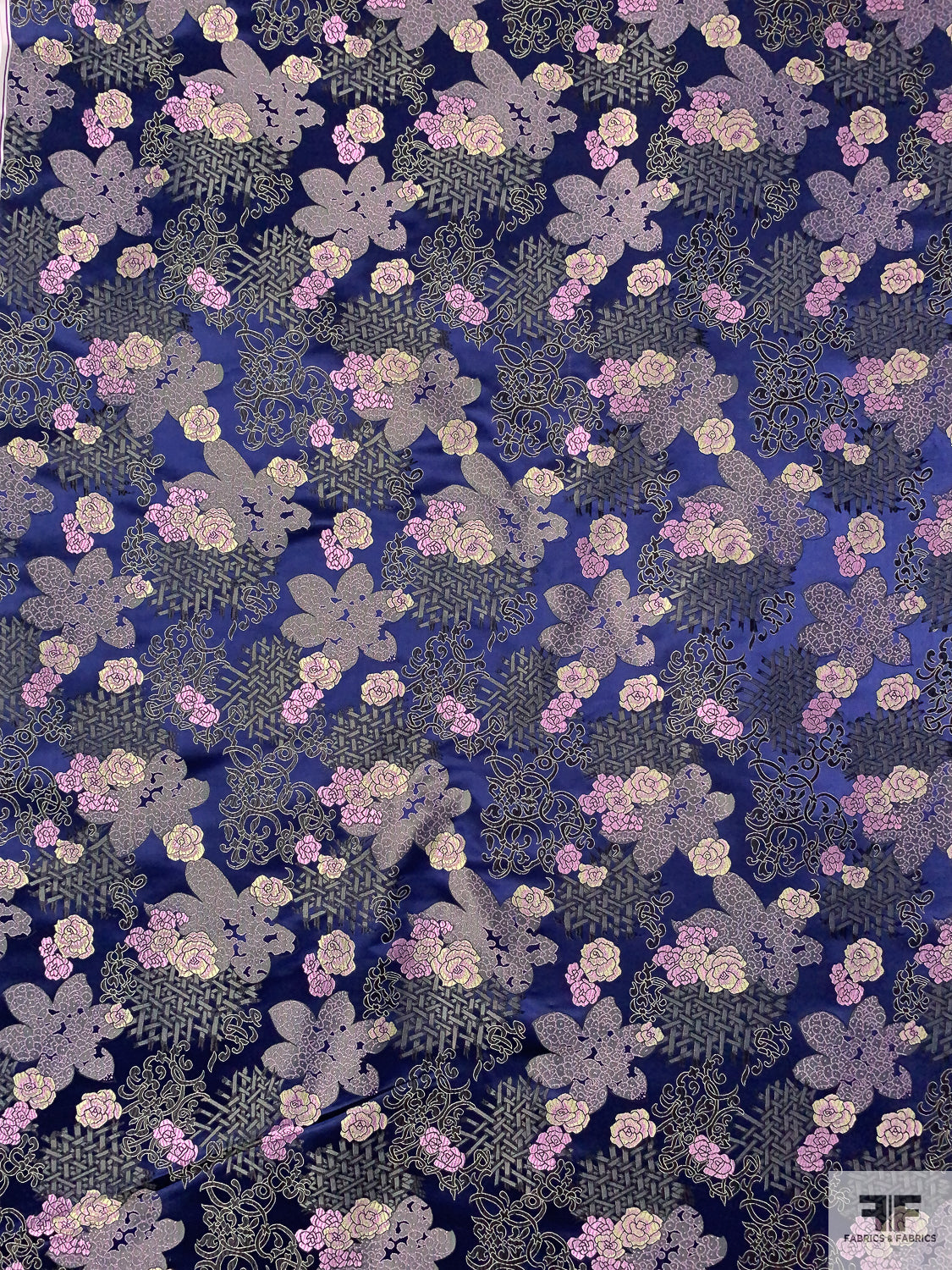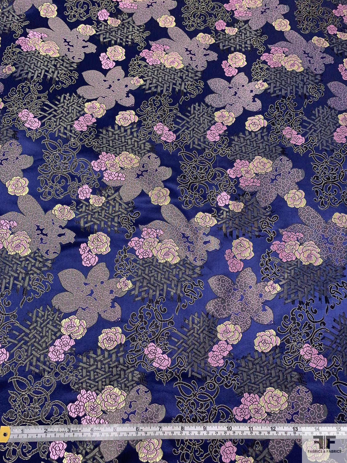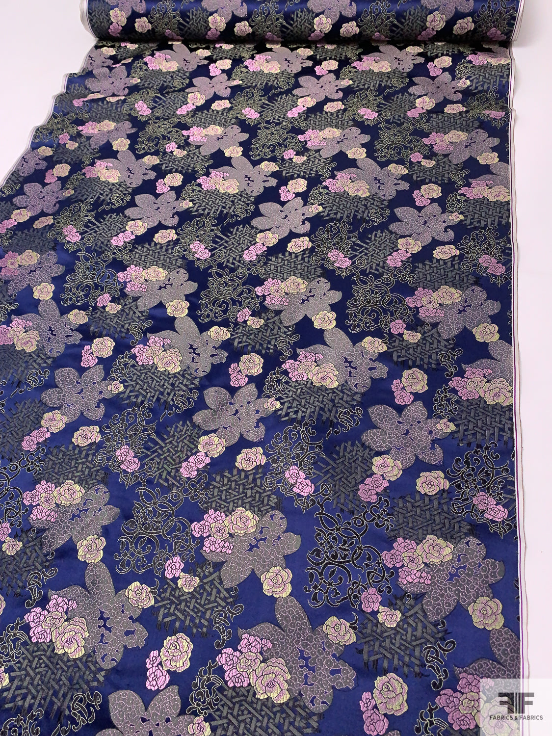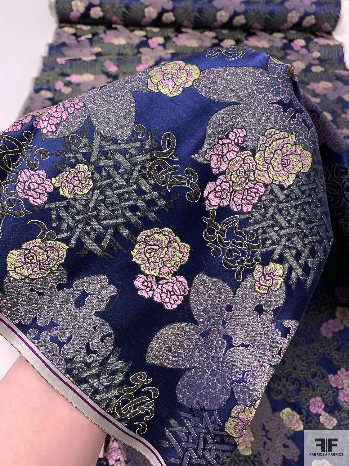 Floral Chinese Brocade - Navy / Light Orchid / Black / Dark Sage