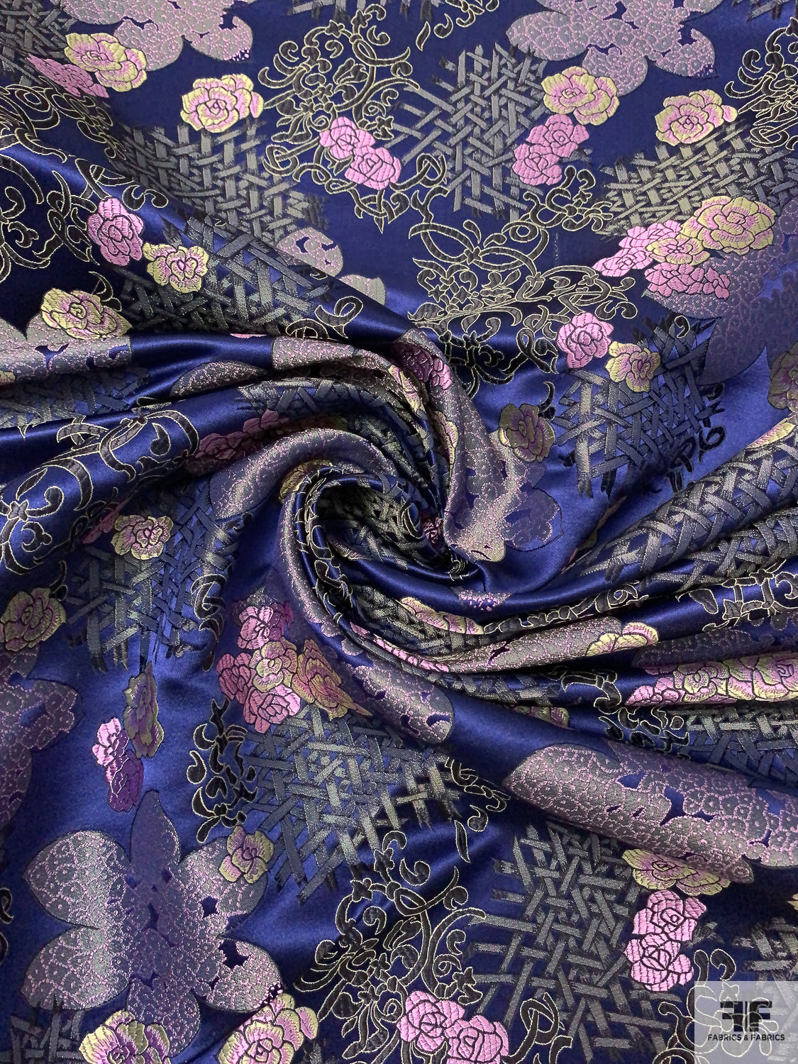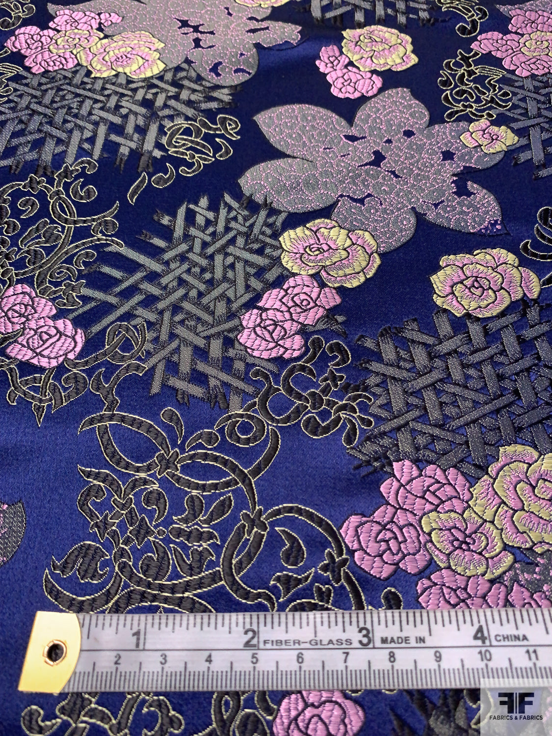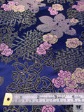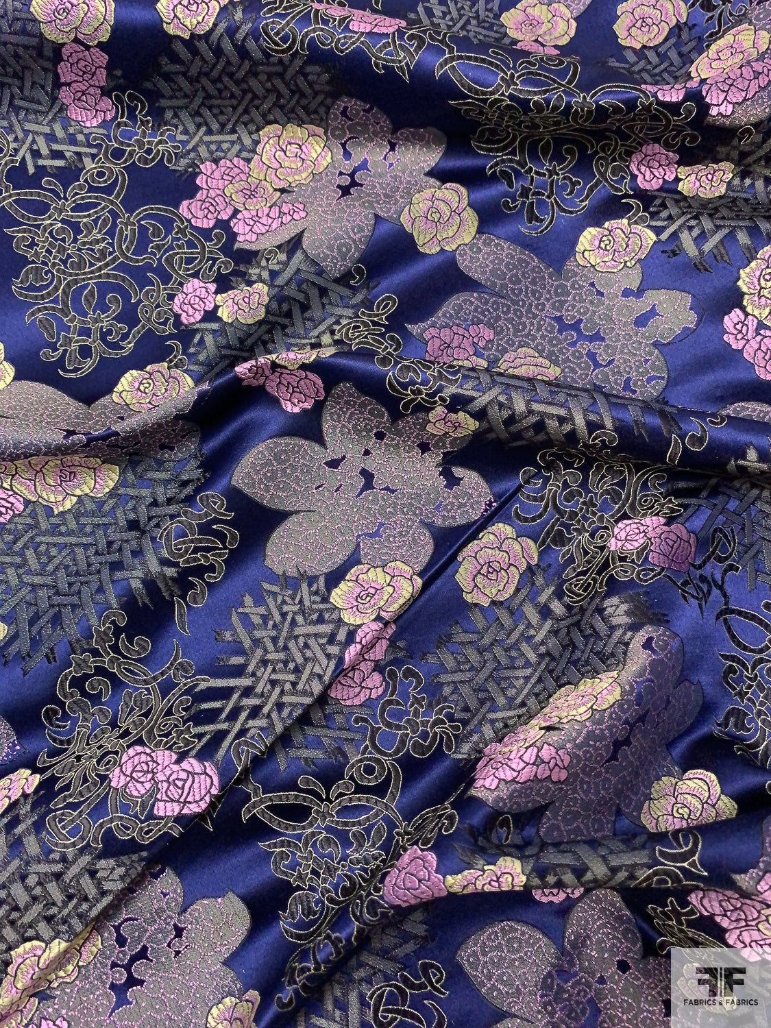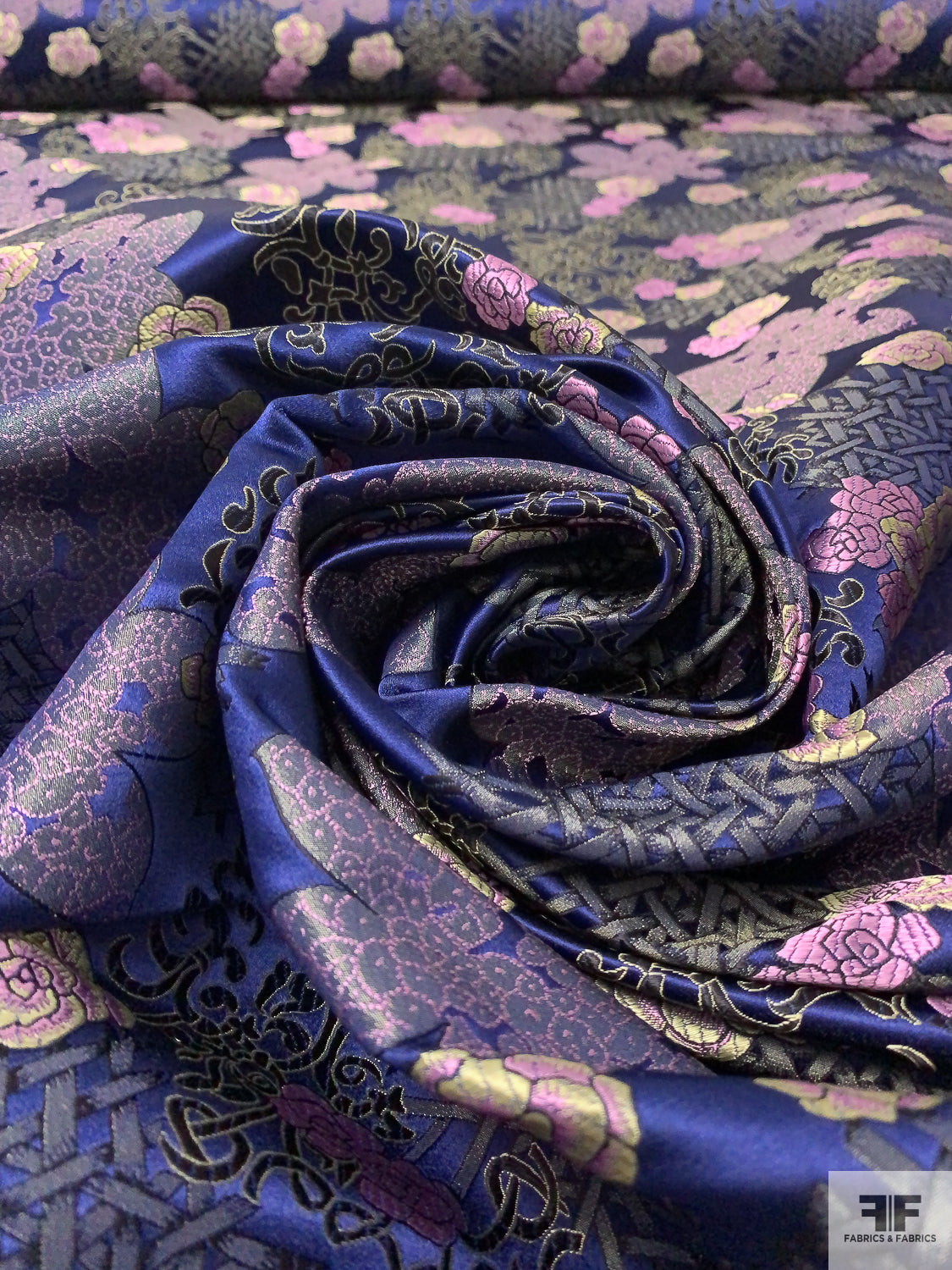 Floral Chinese Brocade - Navy / Light Orchid / Black / Dark Sage