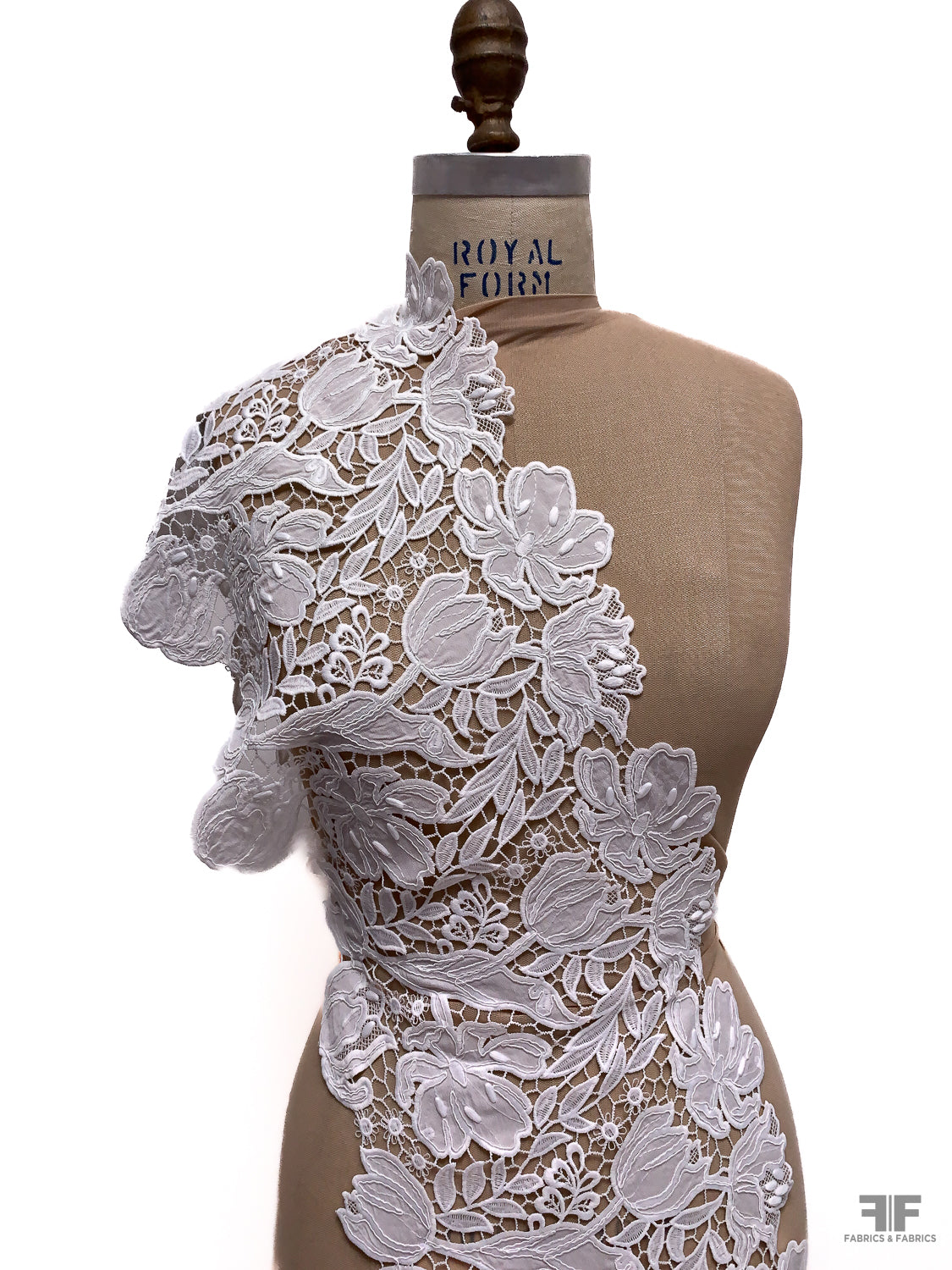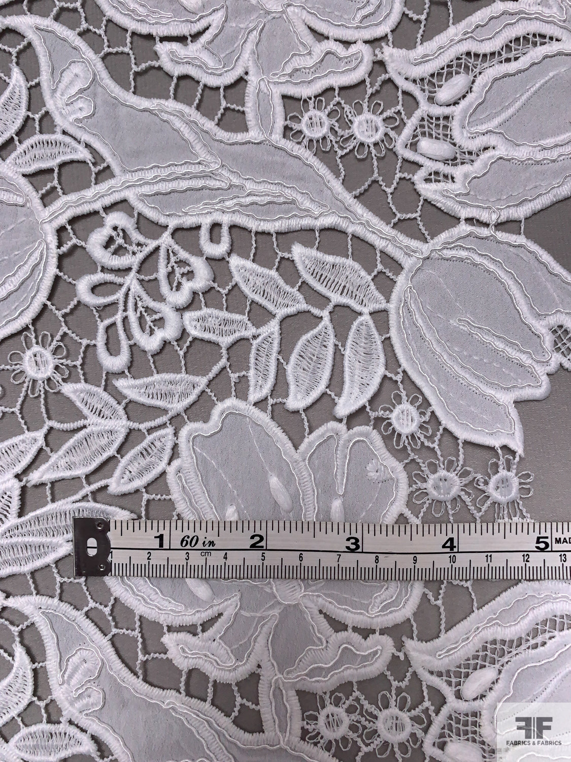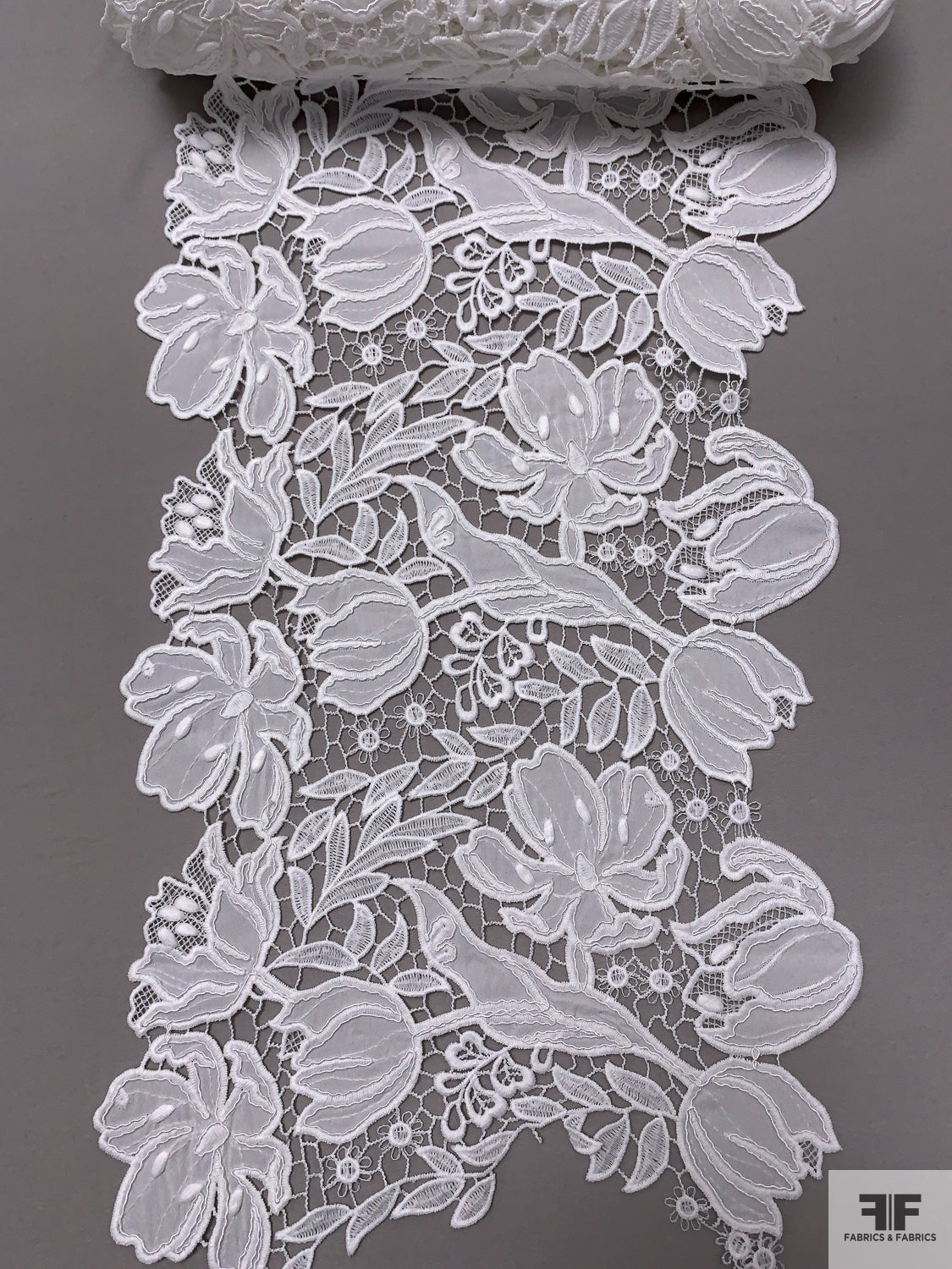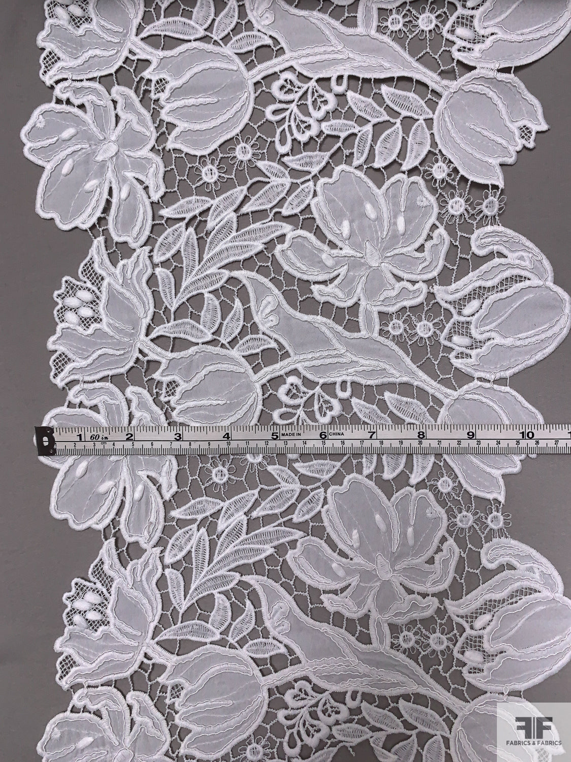 Floral Embroidered and Lightly Corded Novelty Trim - White