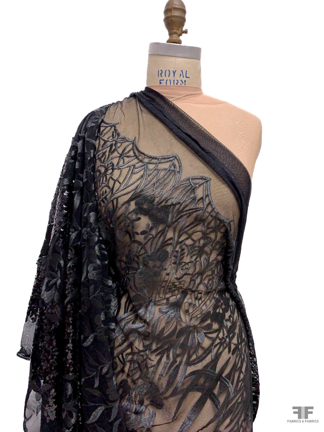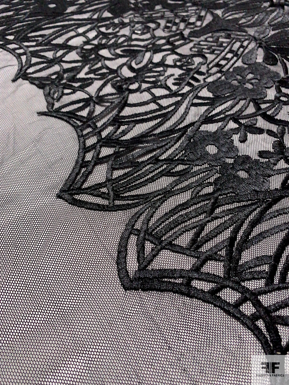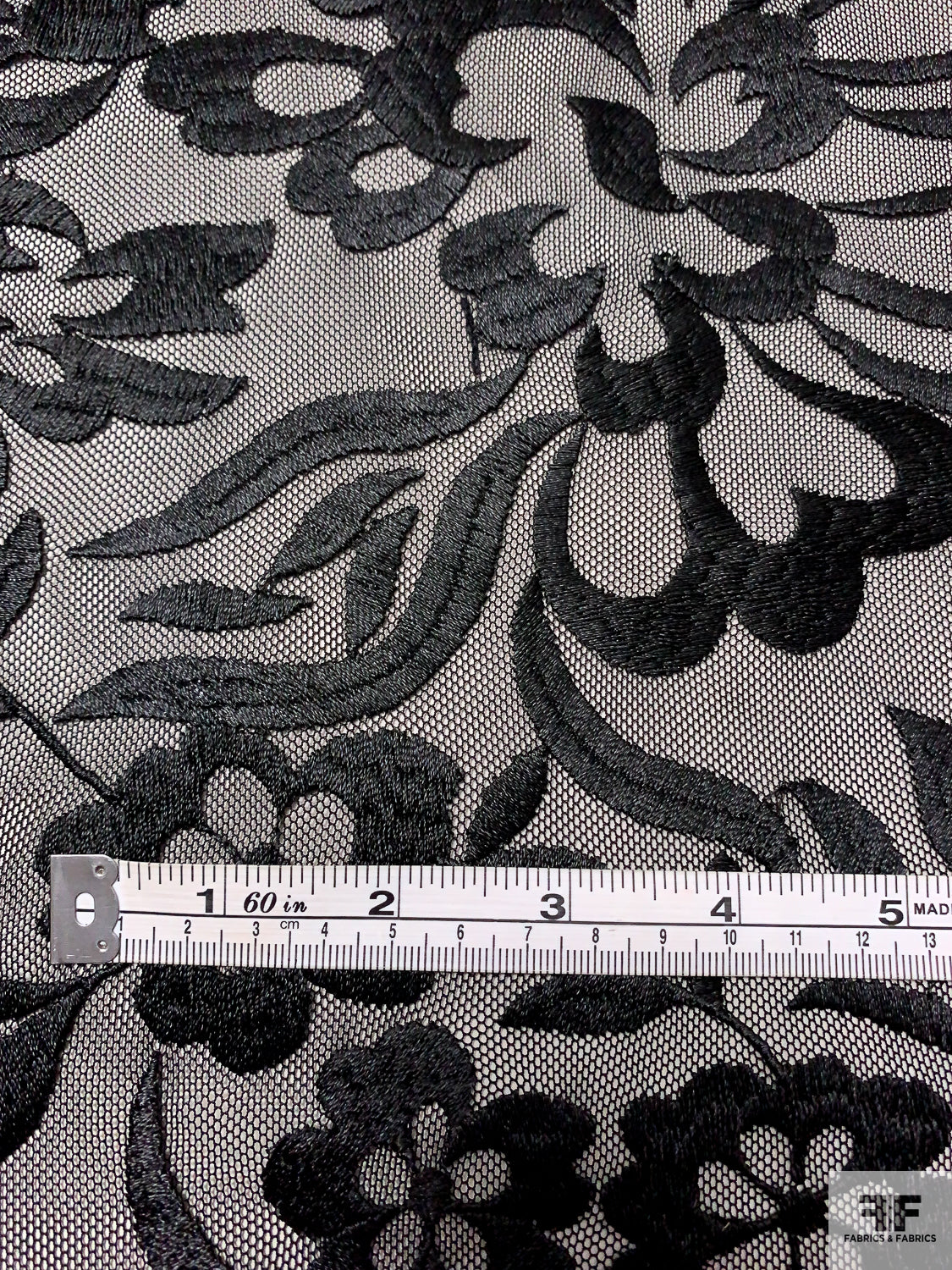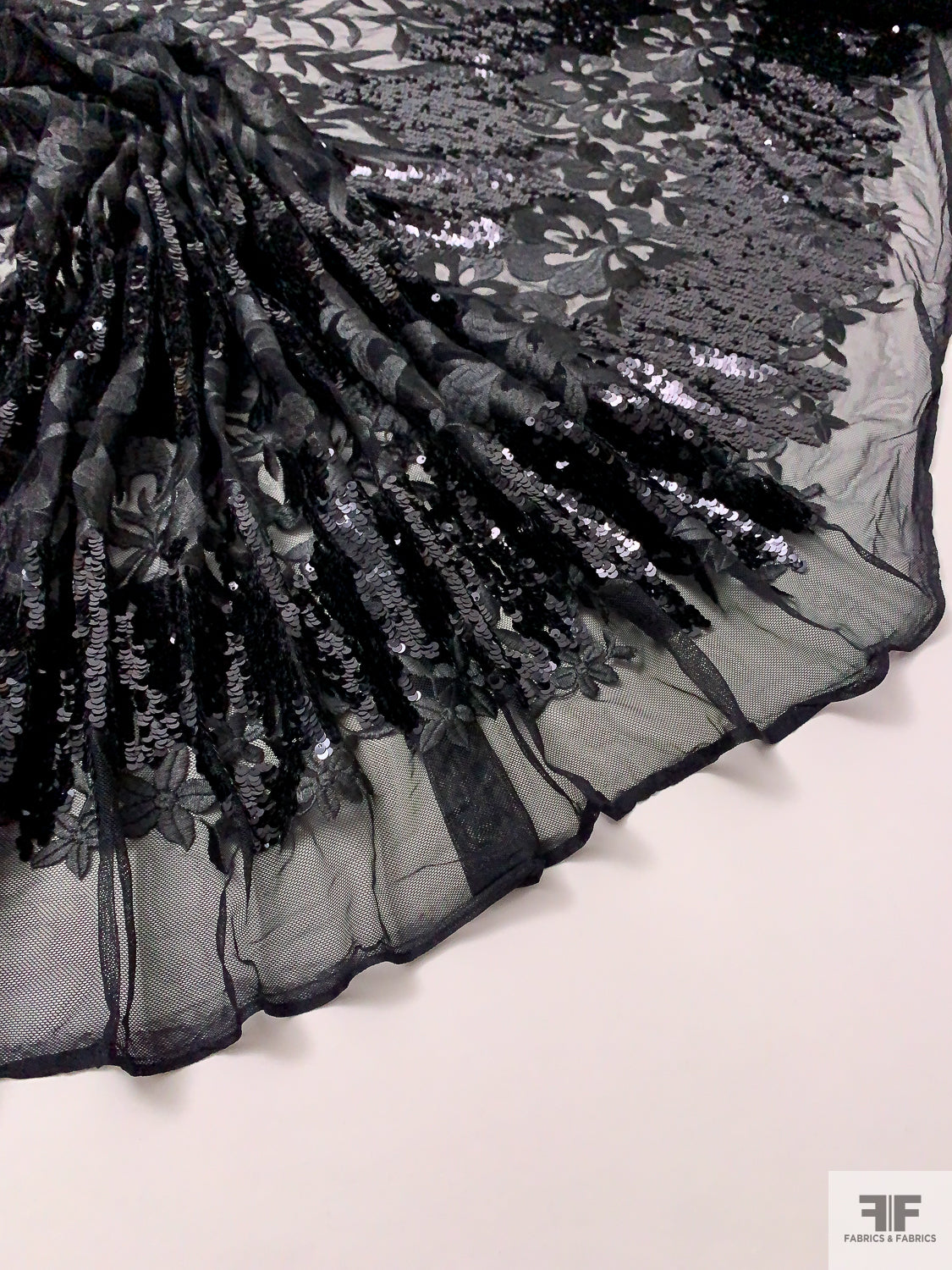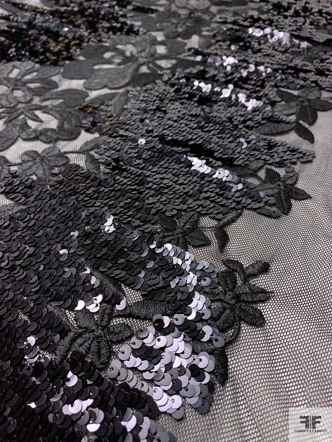 Floral Embroidered Tulle with Sequin Border - Black